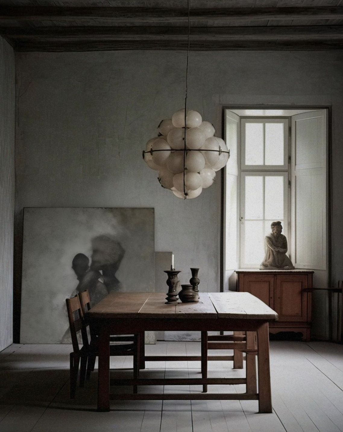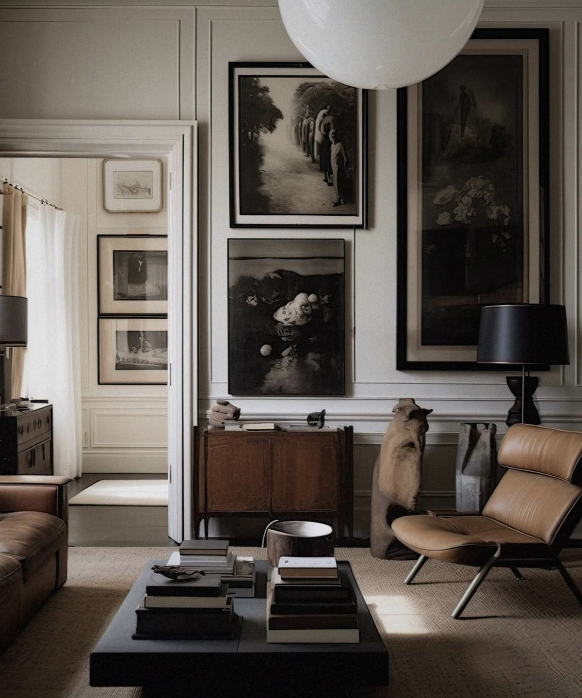 Kunst og dekor spiller en hovedrolle. Et portrett i dempede farger, en byste i stein, et keramikkfat eller en vevd veggpryd – hvert element gir rommet dybde og karakter. Ingenting er tilfeldig. Vintage-style er som en stille utstilling, men samtidig et hjem fullt av liv.