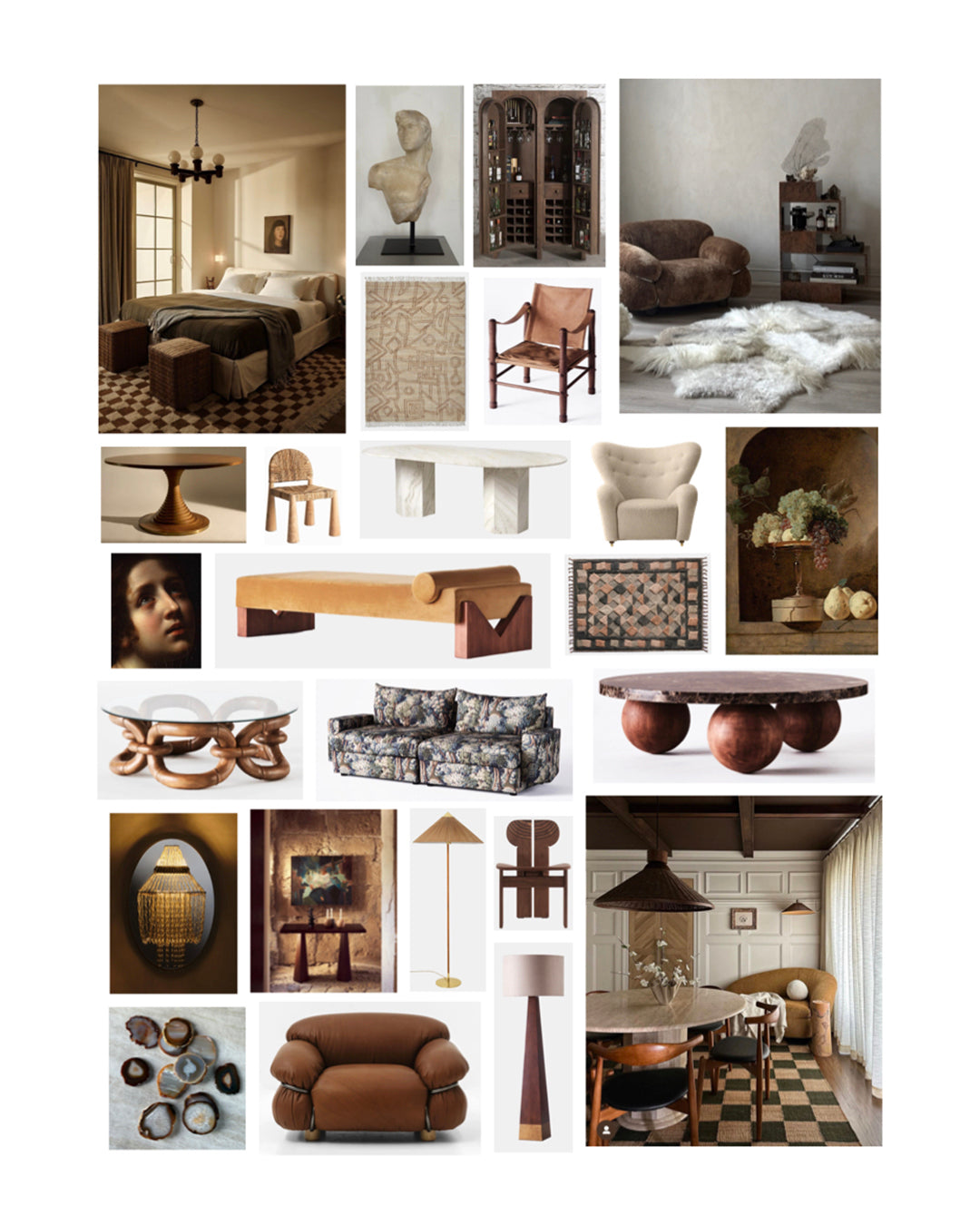 Velg en varm base av jordtoner, beige, brunt, gyllent, rust og krem. Dette gir rommet ro og binder elementene sammen.