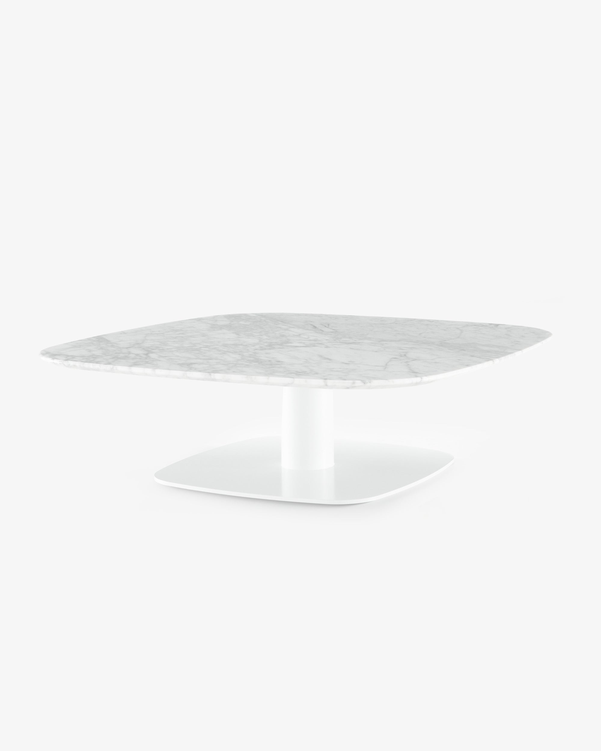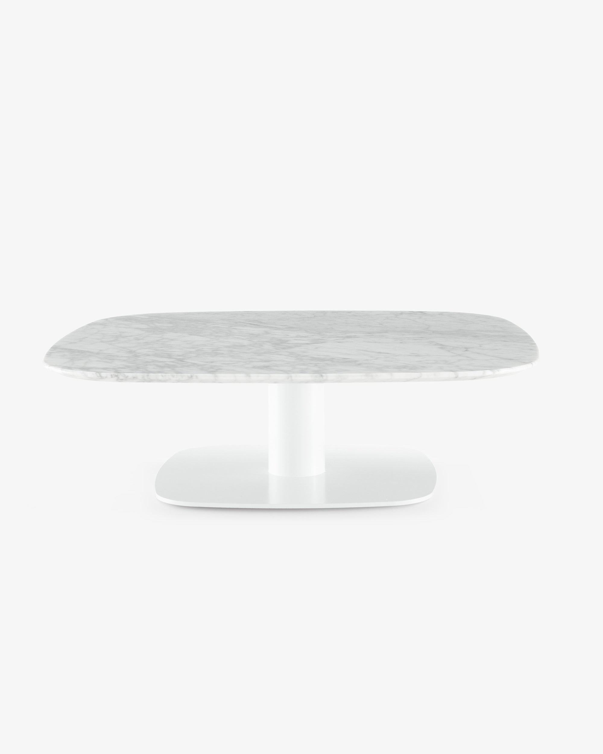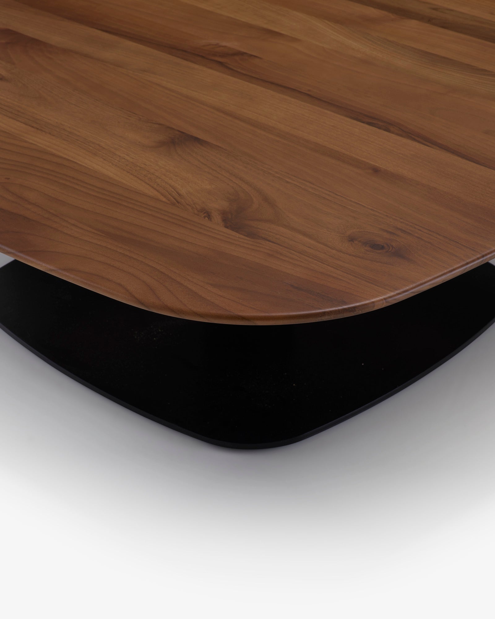 Marmorversjonen har en vannavstøtende behandling for ekstra beskyttelse mot visse typer flekker, men bør fortsatt behandles med forsiktighet i henhold til instruksjonene som følger med. Begge modellene har en stabil, sentral base som gir bordet et lett og elegant uttrykk. Marmorversjonen har et understell i hvitlakkert Epoxy-stål, mens valnøttversjonen har et svartlakkert stålunderstell, noe som gir bordet et tidløst og luksuriøst preg, ideelt for både private og offentlige rom.