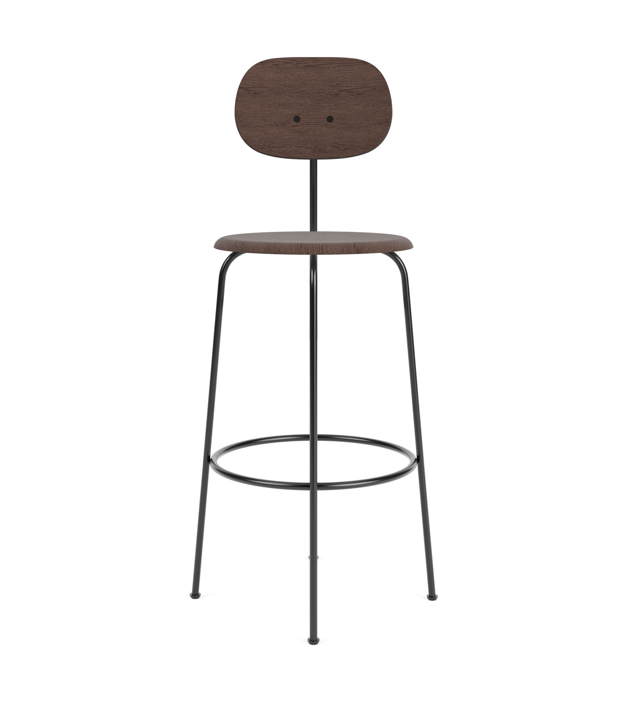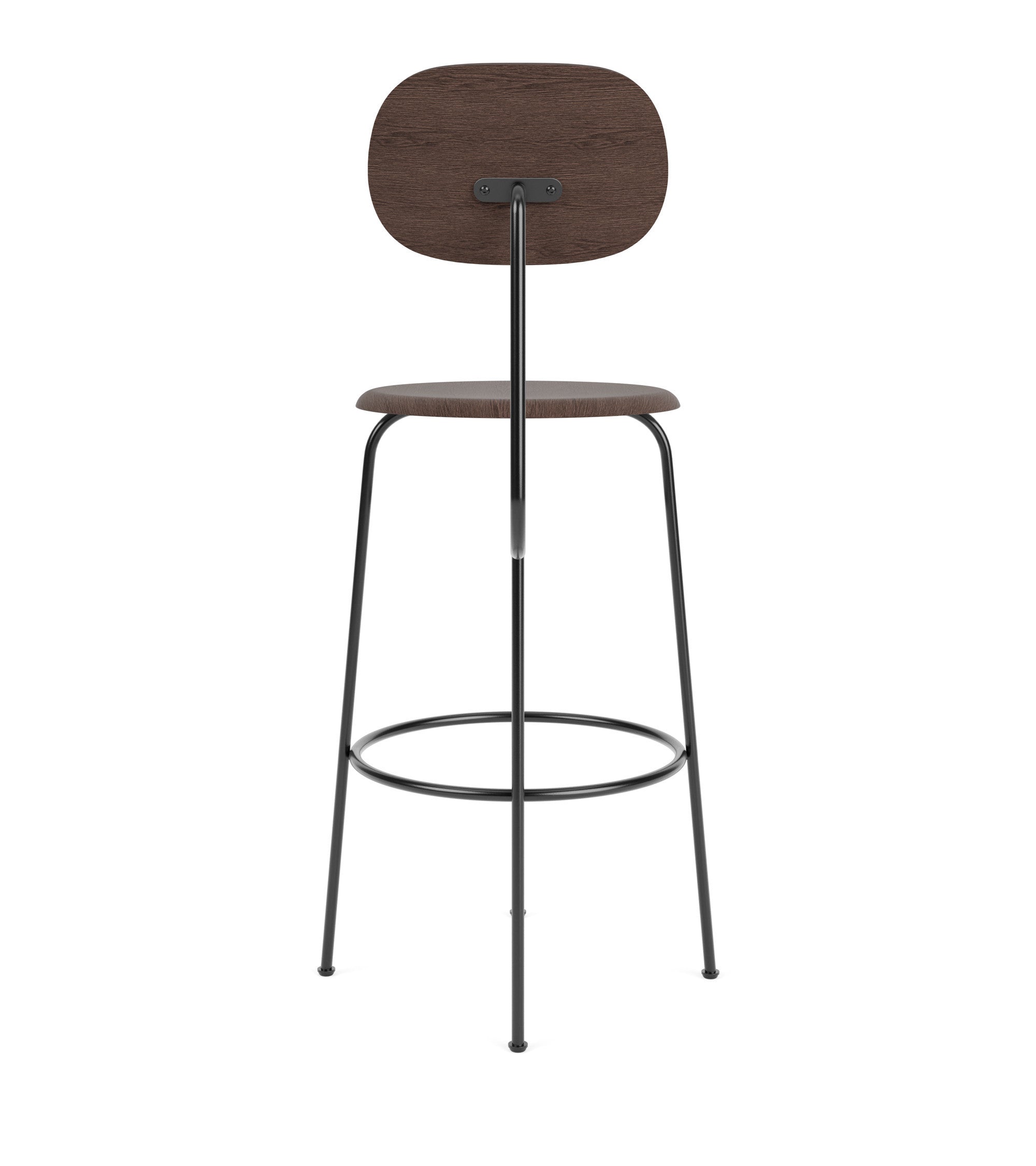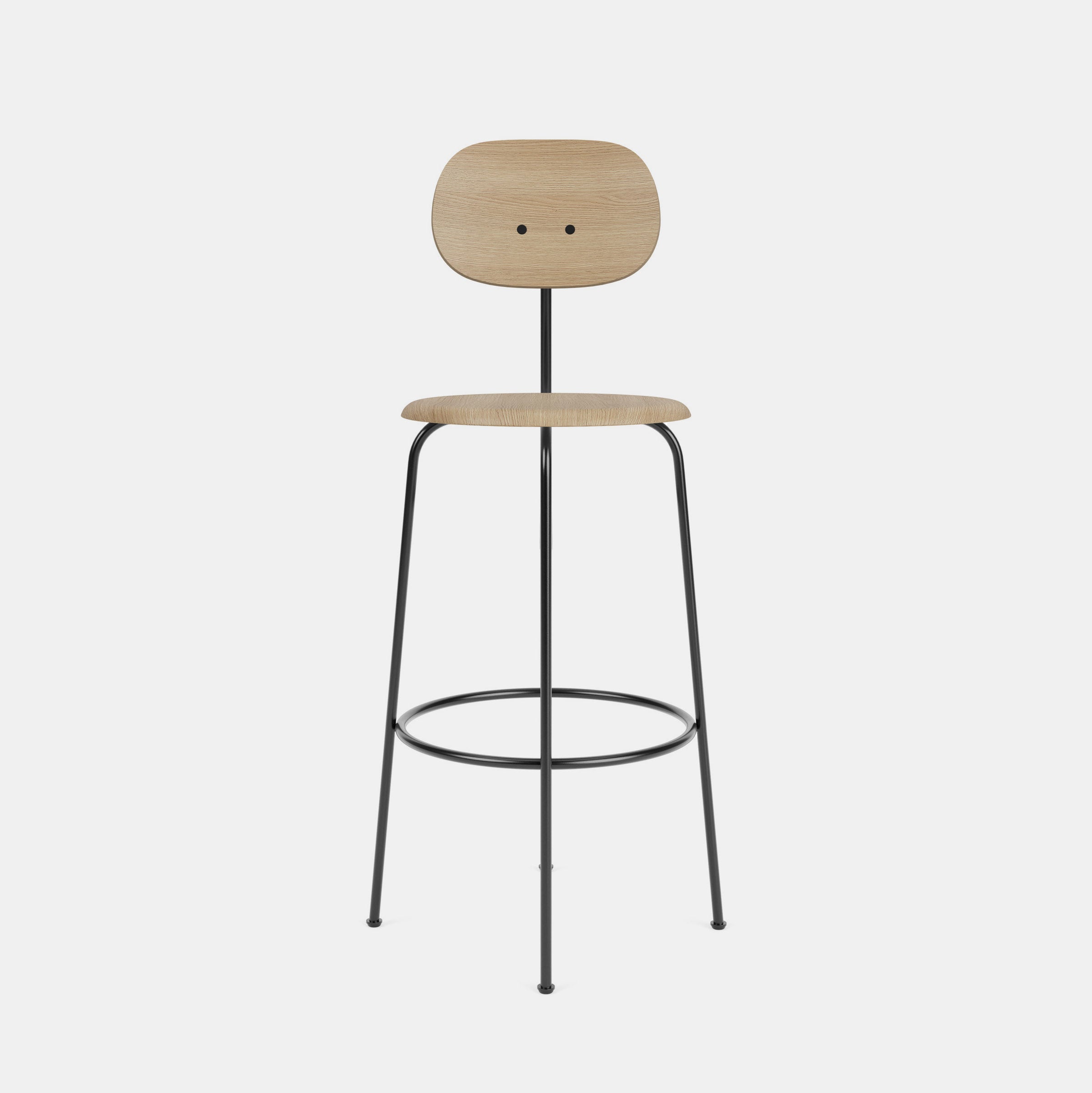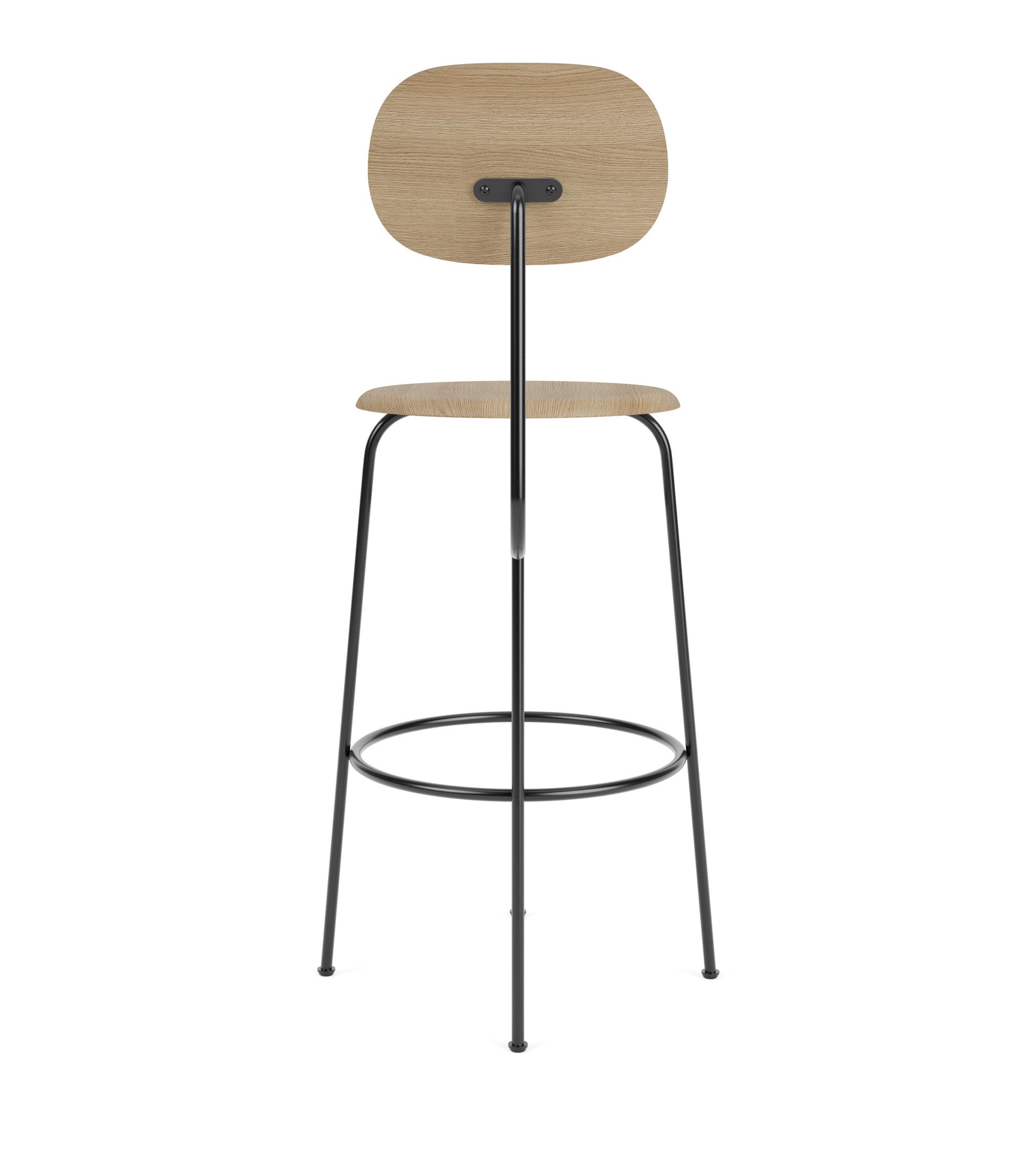 En hyllest til funksjonalisme, Afteroom barstol pluss er et dekonstruert design, strippet for unødvendige komponenter for å presentere en ren, minimalistisk estetikk med høy funksjonell verdi. Den brede ryggstøtten og det generøse setet i trefiner sørger for enestående sittekomfort, mens den slanke pulverlakkerte metallrammen er konstruert for maksimal stabilitet med en fotring som fungerer som hvile for føttene. Resultatet er en lekker enkel stol som omfavner minimalisme og rene linjer uten å gå på kompromiss med komforten.