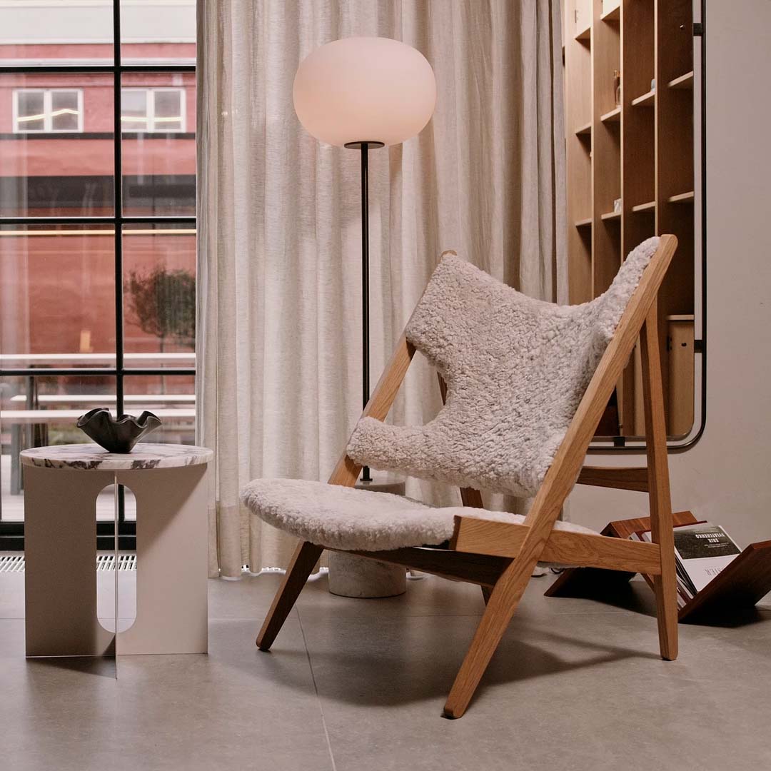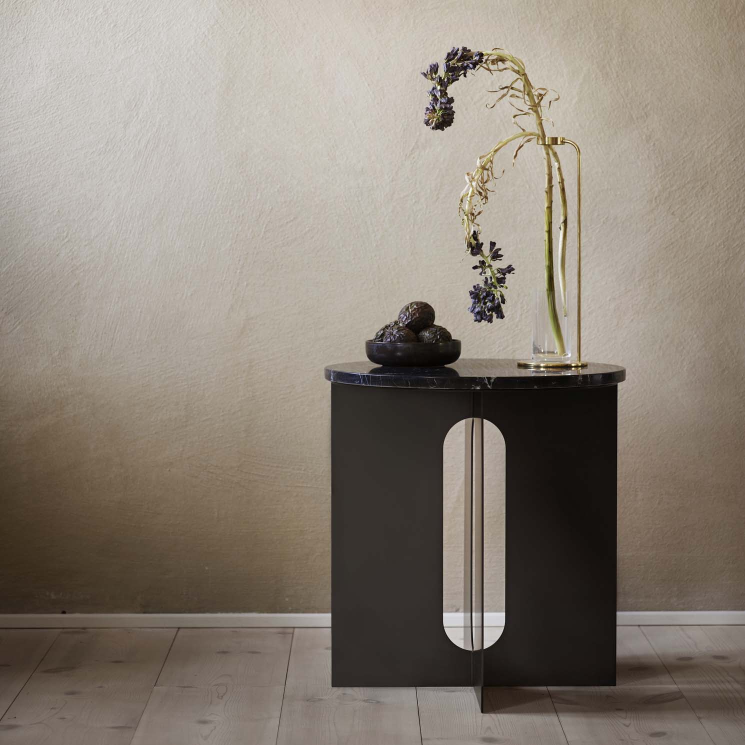 Navnet Androgyne kommer fra blandingen av maskulinitet og femininitet i utformingen av bordet. Androgyne Side Table Base er like elegant som det er kraftig. Androgyne Side Table Base ble opprinnelig designet for Menu Space cafe, men ble snart satt i produksjon for et større publikum. Det skulpturelle bordet passer i en rekke miljøer, både private og offentlige.