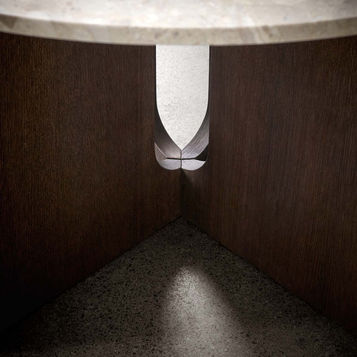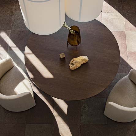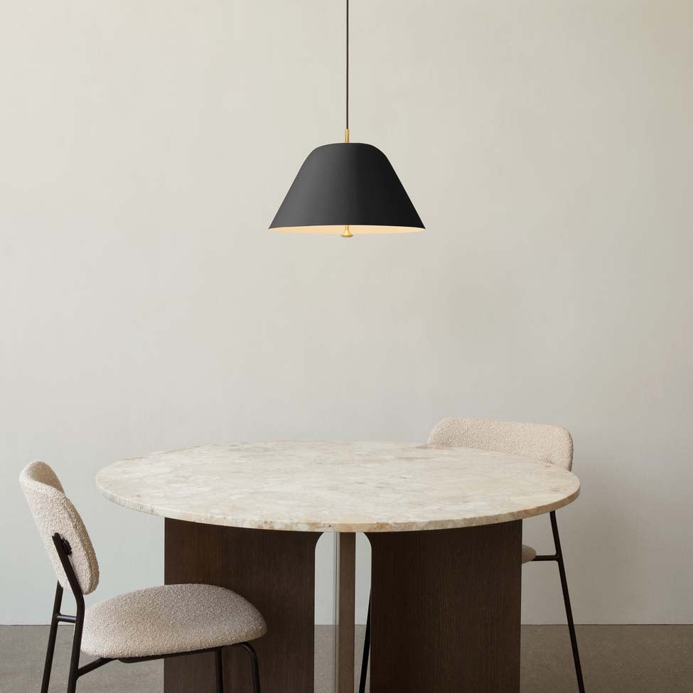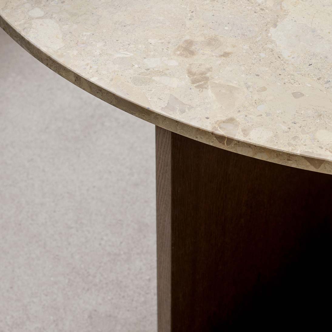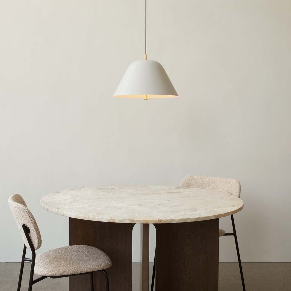 Androgyne Spisebord er et stort, rundt spisebord fra danske Menu, utformet av designeren Danielle Siggerud. Spisebordet ble laget som en videreutvikling av det tidligere sidebordet med samme navn, som også det kan kjøpes i vår nettbutikk. Her har spisebordet imidlertid fått et betydelig mer robust uttrykk, med kraftigere understell for å takle den solide bordplaten. Menus Androgyne Dining Table er tilgjengelig i to forskjellige størrelser, der du kan velge mellom bordplate på enten 120 eller 150 centimeter i diameter. Bordplaten til den større modellen kommer i naturlig eller mørkbeiset eik, mens den mindre modellen også er tilgjengelig i marmor.