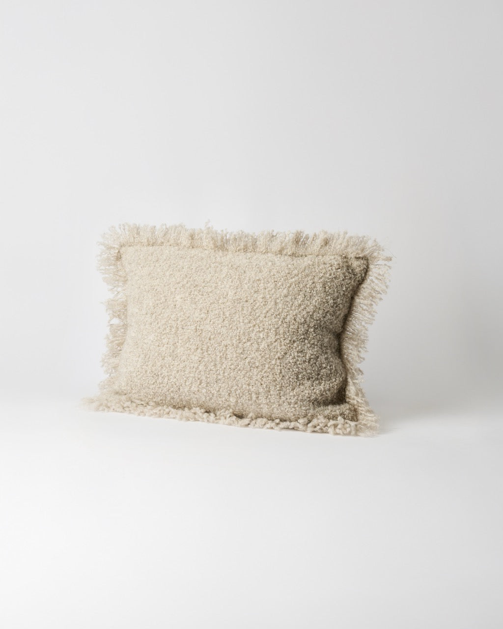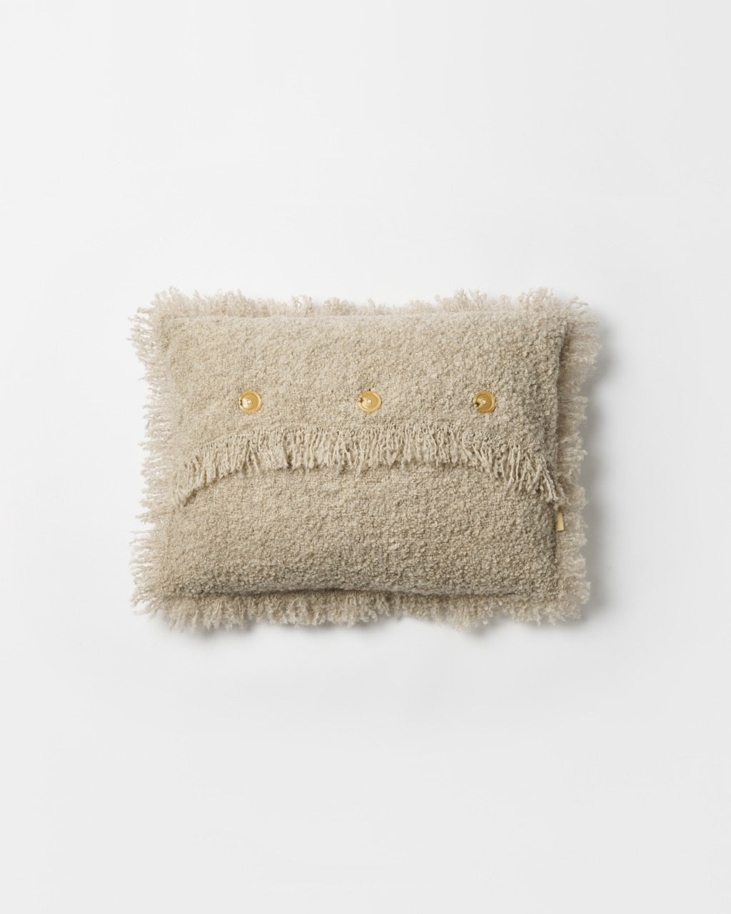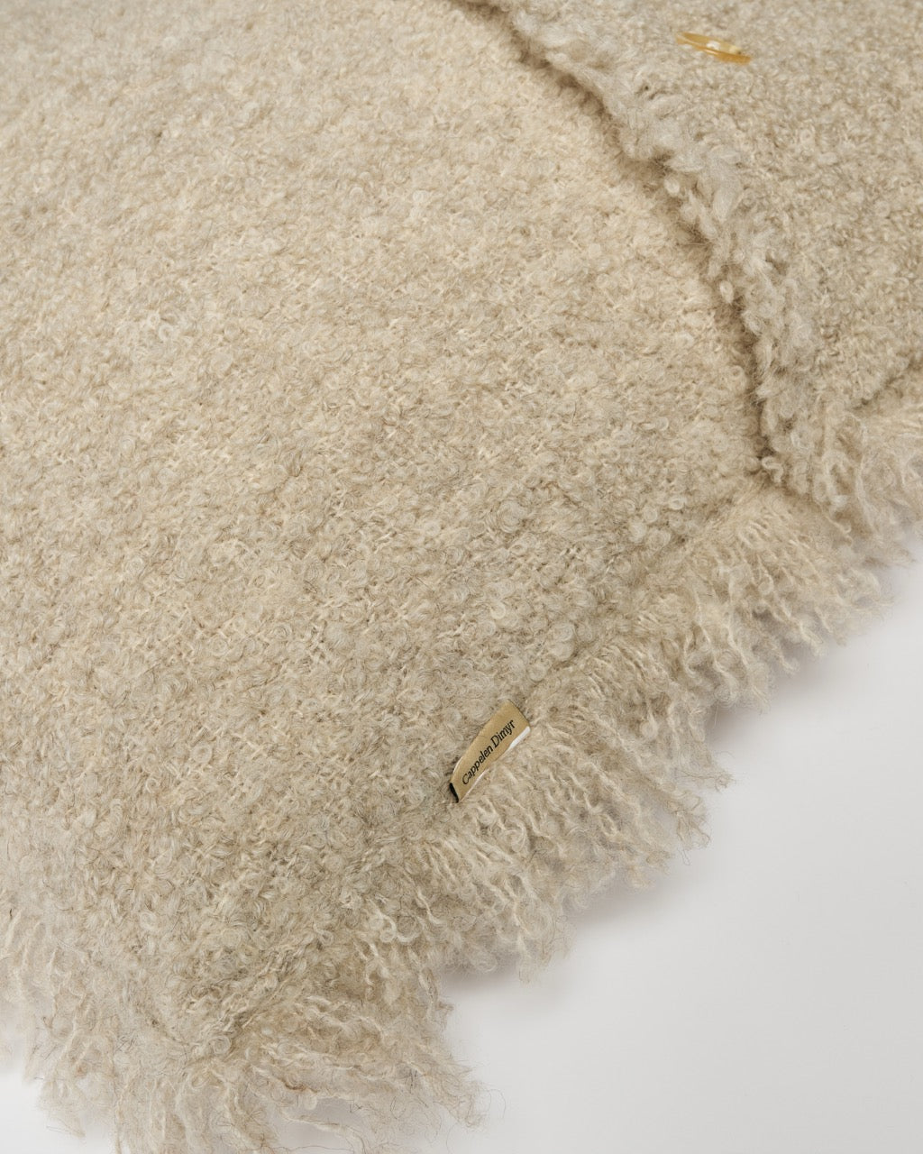Putene fra Cappelen Dimyr er laget av den fineste naturull fra New Zealand, og har korte frynser rundt alle kanter, elegante knapper på baksiden og et resirkulert fyll for en bærekraftig touch. Med sin myke tekstur og tidløse design bringer den uanstrengt bohemsk sjarm til ethvert rom.