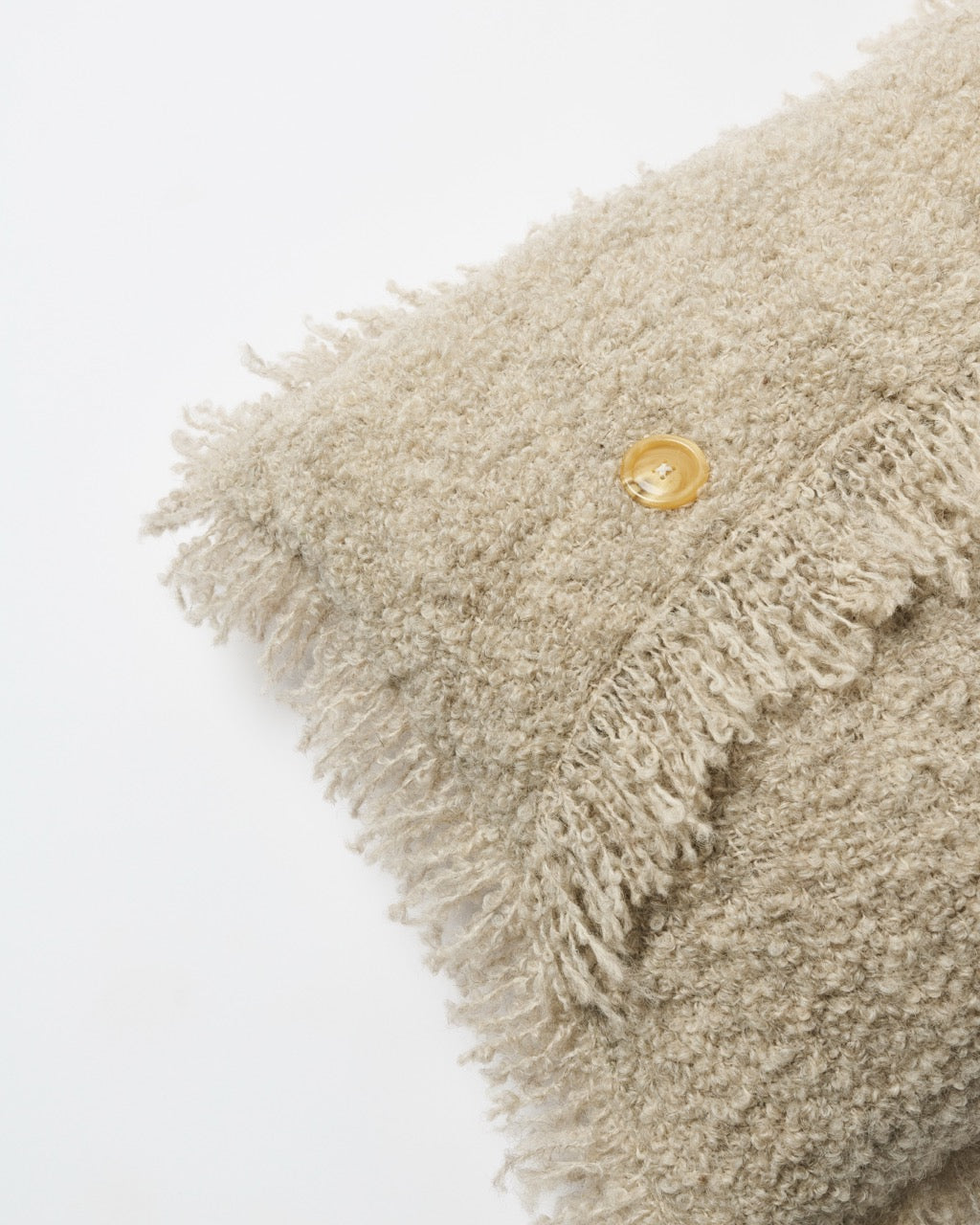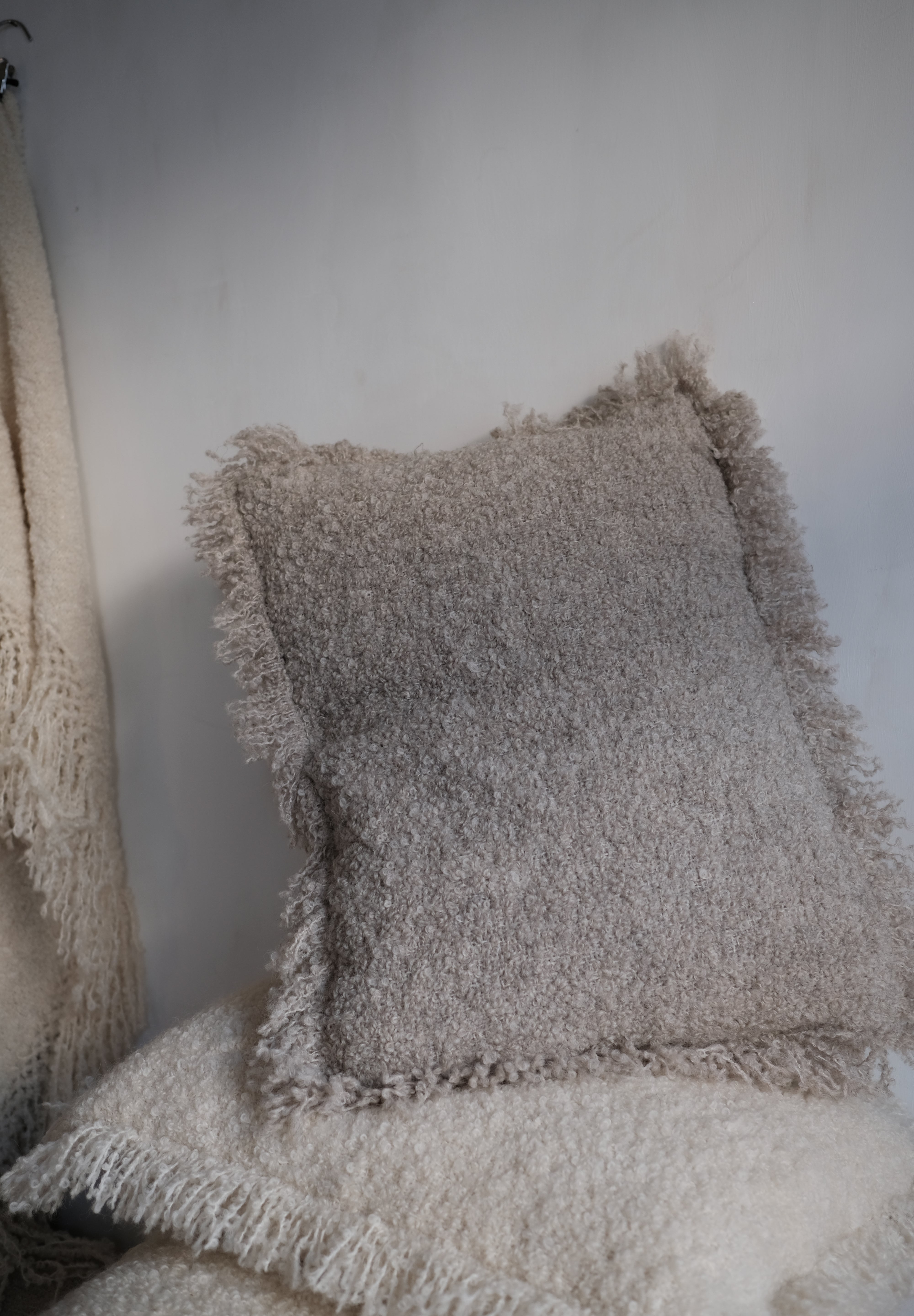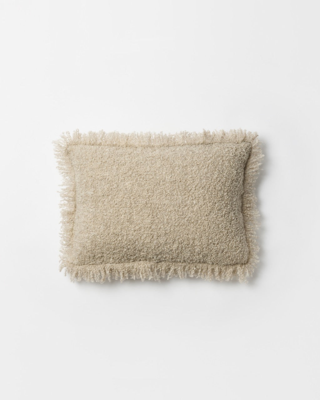 Putene fra Cappelen Dimyr er laget av den fineste naturull fra New Zealand, og har korte frynser rundt alle kanter, elegante knapper på baksiden og et resirkulert fyll for en bærekraftig touch. Med sin myke tekstur og tidløse design bringer den uanstrengt bohemsk sjarm til ethvert rom.