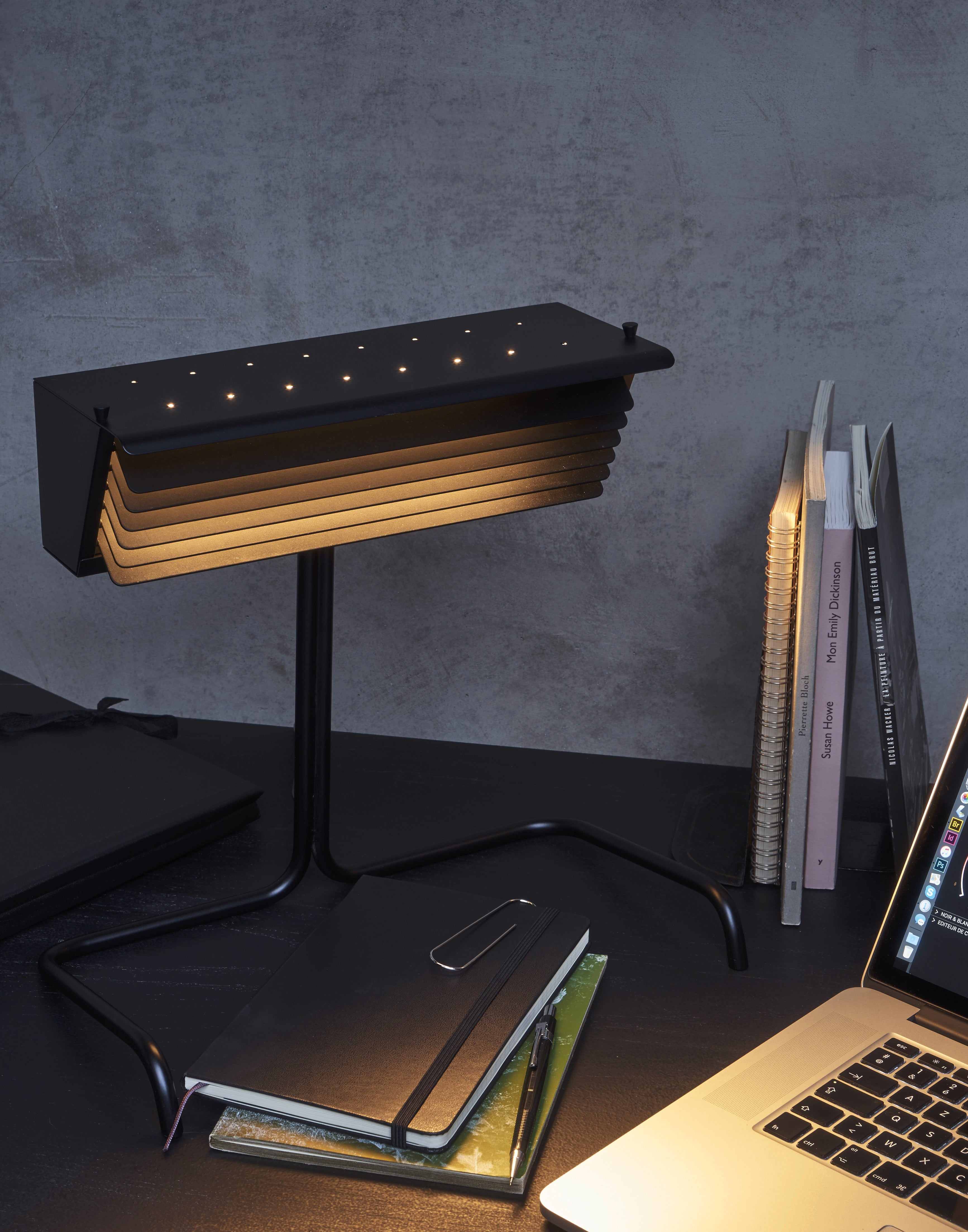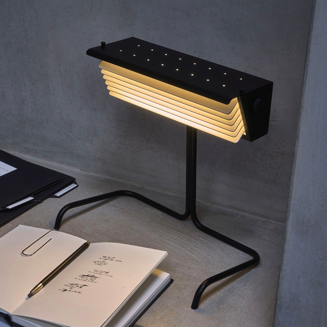 Biny Table er en oppdatert bordlampe fra DCWéditions, opprinnelig designet av Jacques Biny i 1958. Til tross for at lampen har mange år på nakken, oppleves den fortsatt i dag som moderne med sitt robotlignende utseende. Biny Table er laget av stål og aluminium, og har en unik skjerm som retter lyset. Dette gjør lampen til den perfekte leselampen, et behagelig, mykt lys kan rettes i akkurat riktig retning. Denne oppdaterte varianten er utstyrt med en integrert, utskiftbar LED-lyskilde og justerbar skjerm.