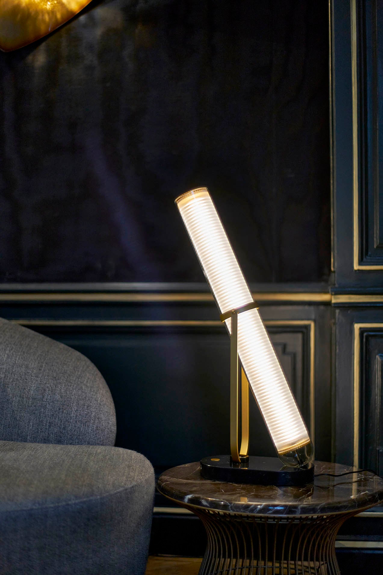 La Lampe Frechin er en bordlampe designet av Jean-Louis Frechin for merket DCWéditions. Lampen består av et rør i borosilikatglass, anodisert aluminium og en base av svart marmor. La Lampe Frechin er preget av tidløse materialer og poetisk utseende. Lampen bidrar ikke bare med lys, men blir også en unik interiørdetalj for hjemmet ditt. Den kan også brukes som stålampe. La Lampe Frechin er dimbar og har en integrert LED-lyskilde på 2700K som skaper et varmt hvitt lys.