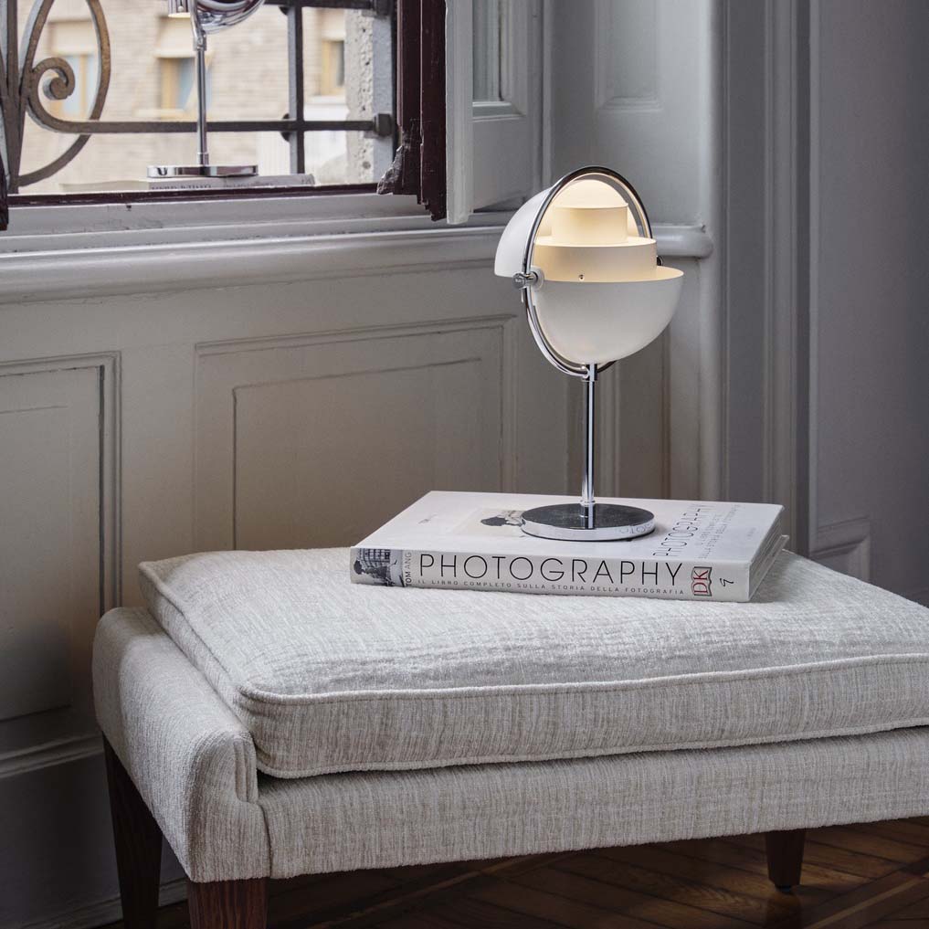 Multi-Lite lampen ble første tegnet i 1972 da Louis Weisdorf gjorde et unntak til sitt eget design ved å bruke flere gjentakende elementer. Multi-Lite lampen har to individuelle roterende skjermer, og kan brukes i flere ulike kombinasjoner for å styre hvilken vei lyset skal gå. Nå kommer klassikeren endelig som portable.