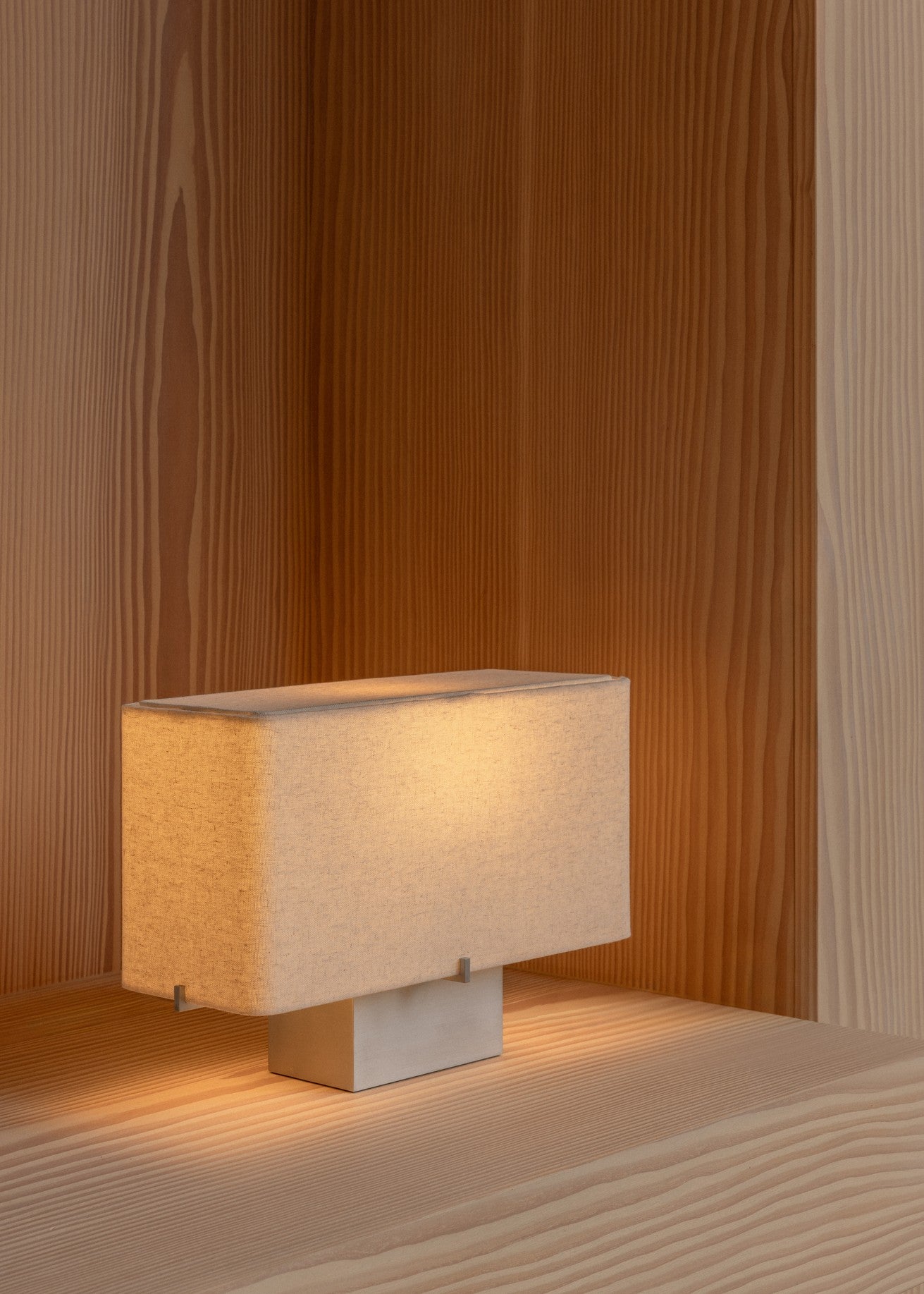 Nonna Bordlampe kombinerer et moderne uttrykk med klassiske materialer. Den rette, sandfargede linskjermen gir et mykt og behagelig lys som skaper en varm atmosfære i rommet. Basen er i aluminium med børstet finish, noe som gir lampen et solid og raffinert preg.