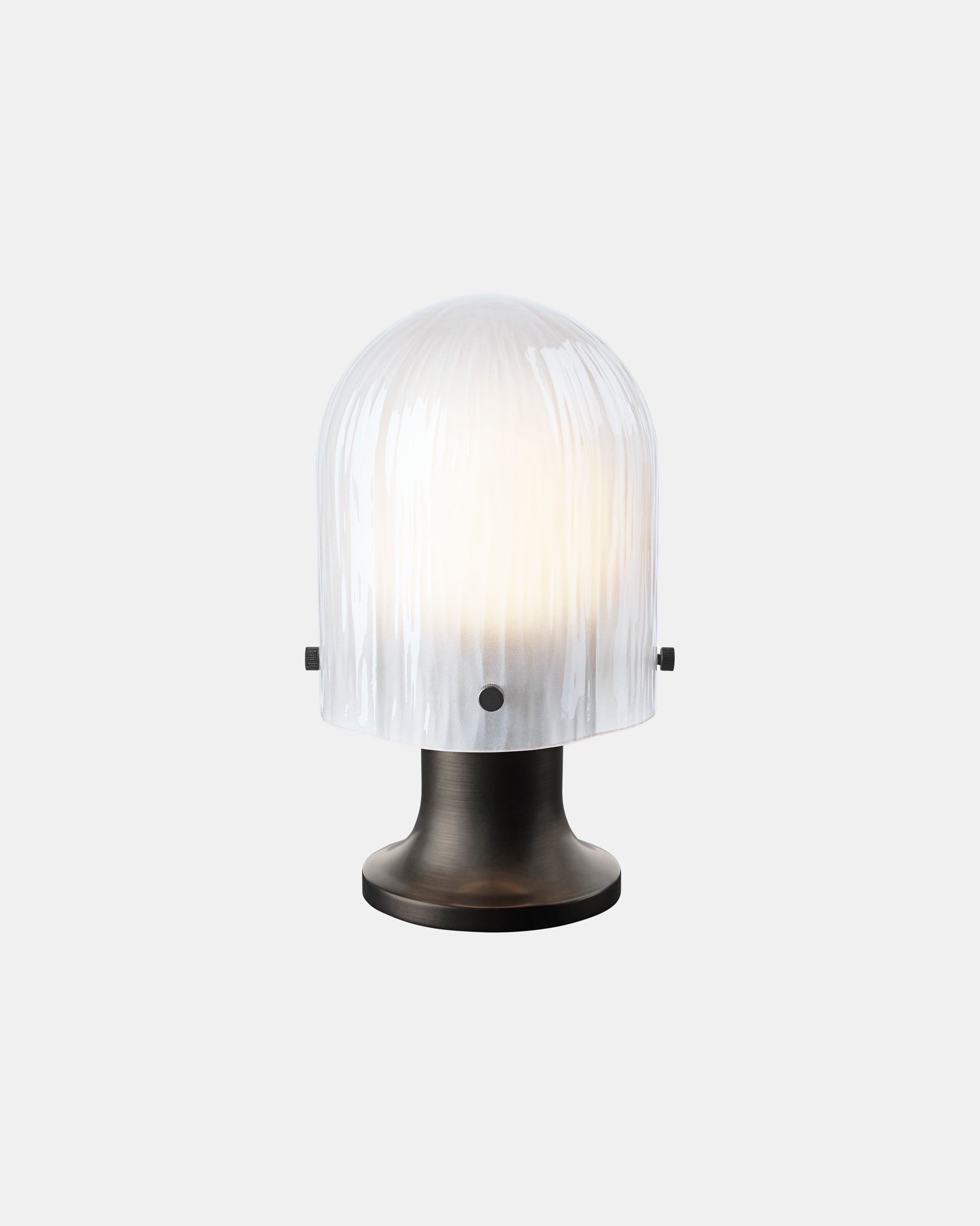 Den bærbare versjonen av Space Copenhagens Seine-bordlampe bringer designets magiske og atmosfæriske lysspill til både innendørs og utendørs. Inspirert av oppførselen til lys og vann, har den en munnblåst sandblåst glassskjerm med en sandblåst finish. Den portable Seine-lampen leveres med en USB-C-dokkingstasjon, og lades til fult batteri på åtte timer.