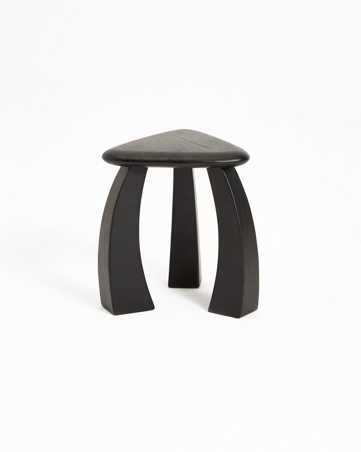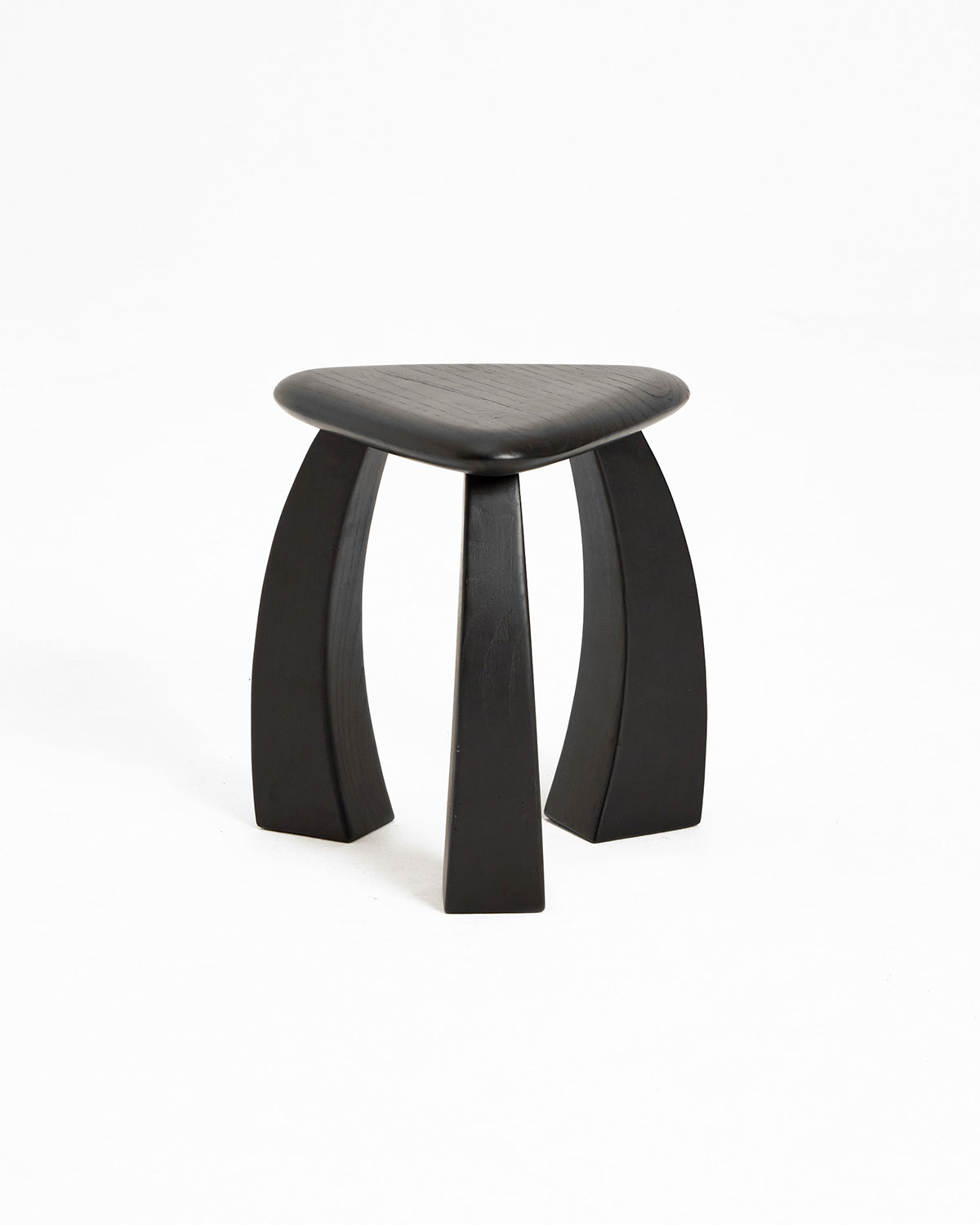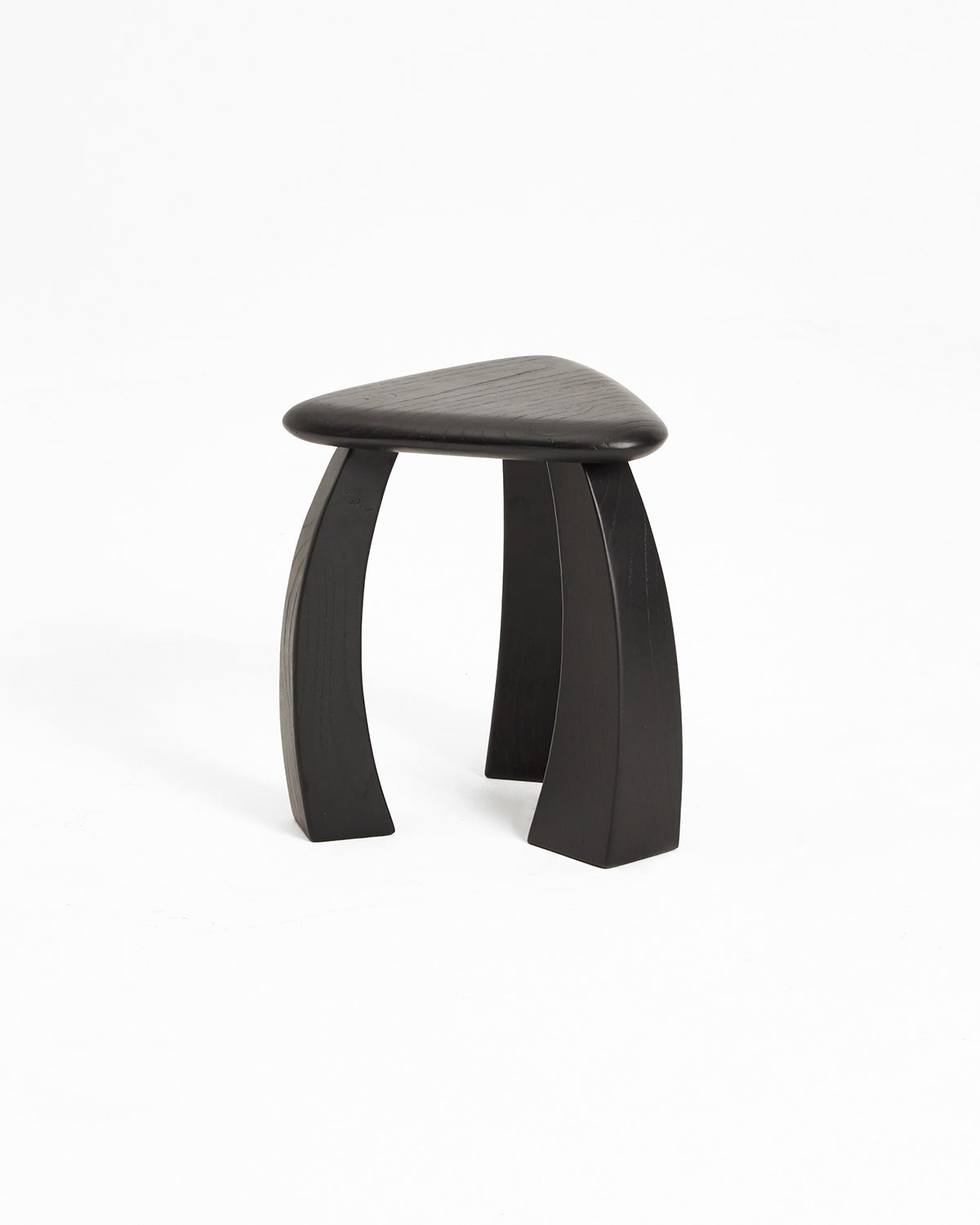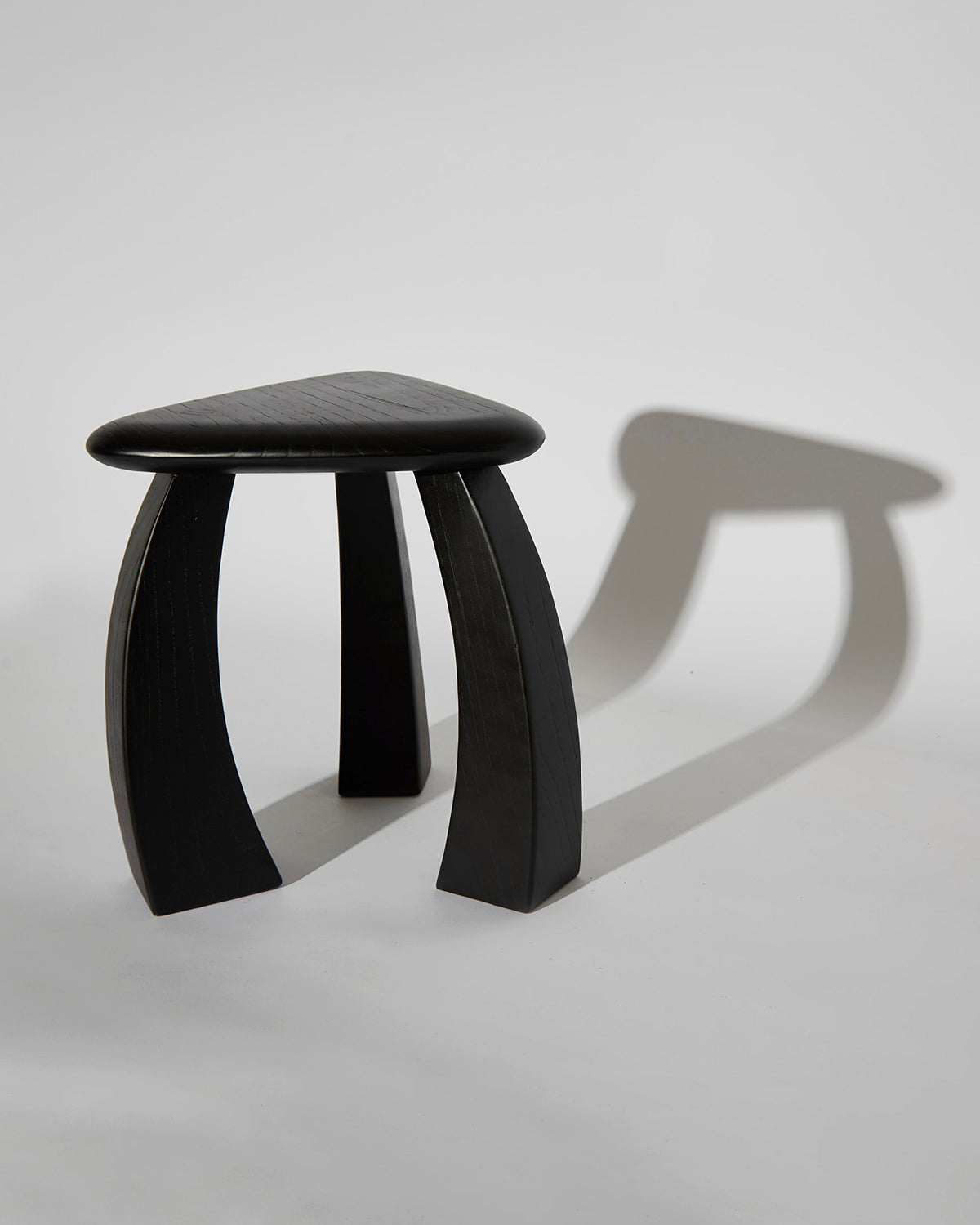 ARC DE STOOL er en serie skulpturelle møbler designet i 2022, håndlaget av dyktige håndverkere i Nord-Portugal. Med sine buede ben og trekantede topp kombinerer disse objektene estetikk og håndverk i en balansert form.