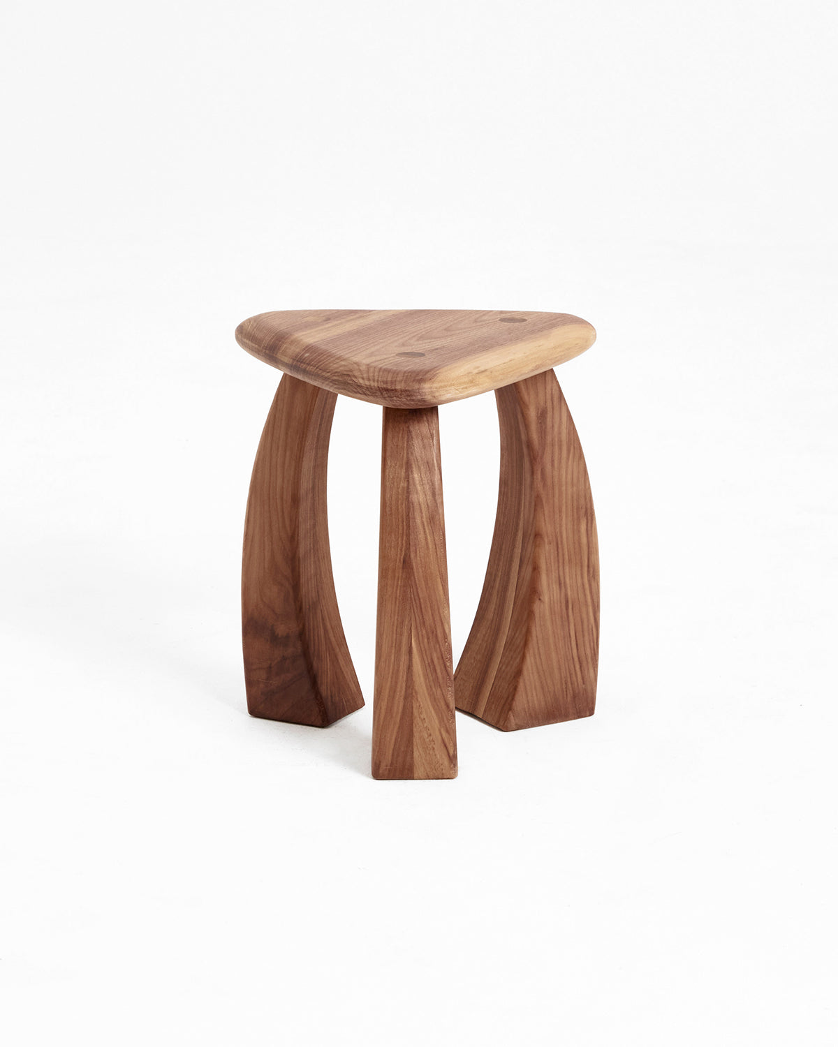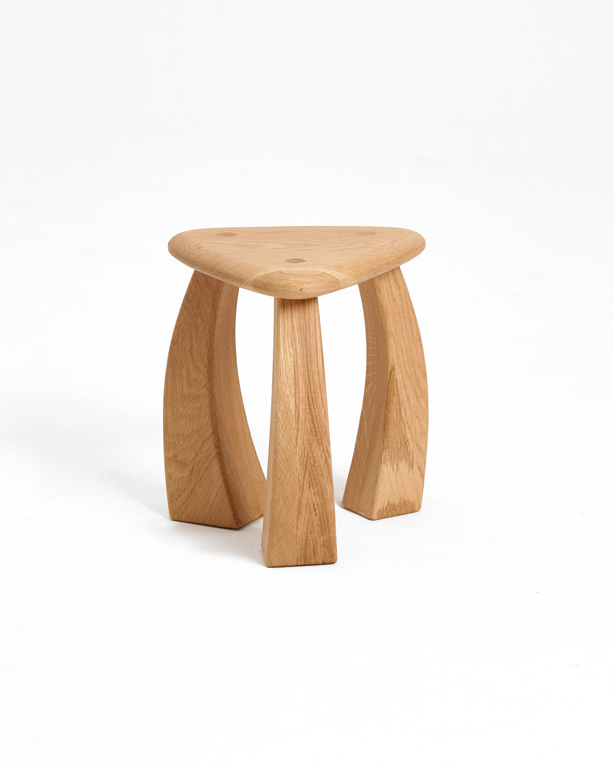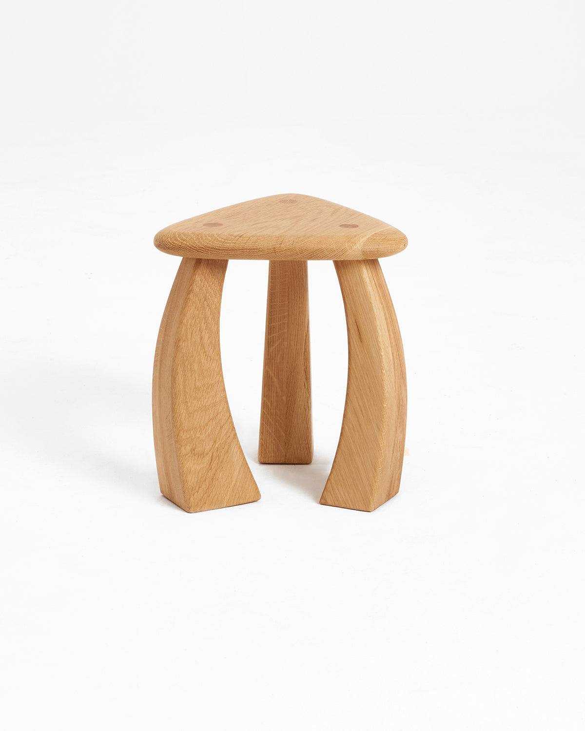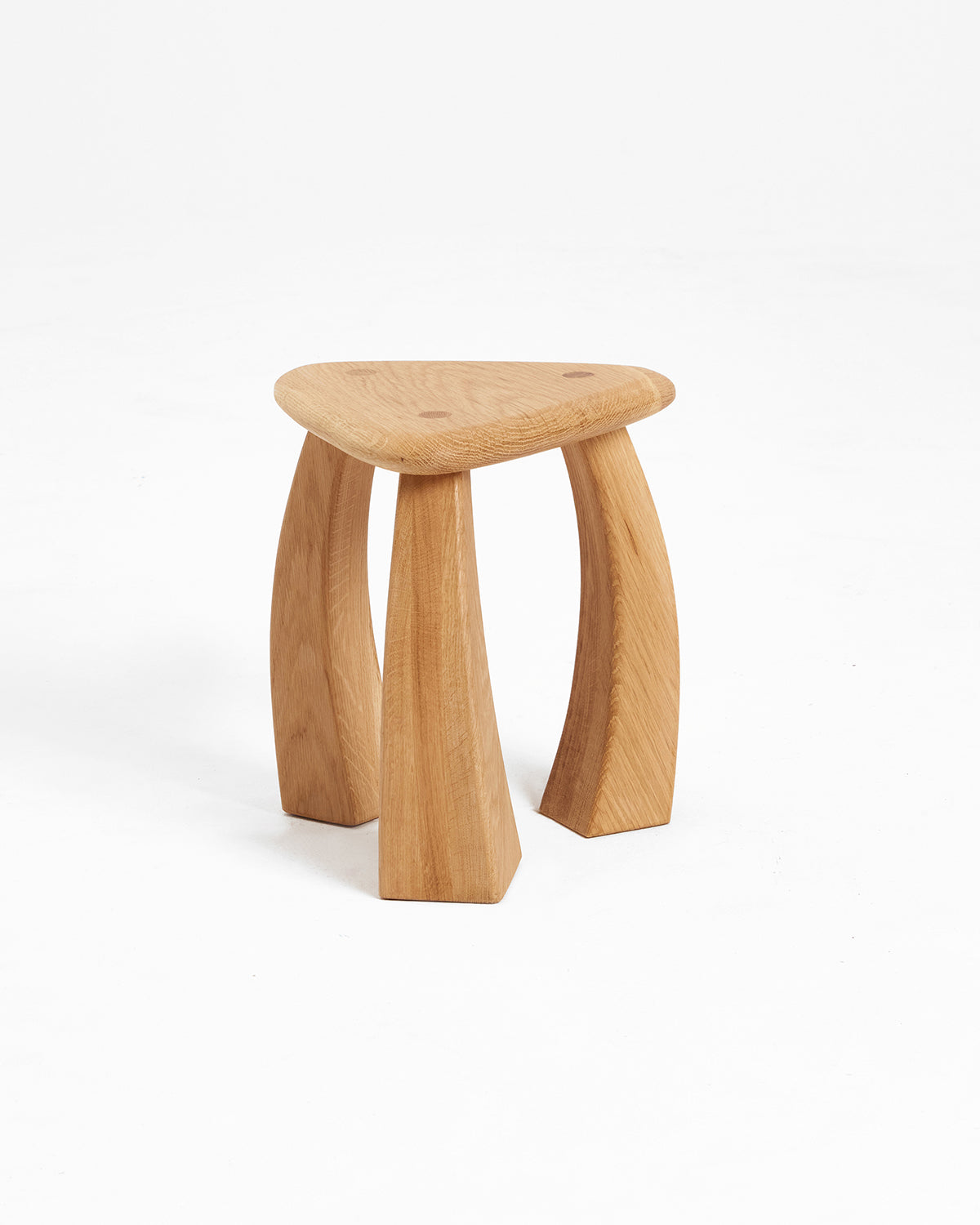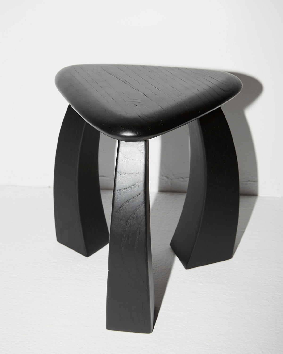 ARC DE STOOL er en serie skulpturelle møbler designet i 2022, håndlaget av dyktige håndverkere i Nord-Portugal. Med sine buede ben og trekantede topp kombinerer disse objektene estetikk og håndverk i en balansert form.