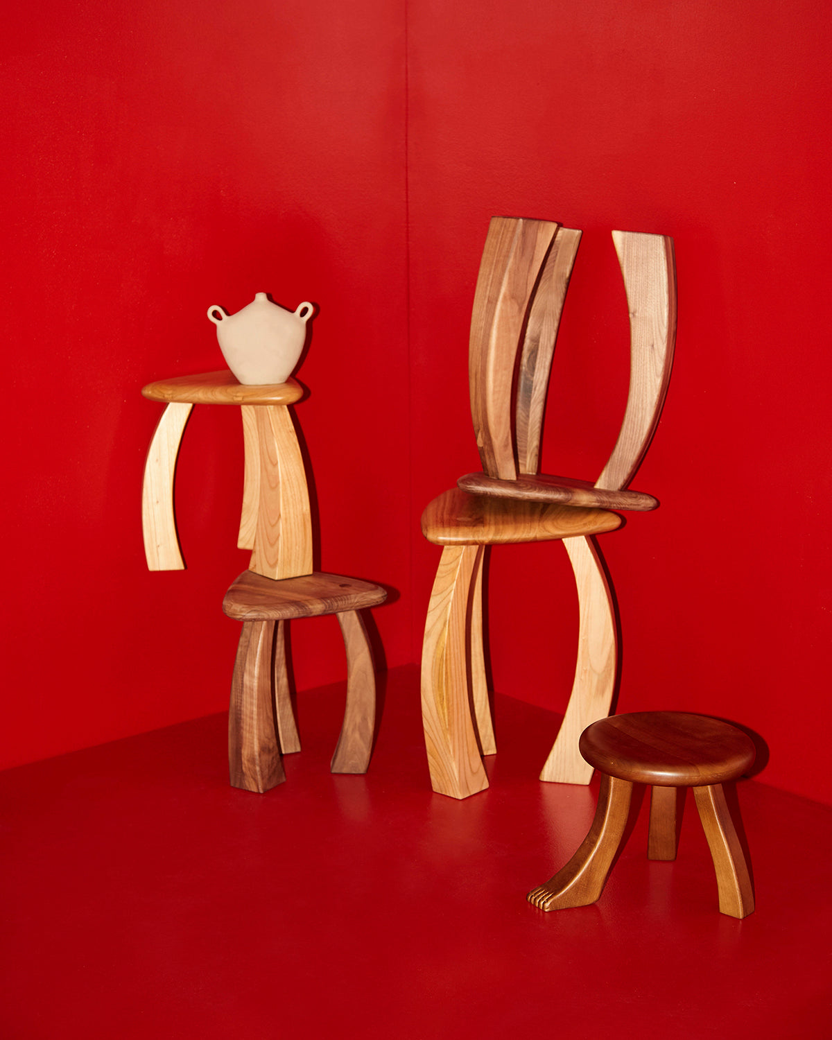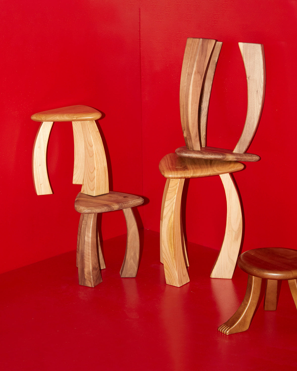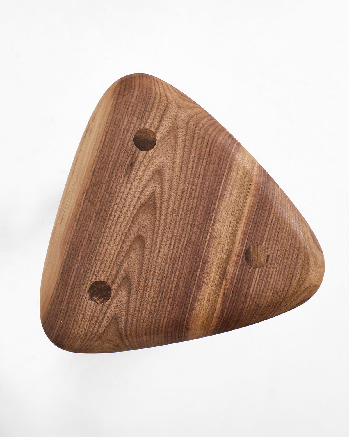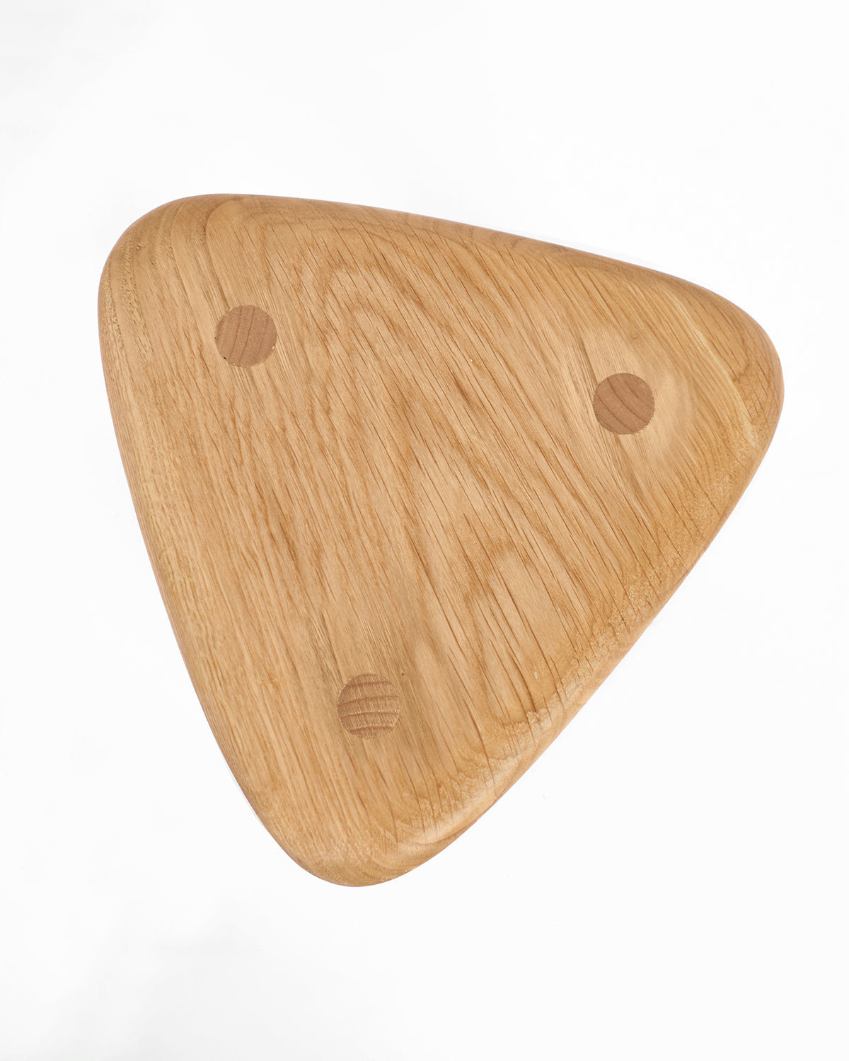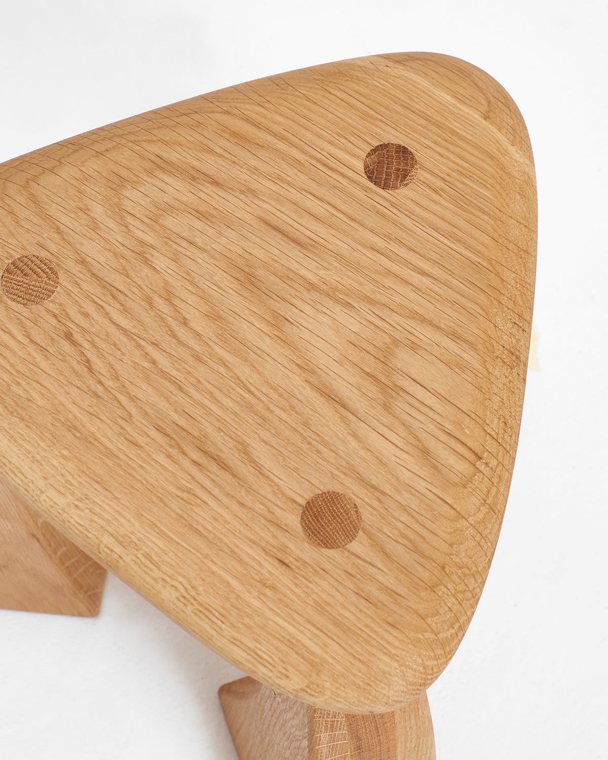 ARC DE STOOL er en serie skulpturelle møbler designet i 2022, håndlaget av dyktige håndverkere i Nord-Portugal. Med sine buede ben og trekantede topp kombinerer disse objektene estetikk og håndverk i en balansert form.