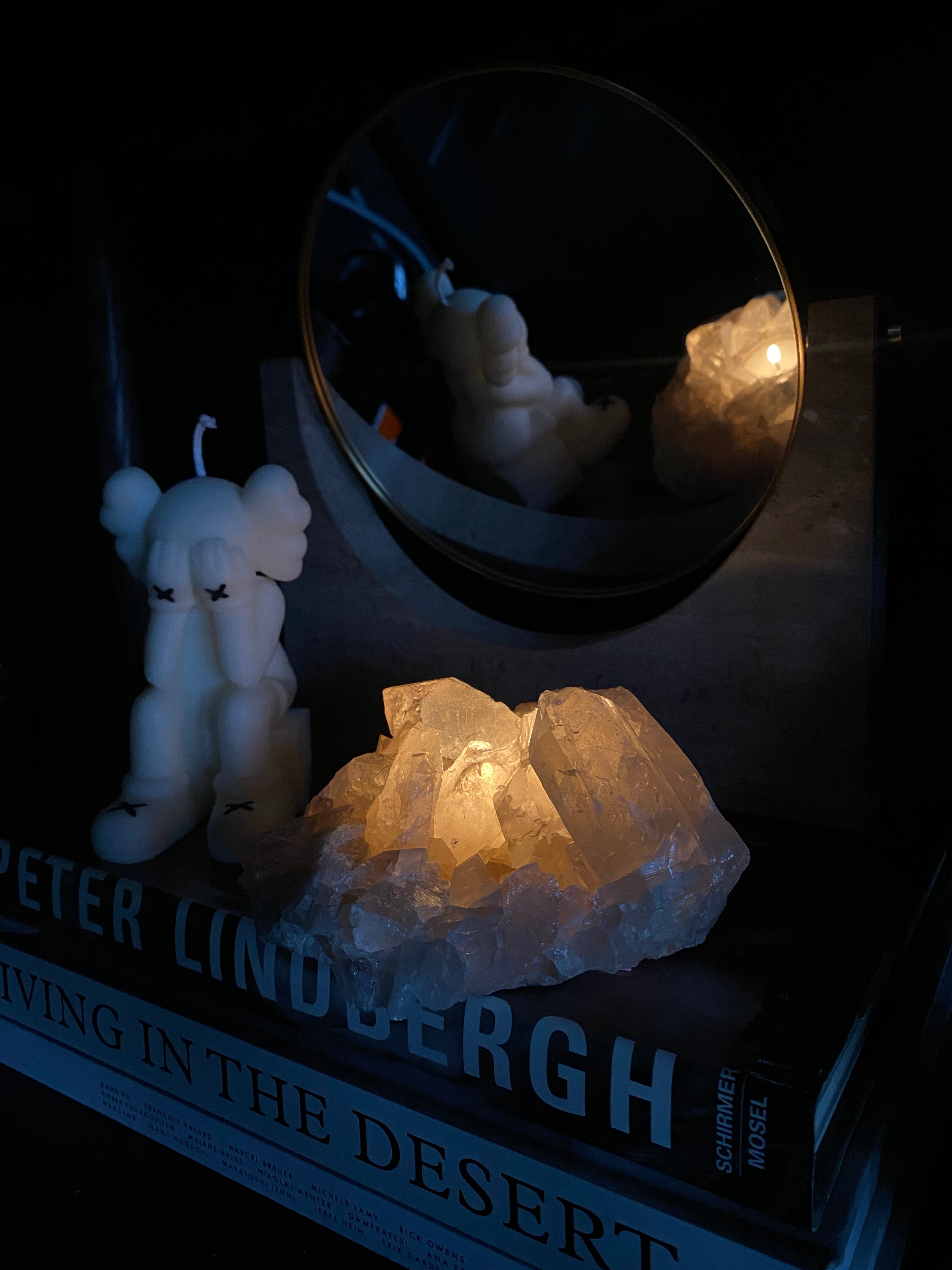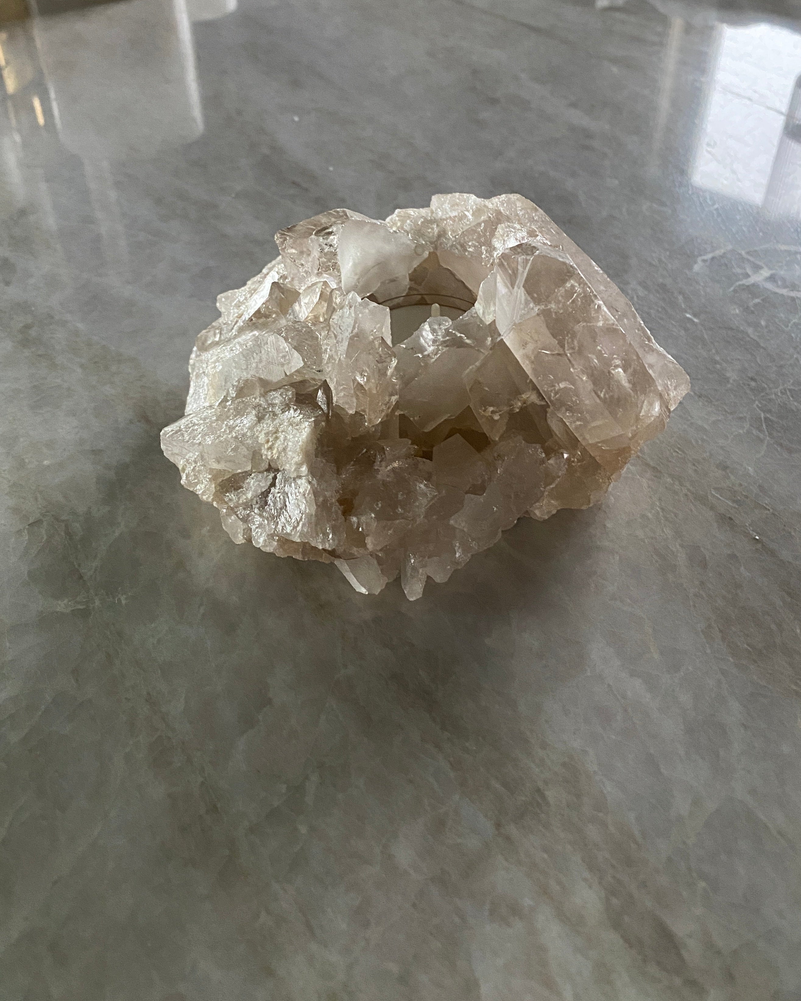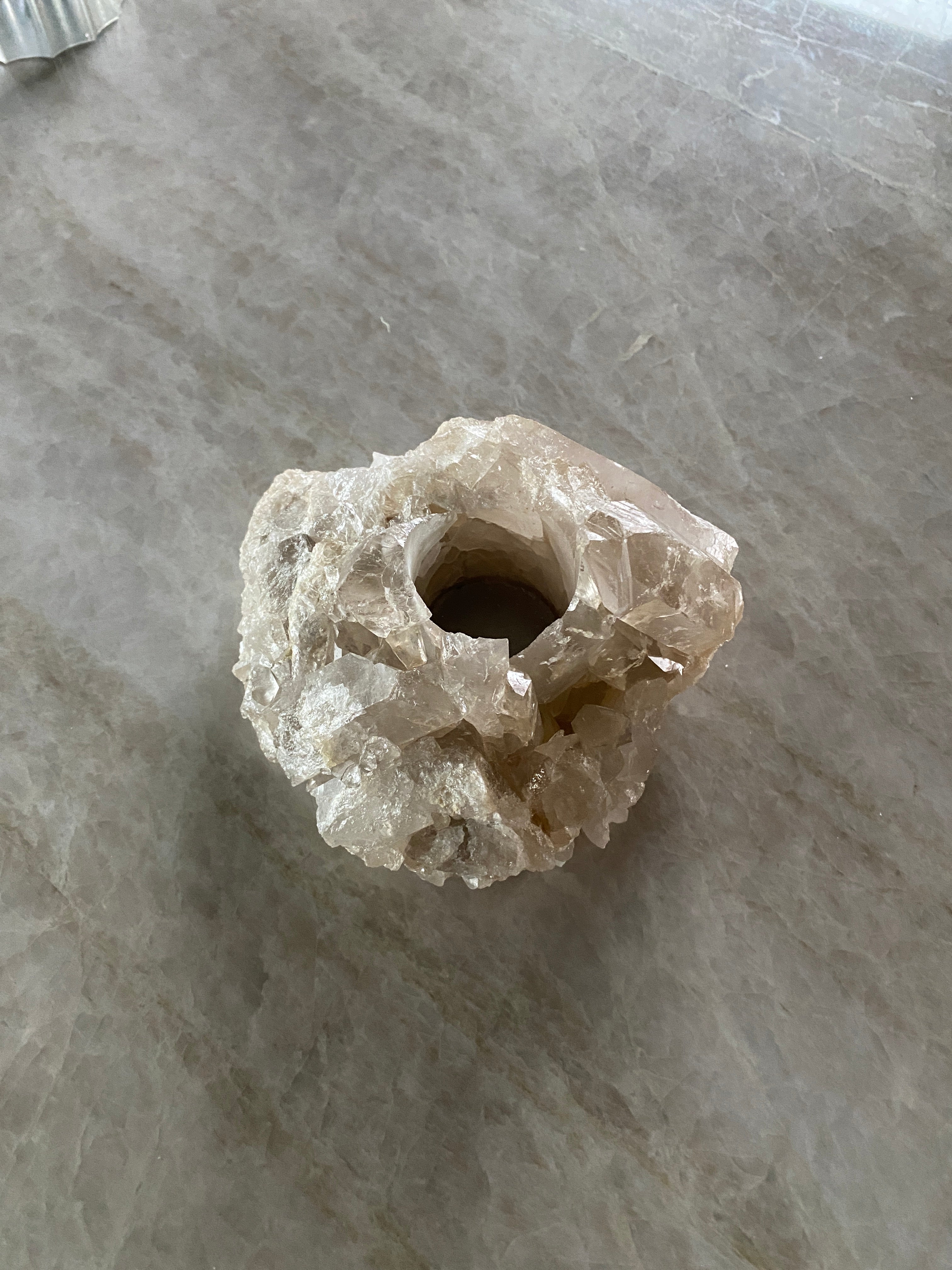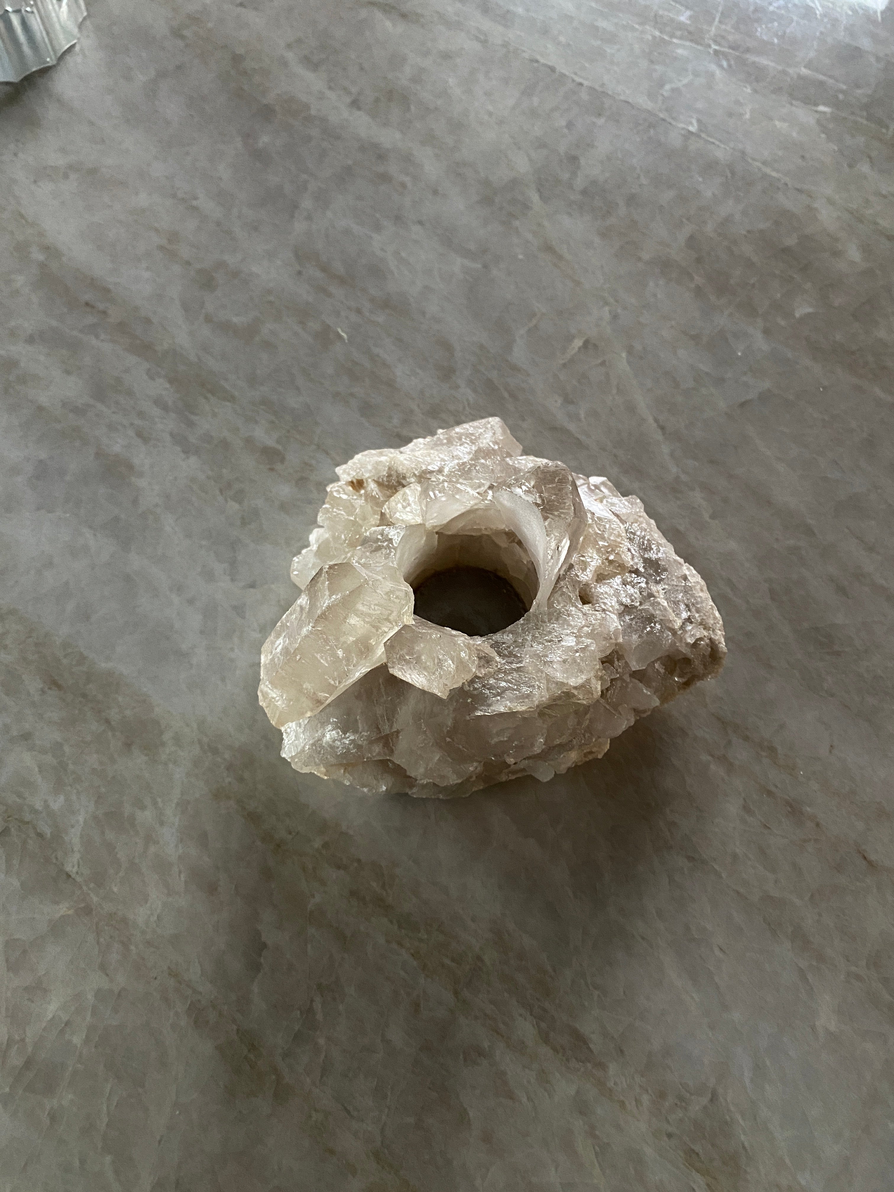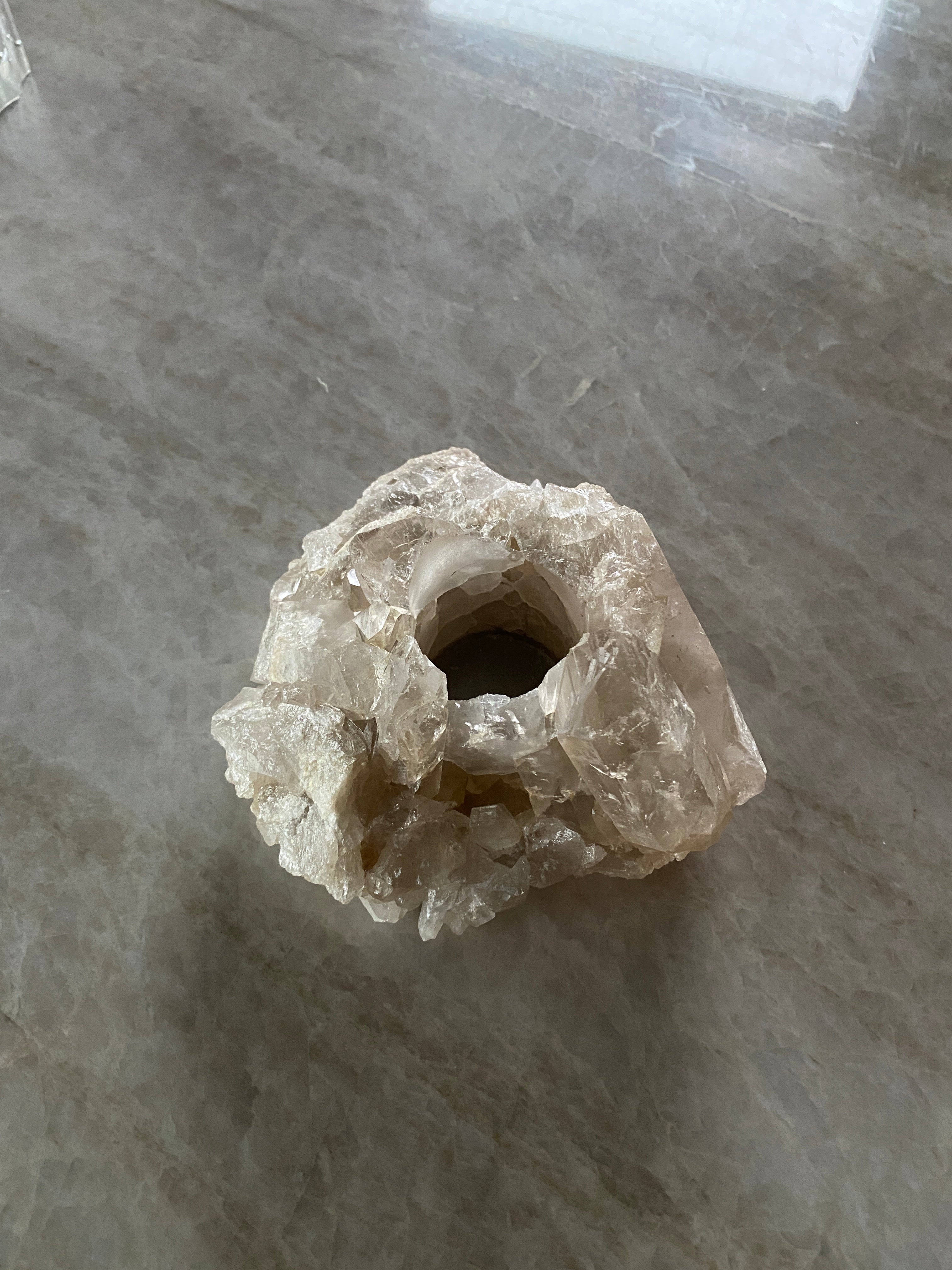 Telysholder i kvarts – et unikt naturstykke som kombinerer rå stein med mykt lys. Hver holder er håndlaget av ekte kvarts, og har sin egen form og struktur. Perfekt som dekorasjon eller som en stemningsfull detalj i hjemmet.