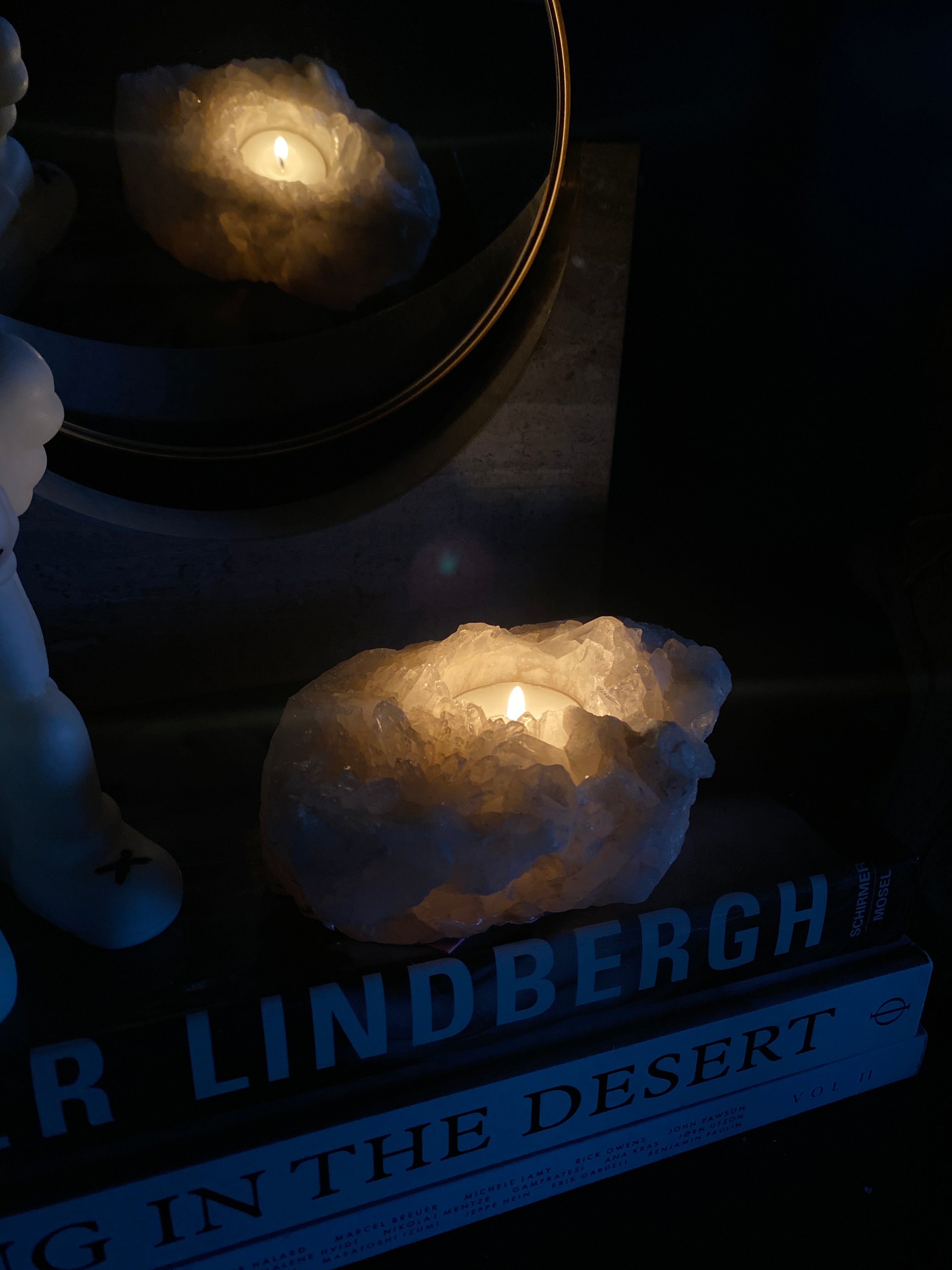 Telysholder i kvarts – et unikt naturstykke som kombinerer rå stein med mykt lys. Hver holder er håndlaget av ekte kvarts, og har sin egen form og struktur. Perfekt som dekorasjon eller som en stemningsfull detalj i hjemmet.