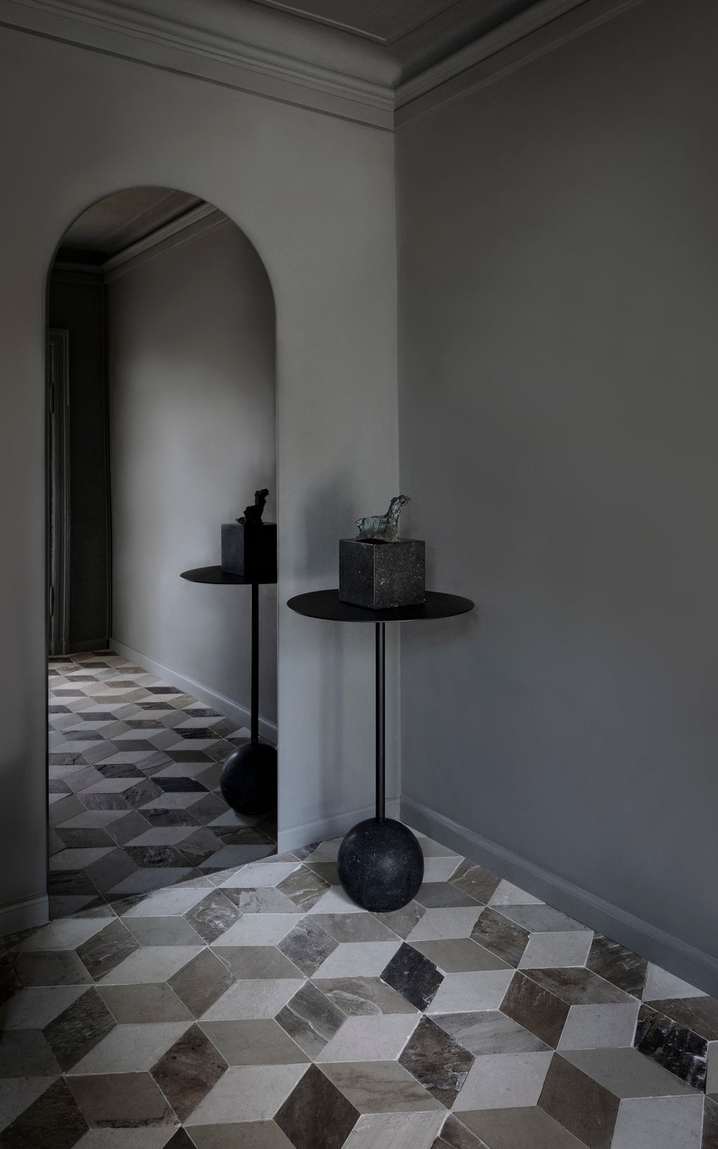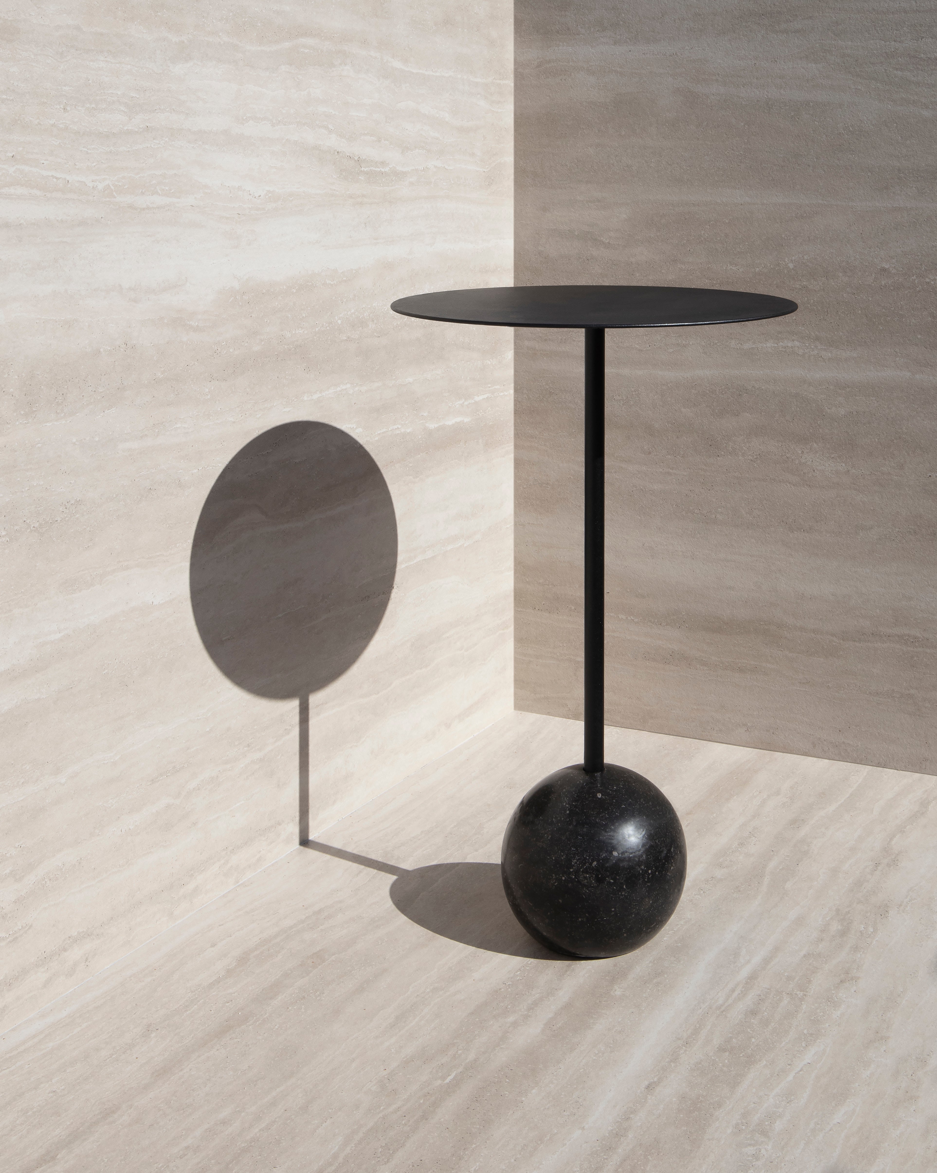 Bordene er produsert i Europa hvor tradisjonen for marmorhåndverk er sterk. Den utvalgte marmoren er ubehandlet og etterlater en finslipt, matt, silkeaktig finish som er utsøkt å ta på. Bordplaten er laget av solid aluminium og egner seg derfor også til uterom. Kolleksjonen har et tilpasset belegg som gjør møblene ekstremt holdbare som i alle Friends & Founders metall- og utendørsprodukter. Pulverlakkene er UV-bestandige, så de egner seg for solrike omgivelser. En matt og lett granulert overflate gir kolleksjonen et sofistikert preg og utseende. Belegget har en liten glitrende mineraler som gir overflaten mer dybde og gjør følelsen mykere.