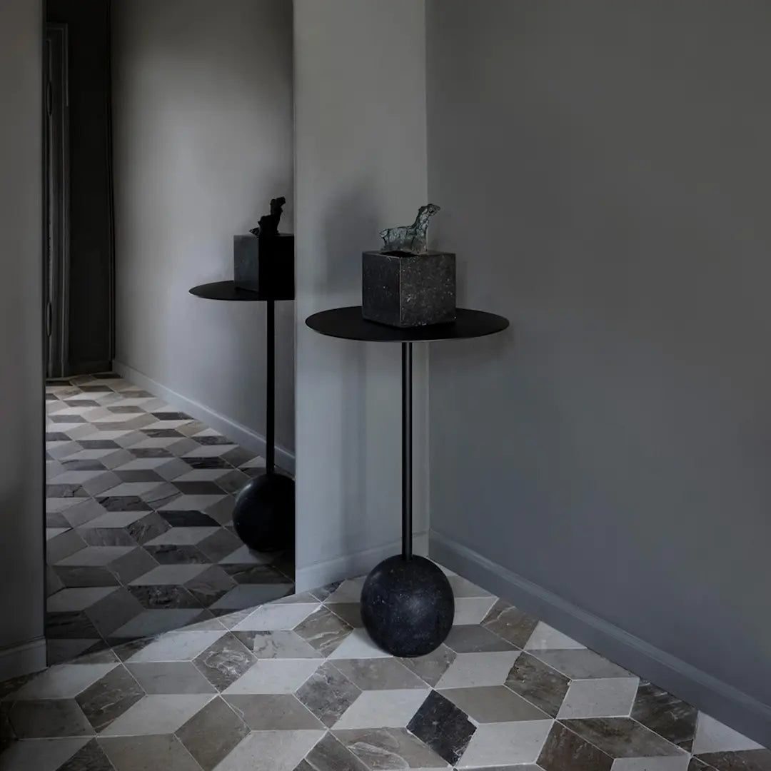 Bordene er produsert i Europa hvor tradisjonen for marmorhåndverk er sterk. Den utvalgte marmoren er ubehandlet og etterlater en finslipt, matt, silkeaktig finish som er utsøkt å ta på. Bordplaten er laget av solid aluminium og egner seg derfor også til uterom. Kolleksjonen har et tilpasset belegg som gjør møblene ekstremt holdbare som i alle Friends & Founders metall- og utendørsprodukter. Pulverlakkene er UV-bestandige, så de egner seg for solrike omgivelser. En matt og lett granulert overflate gir kolleksjonen et sofistikert preg og utseende. Belegget har en liten glitrende mineraler som gir overflaten mer dybde og gjør følelsen mykere.