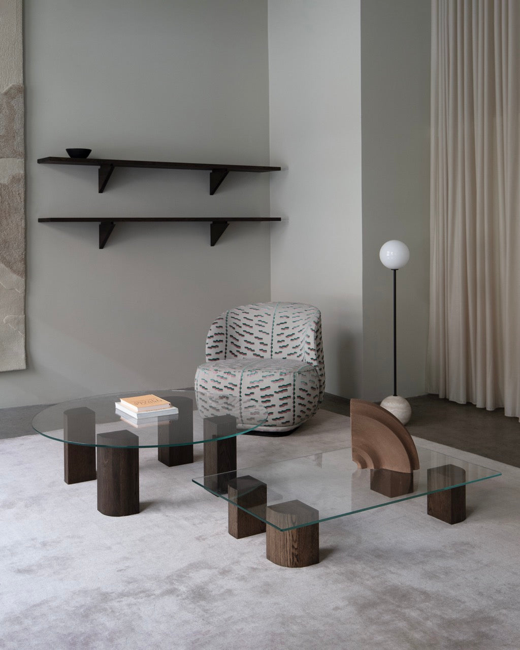 Quarter Lounge er en videreføring av Quarter Table, men med sitt eget moderne uttrykk. Bordet kjennetegnes av en raffinert materialkombinasjon og en skulpturell form som gjør det til et naturlig blikkfang i rommet.