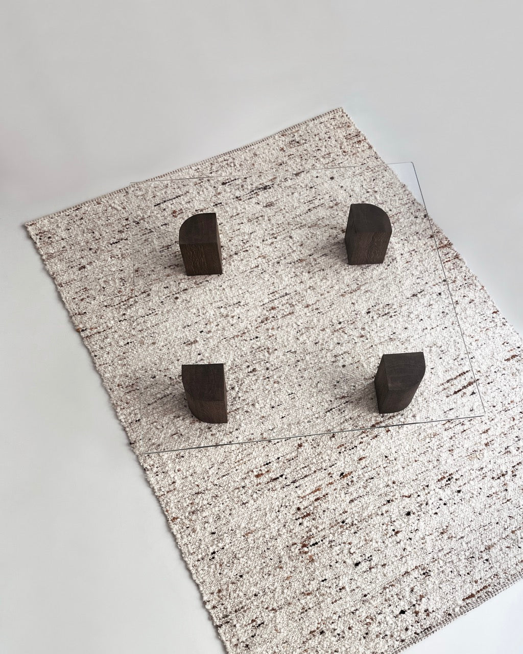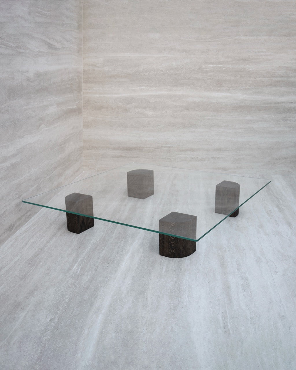 Designet preges av kontraster og en flytende form der materialene møtes. Den solide trefoten harmonerer med en tynn glassplate, noe som gir bordet et lett og transparent uttrykk. Hver detalj i konstruksjonen bidrar til helheten, der de skulpturelle bena kombinerer organiske ytre former med presise, kantede innvendige linjer.