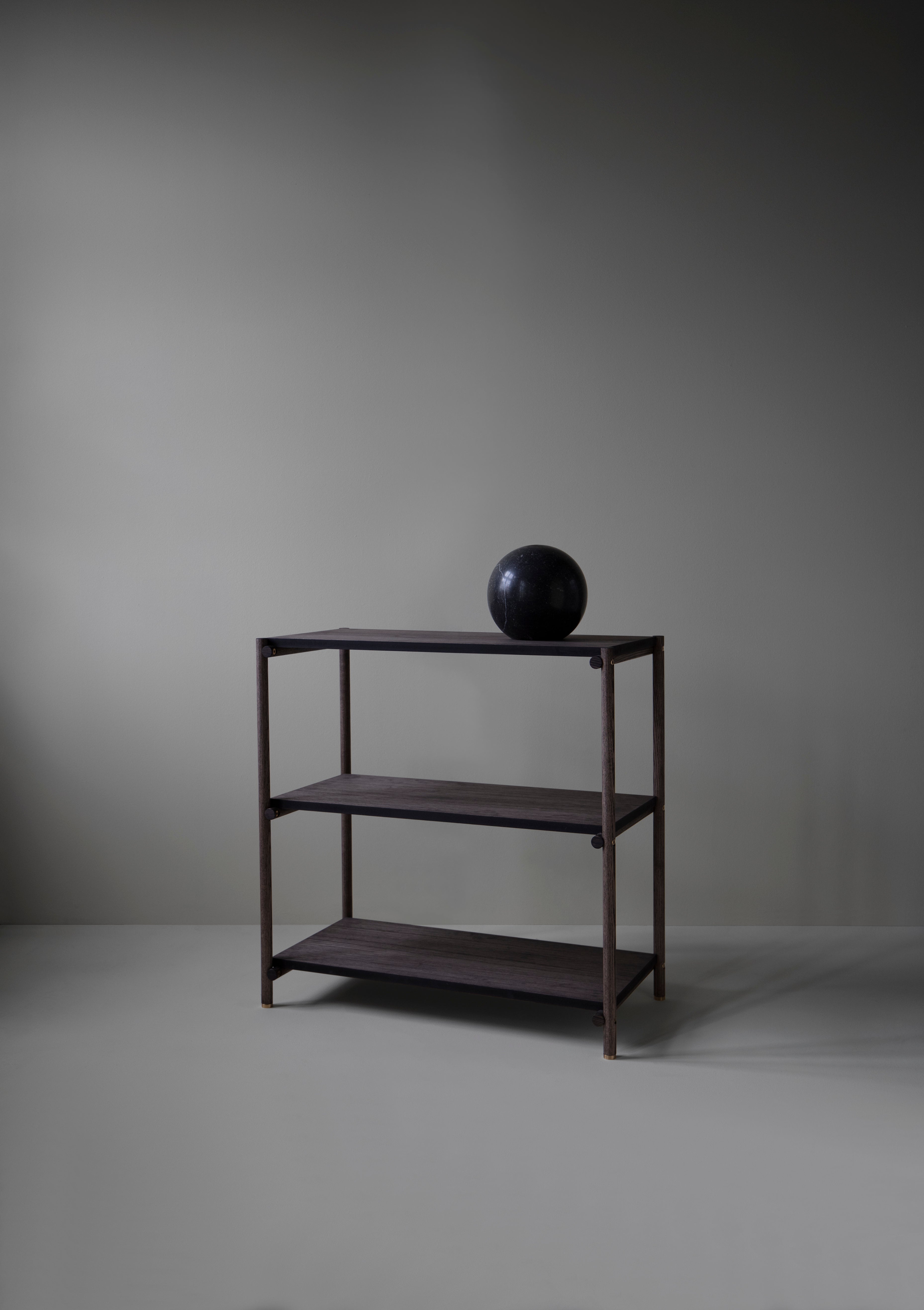 Denne moderne kolleksjonen passer inn i flere miljøer og skiller seg ut fra omgivelsene ved å fungere som den perfekte rammen eller pidestallen for ditt livs skatter og kuriositeter. Messingbeslagene og elegante designfunksjoner til Shelvish understreker kvalitet og håndverk. Friends & Founders' ASH-tre viser en elegant tekstur og spesielt vakkert korn. I det ferdige produktet gir det en silkeaktig, varm følelse. Friends & Founders’ overflatebehandlinger opprettholder den naturlige skjønnheten og følelsen av råmaterialet samtidig som det sikrer holdbarheten.