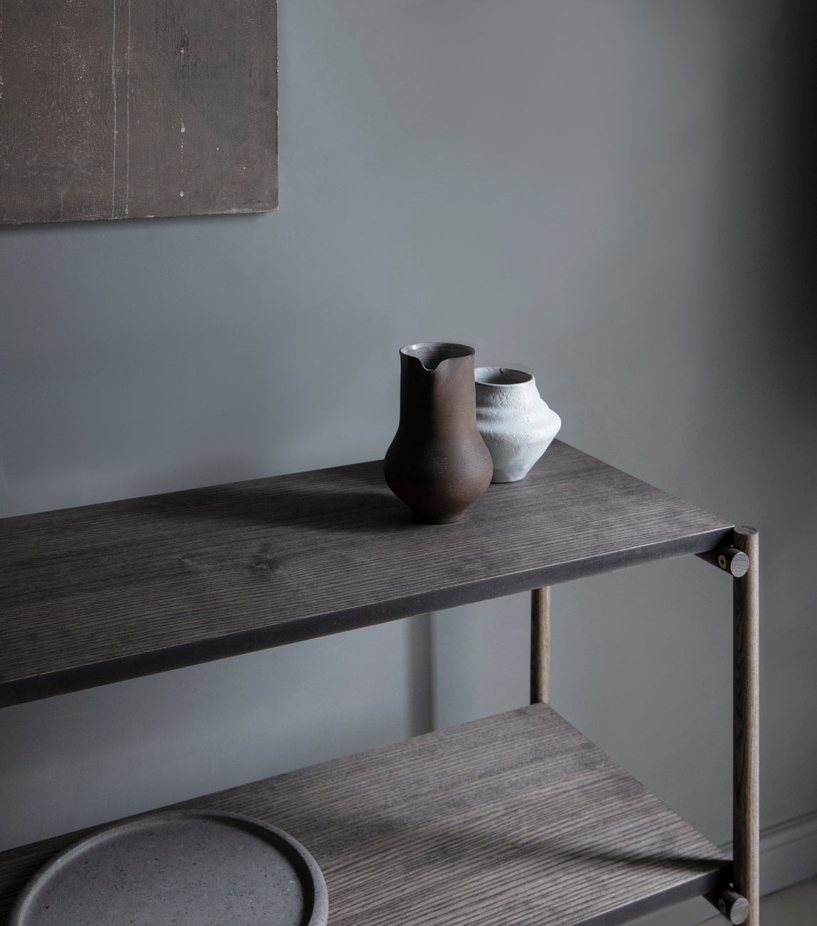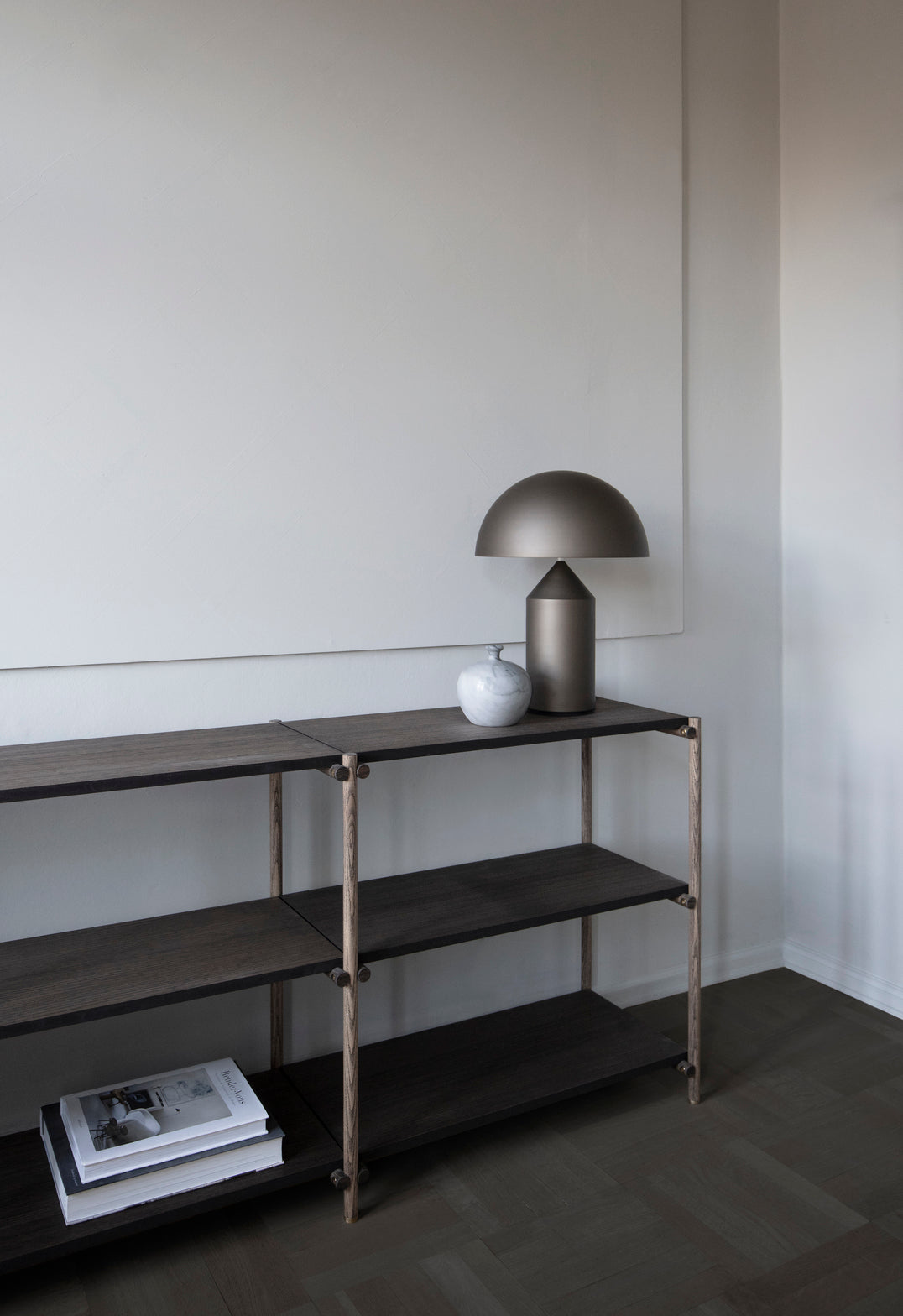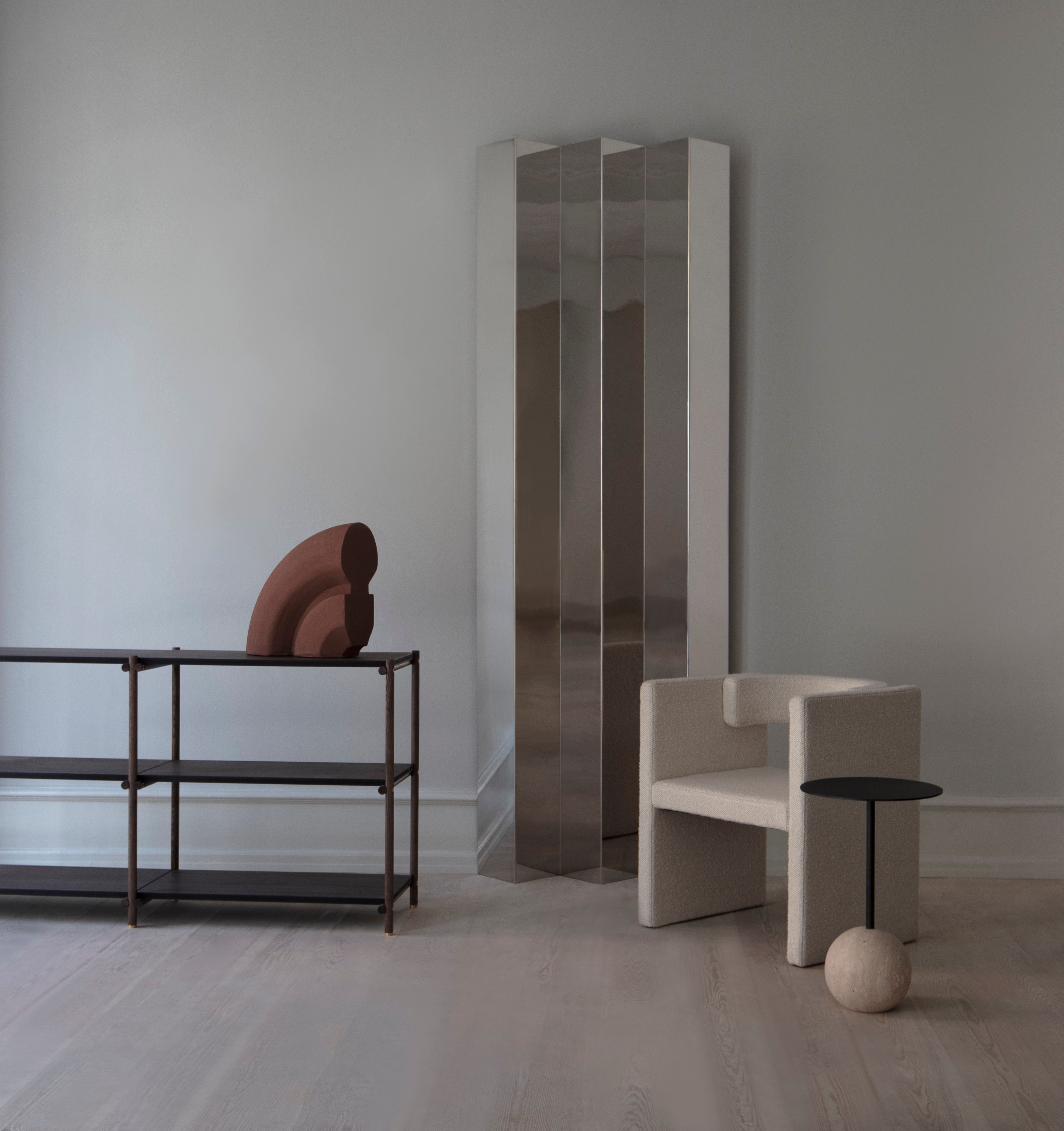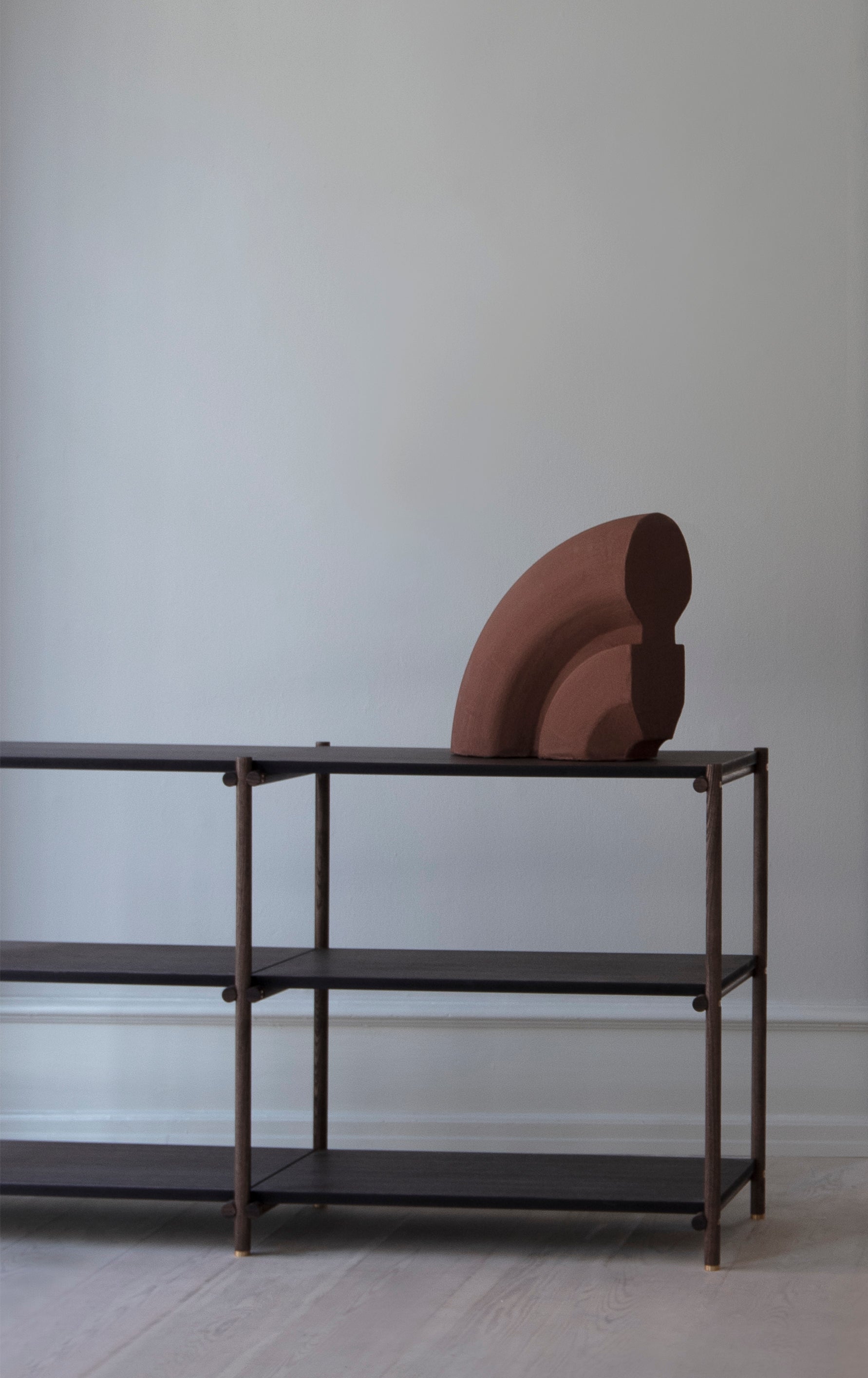 Denne moderne kolleksjonen passer inn i flere miljøer og skiller seg ut fra omgivelsene ved å fungere som den perfekte rammen eller pidestallen for ditt livs skatter og kuriositeter. Messingbeslagene og elegante designfunksjoner til Shelvish understreker kvalitet og håndverk. Friends & Founders' ASH-tre viser en elegant tekstur og spesielt vakkert korn. I det ferdige produktet gir det en silkeaktig, varm følelse. Friends & Founders’ overflatebehandlinger opprettholder den naturlige skjønnheten og følelsen av råmaterialet samtidig som det sikrer holdbarheten.