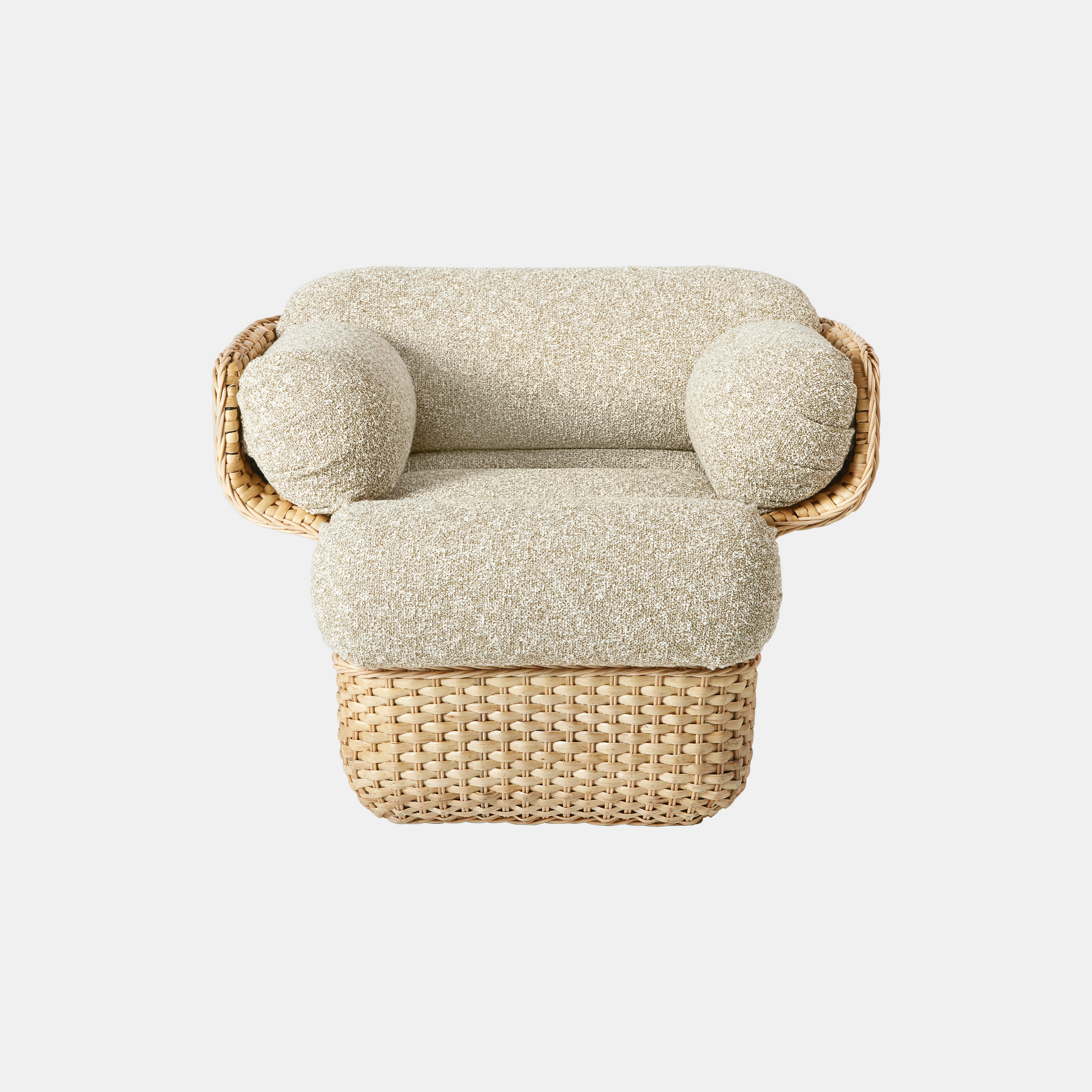 Navnet Basket viser til den klassiske kurvflettingstradisjonen som danner grunnlaget for kolleksjonen. Serien består av en treseters sofa, en toseters sofa og en lenestol, alle bygget over samme konstruktive prinsipp. Der Colombo opprinnelig benyttet et indre skall i glassfiber, er kjernen i dagens utgave erstattet med et mer miljøvennlig stålskjelett som gir både styrke og presisjon til formen. Over dette er det håndvevd rotting, utført med flettede strimler og ovale staver. Resultatet er et møbel som kombinerer avansert konstruksjon med tidkrevende håndverk og en taktil, nesten skulpturell overflate.