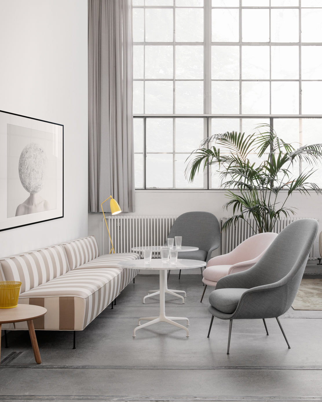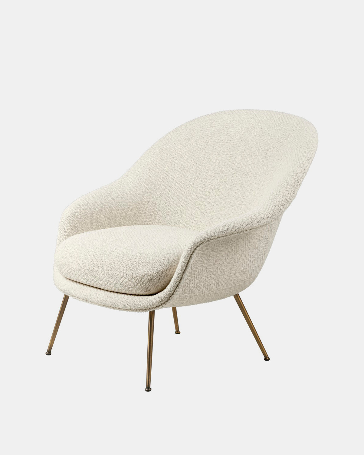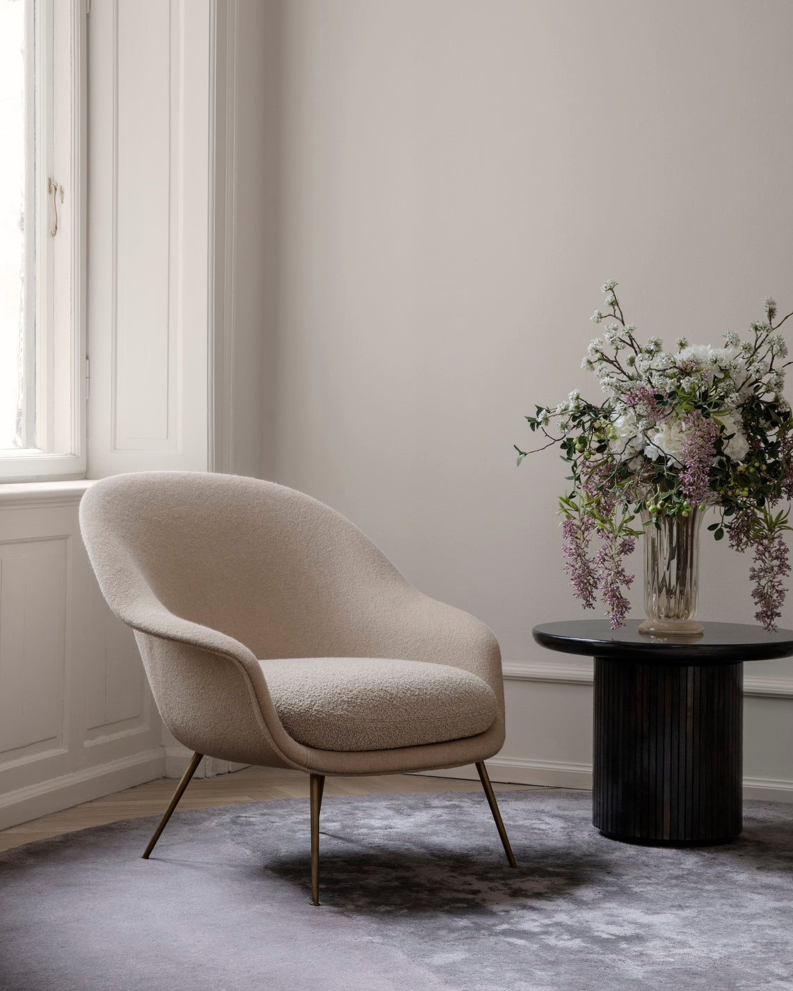Bat Lounge Chair er designet av GamFratesi for GUBI og forener en arkitektonisk presisjon med en myk, omfavnende form. Den karakteristiske skallet er inspirert av flaggermusens vingespenn, med avrundede linjer som omslutter kroppen og gir en følelse av ro og beskyttelse.