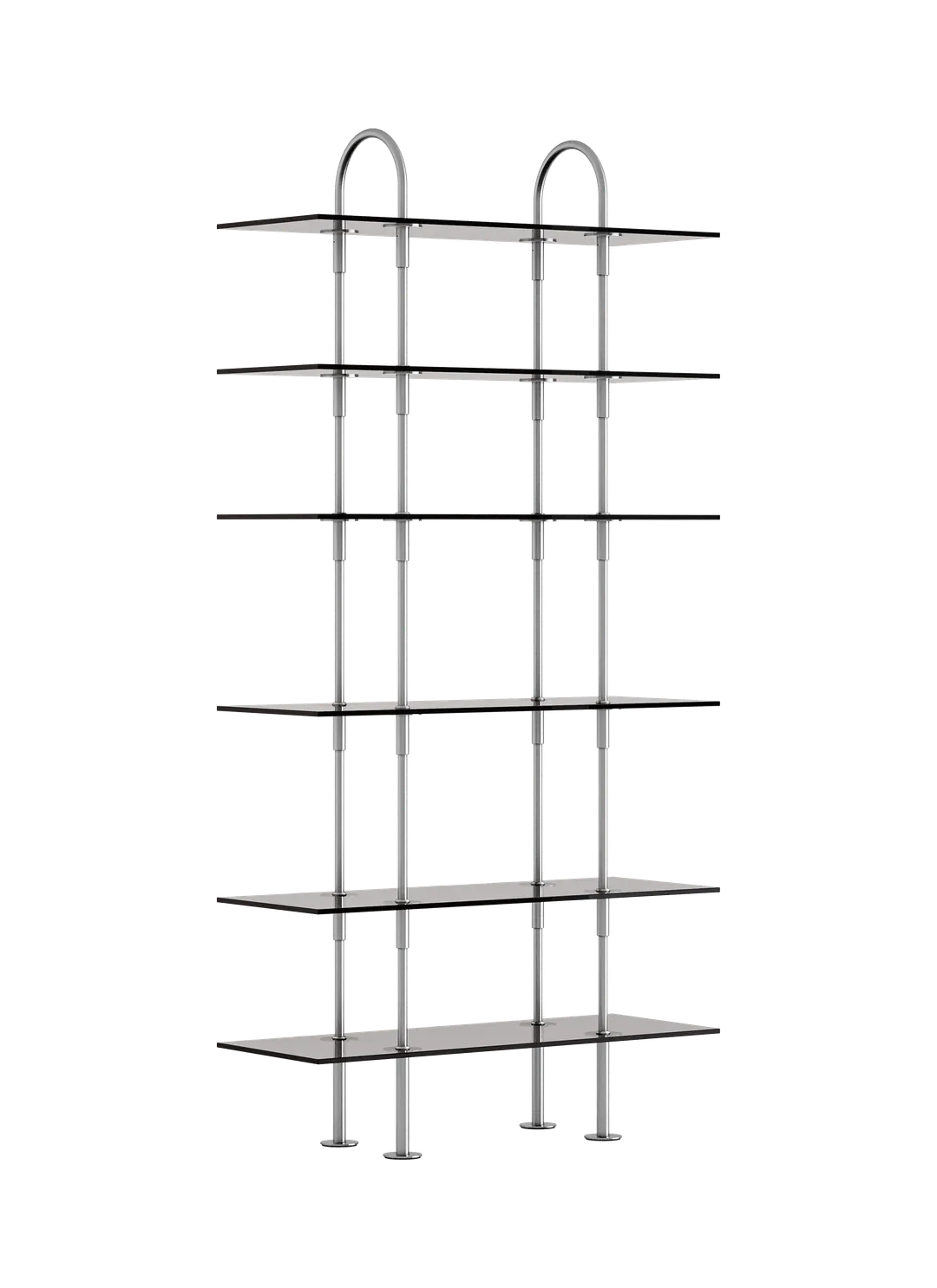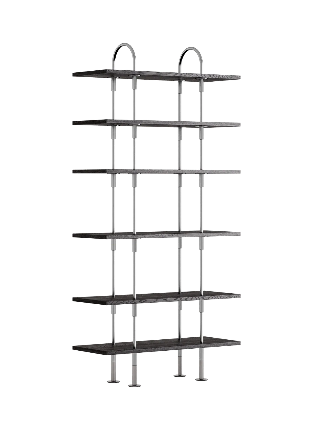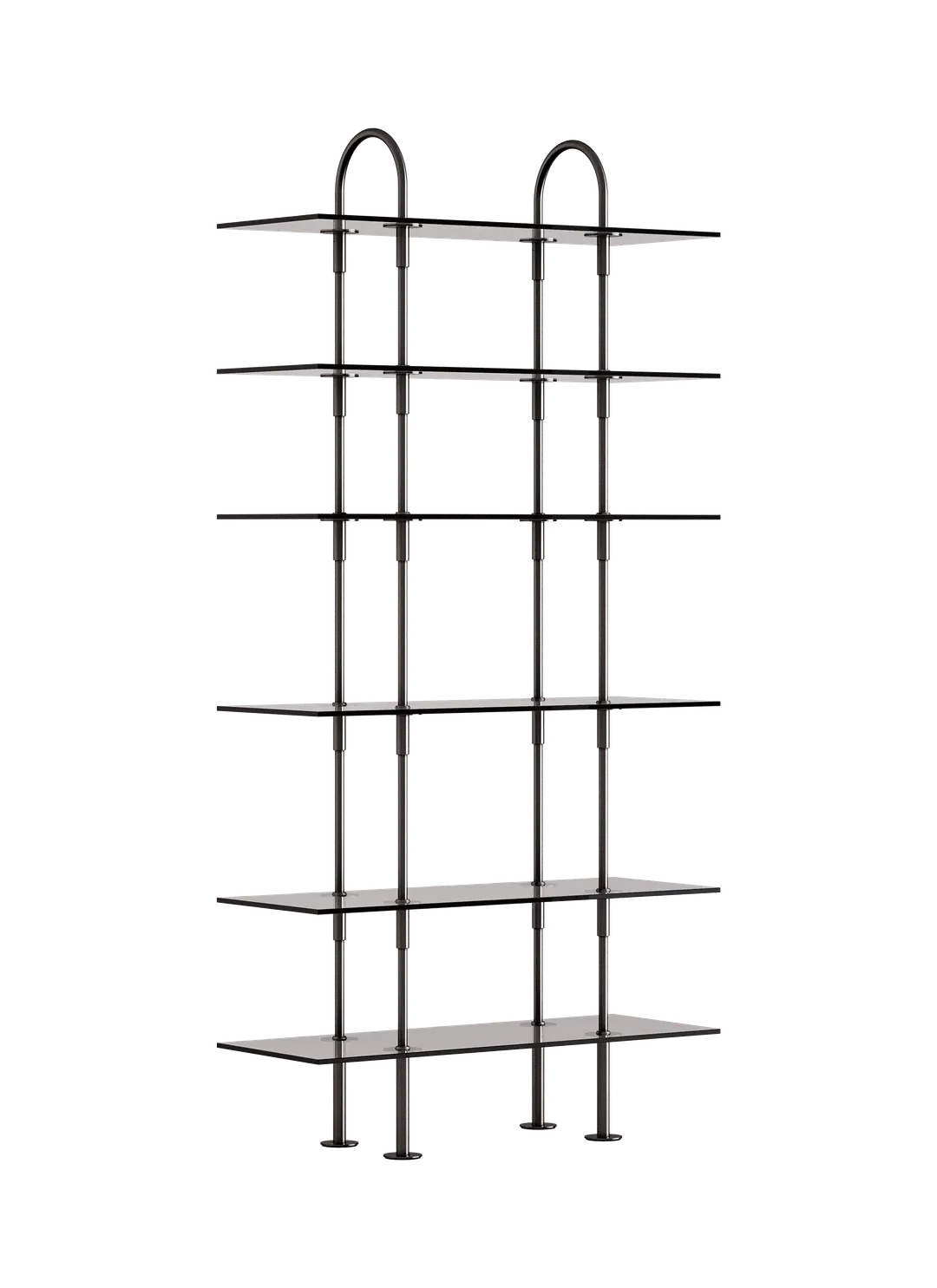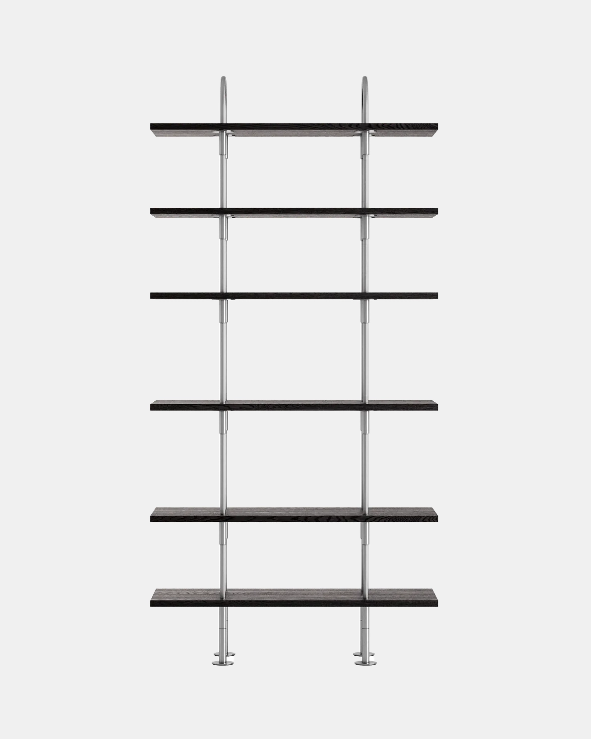 Keen kjennetegnes av sin intuitive konstruksjon med vertikale metallstenger, presise braketter og myke buer som avslutning på toppen. De markante føttene løfter hyllen visuelt fra gulvet og gir en letthet som står i fin kontrast til den solide konstruksjonen. Resultatet er et hyllesystem med både karakter og fleksibilitet, like egnet til private hjem som til kontor, hotell og restaurant.