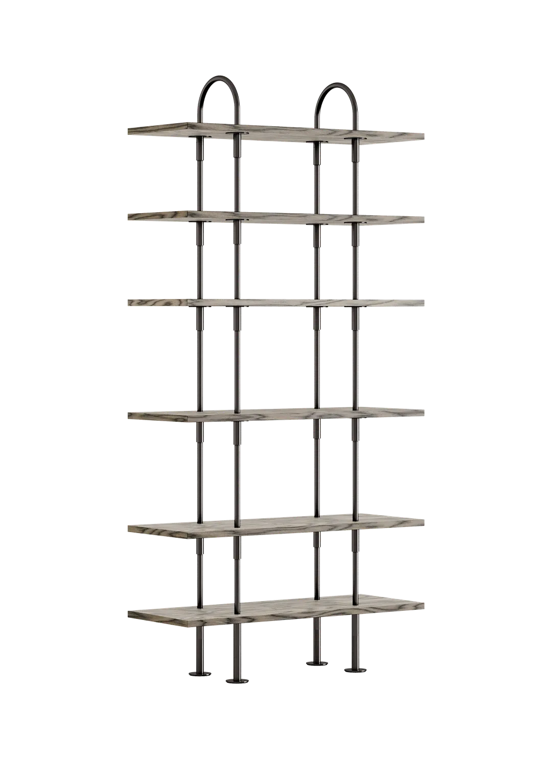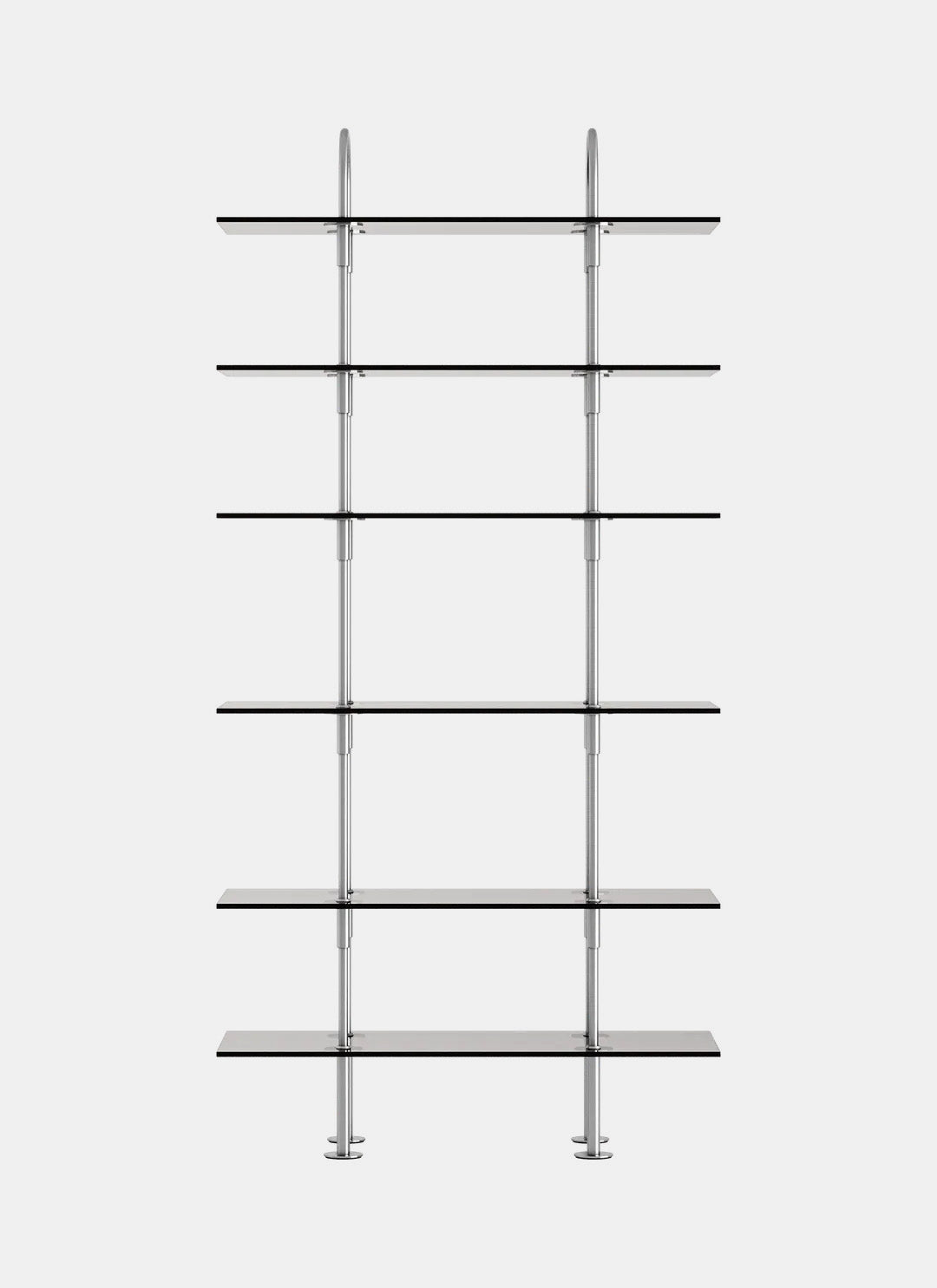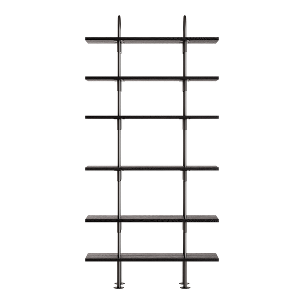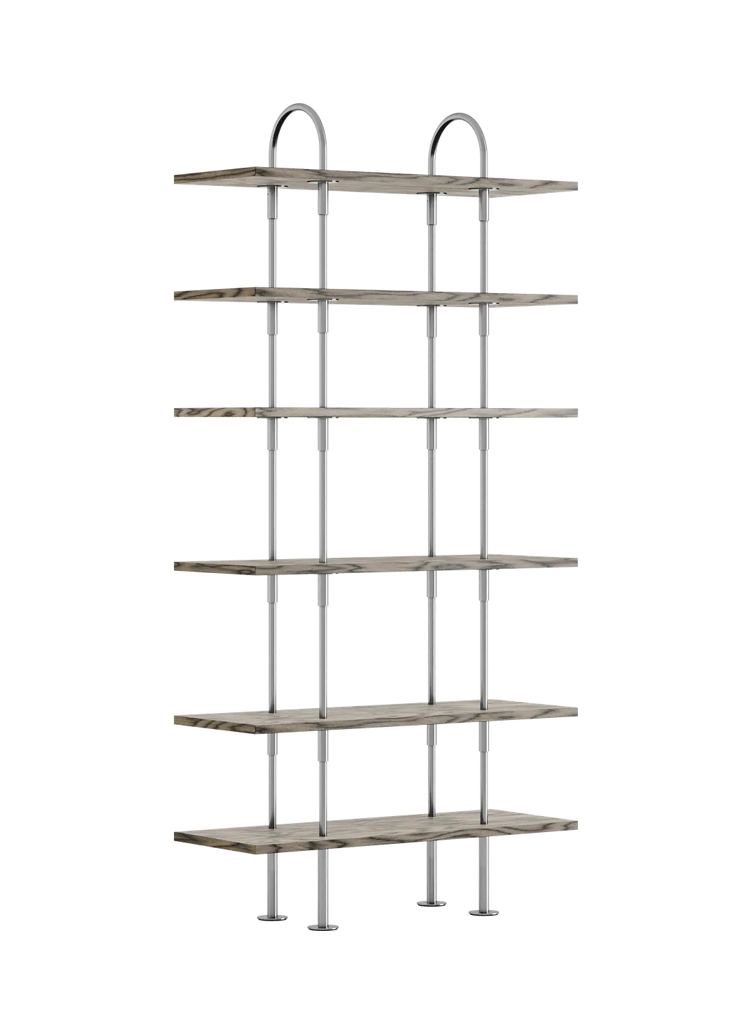 Keen kjennetegnes av sin intuitive konstruksjon med vertikale metallstenger, presise braketter og myke buer som avslutning på toppen. De markante føttene løfter hyllen visuelt fra gulvet og gir en letthet som står i fin kontrast til den solide konstruksjonen. Resultatet er et hyllesystem med både karakter og fleksibilitet, like egnet til private hjem som til kontor, hotell og restaurant.