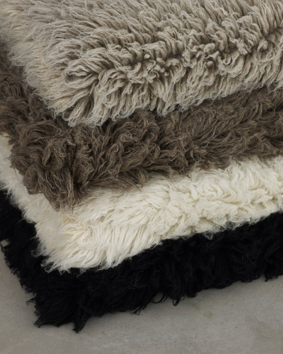 Rist teppet godt før bruk for å løsne overflødig ull og gi det sin karakteristiske, luftige struktur.