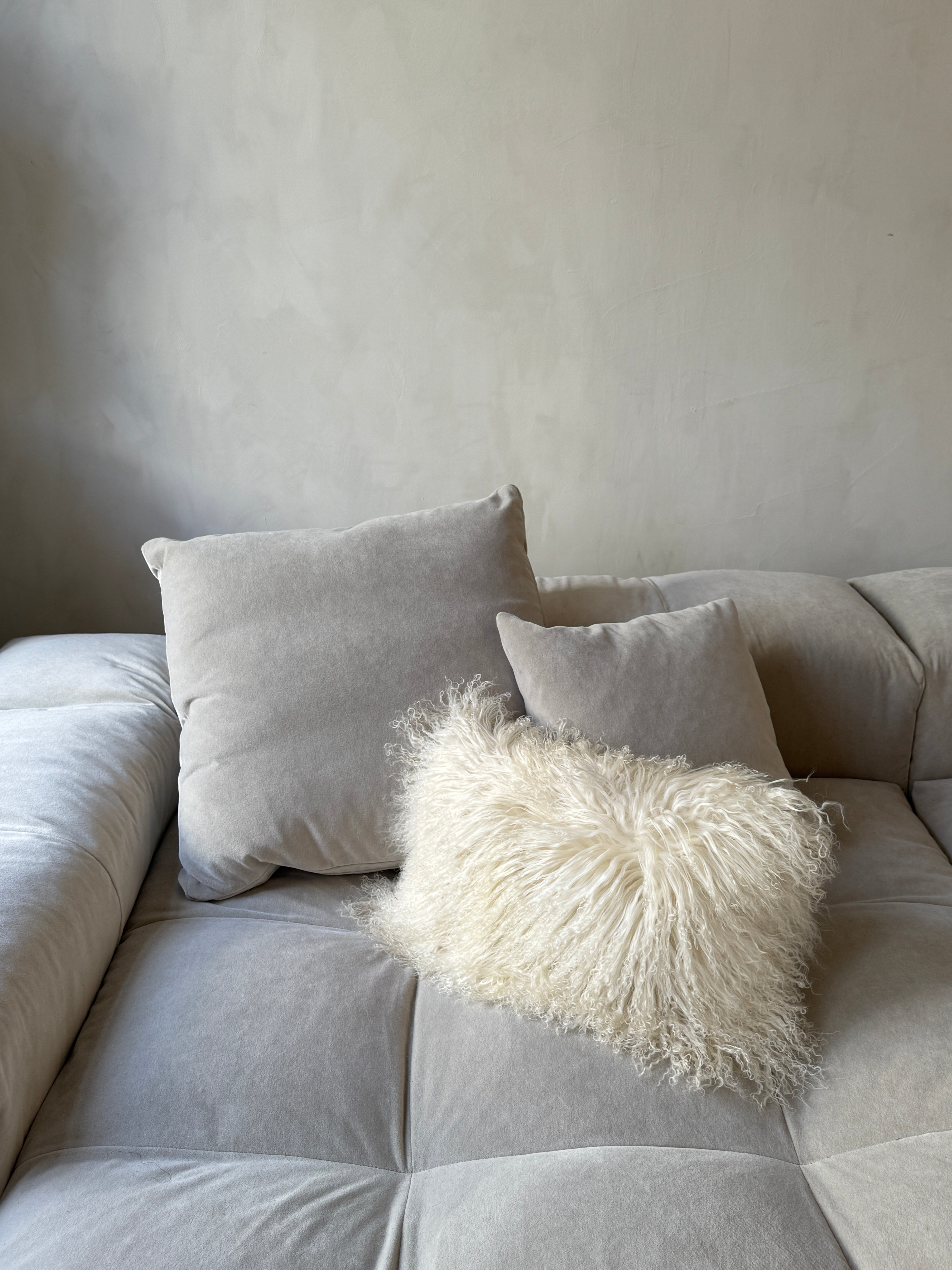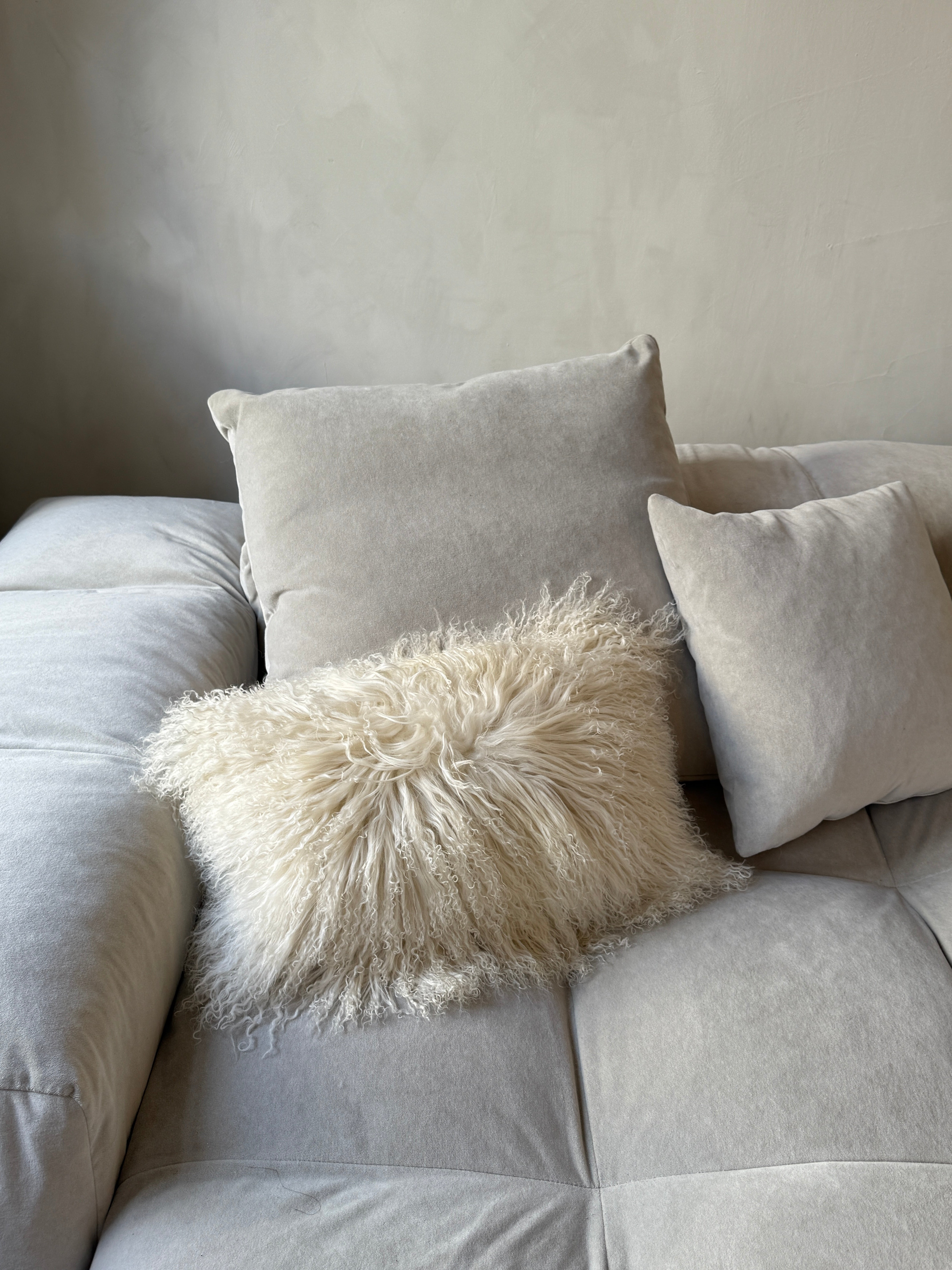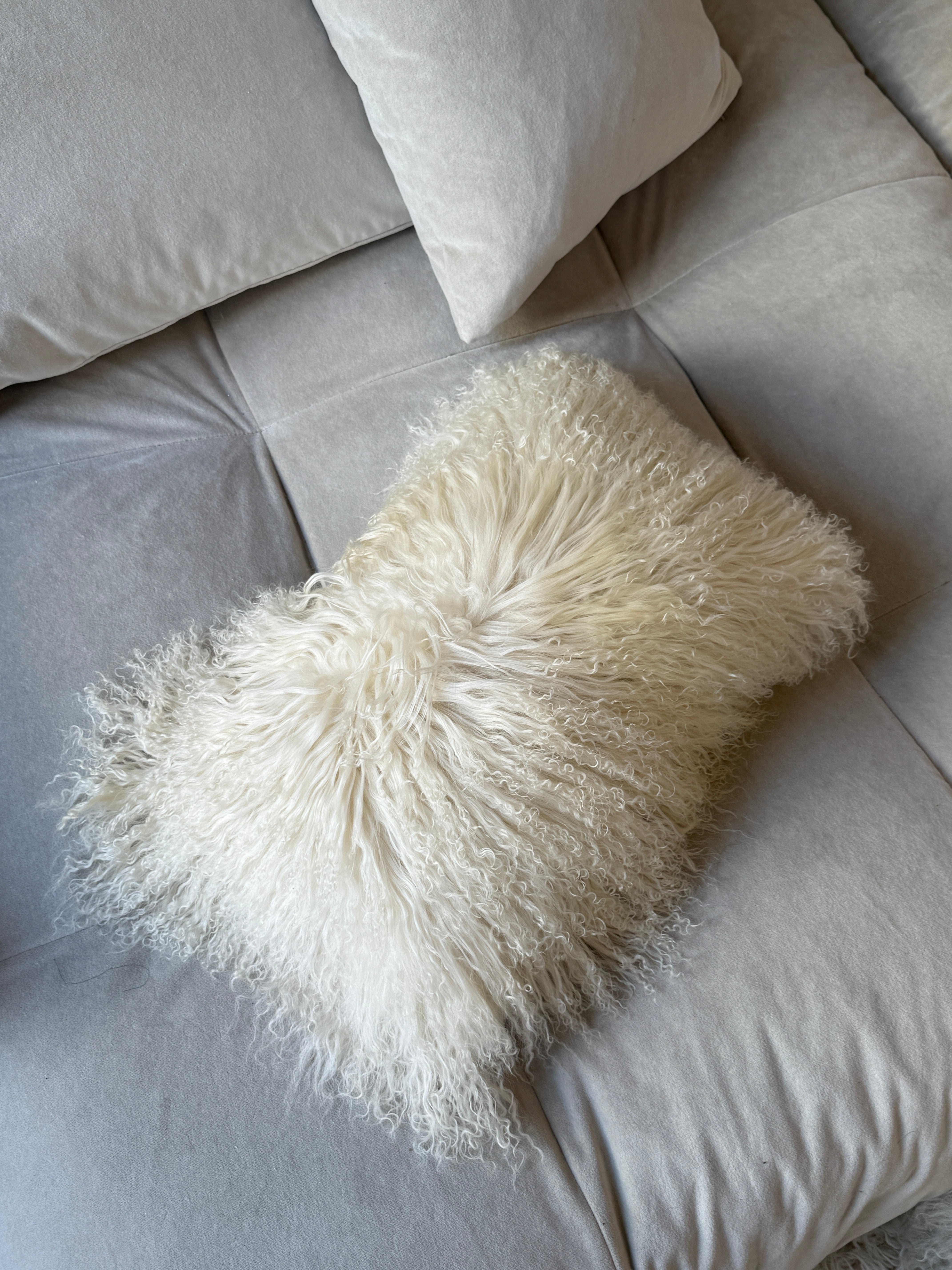 Nydelig off white saueskinn pute som er et dekorelement like mye som pute! Perfekt i sofaen i stuen men også like fin på soverommet eller sofaen på kjøkkenet. Kombiner den gjerne med flere puter i forskjellige størrelser og farger.