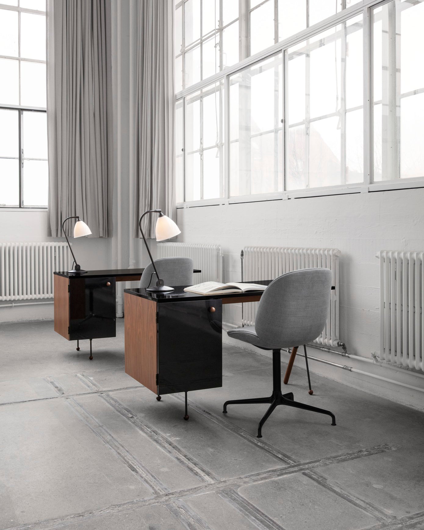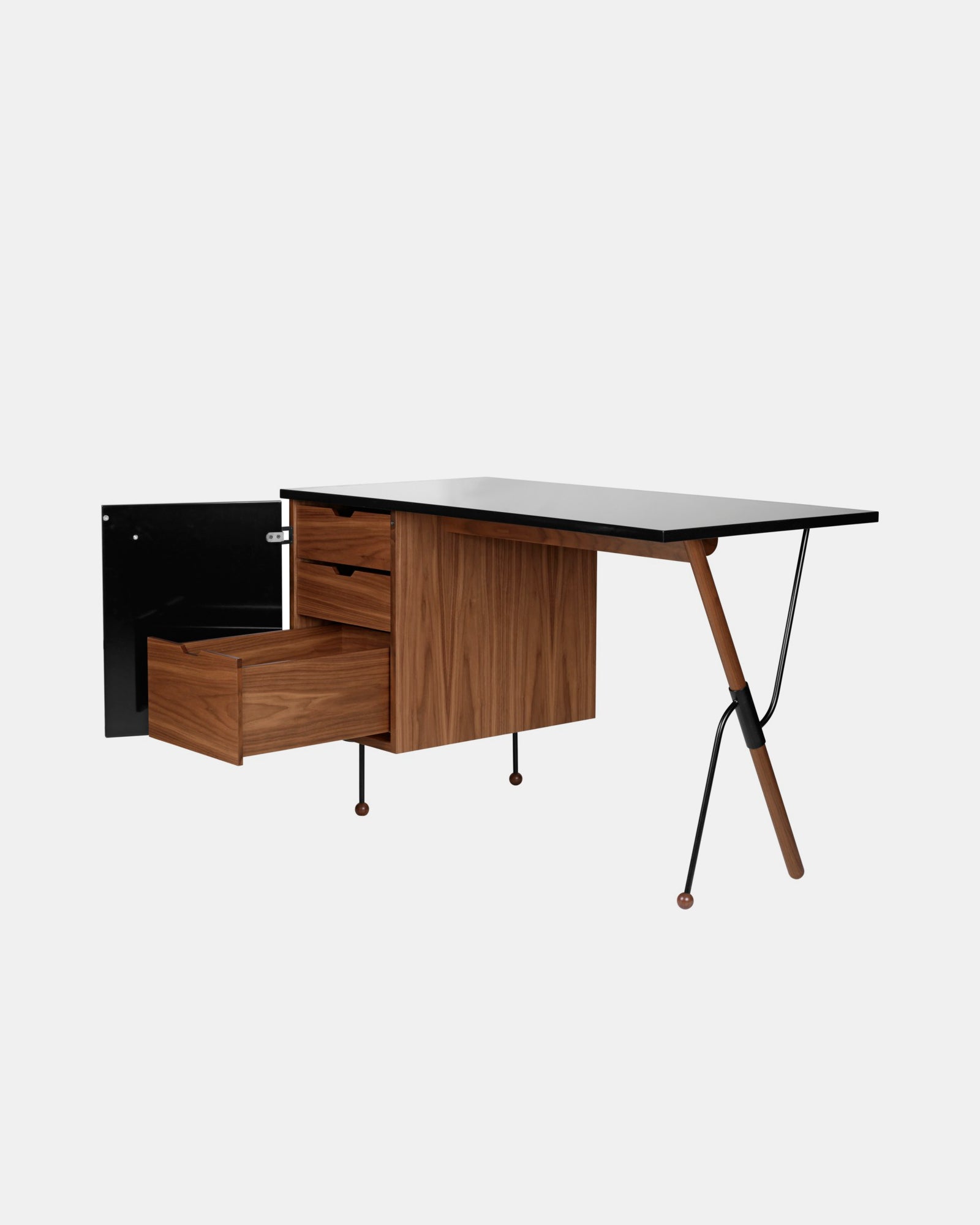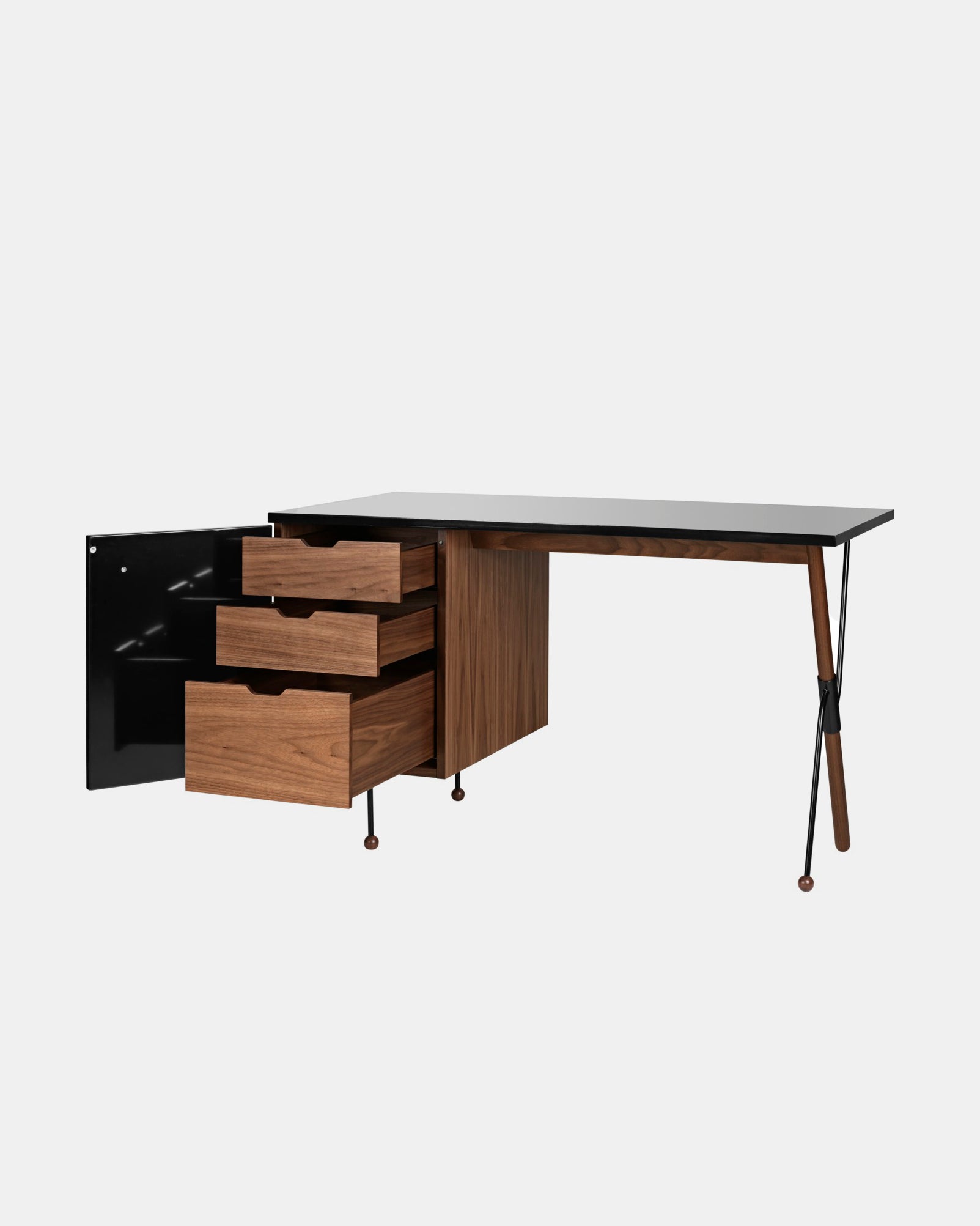 Denne skrivebord- og kommodeserien er laget av amerikansk valnøttfinér kombinert med høyglanset svart laminat på skap og topp. “62-serien” består av: Skrivebord, Kommode 3, Kommode 4 og Kommode 6.