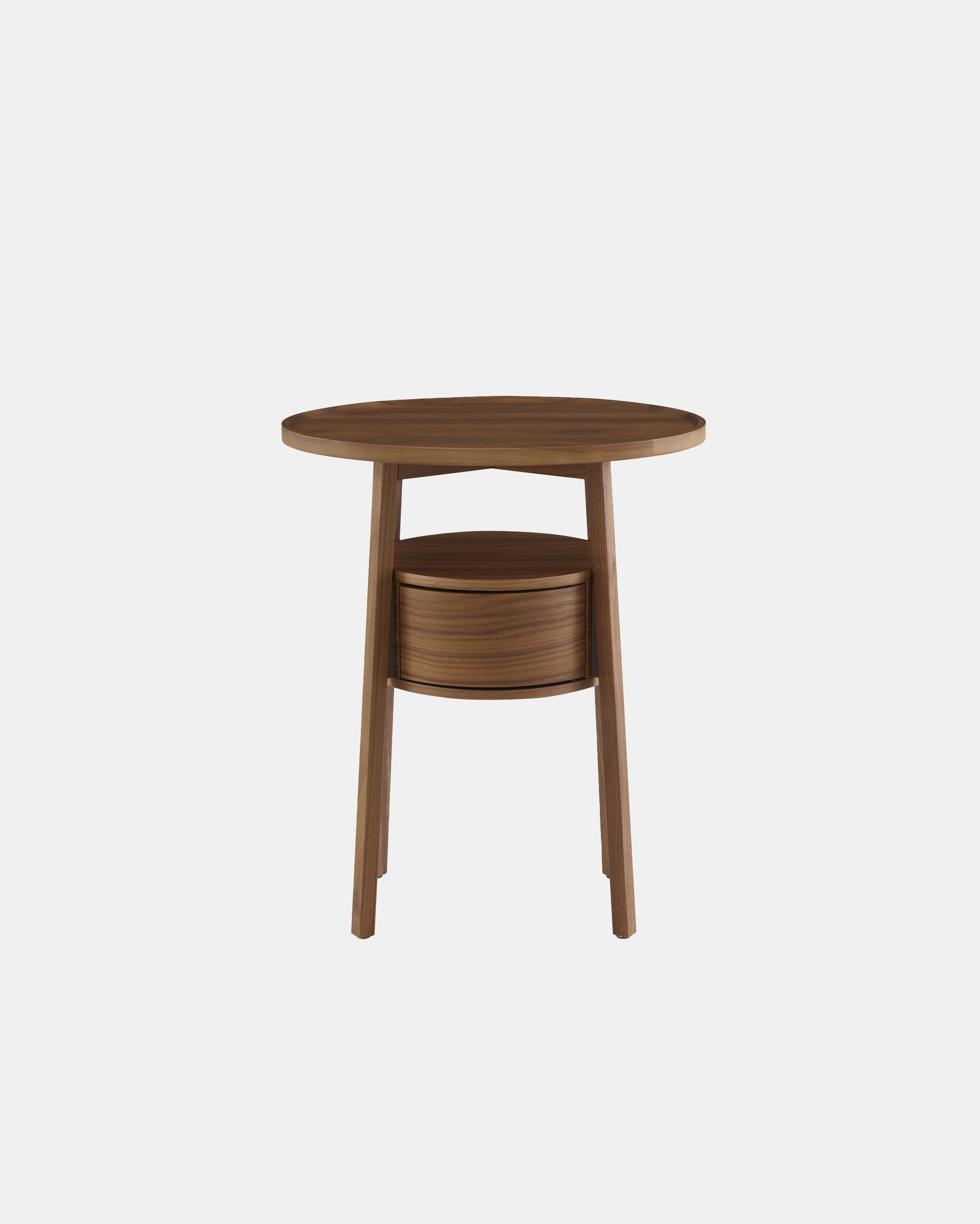 Epsiode er et ovalt nattbord i valnøtt av ekte håndverk, med mulighet for å plassere gjenstander på en rekke forskjellige nivåer 3-plans nattbord med struktur, topp og understell i naturlakkert massiv amerikansk valnøtt. Kanten på brystet er i valnøttfinert flerlags; interiør og tverrstykker er i blygrå lakk.