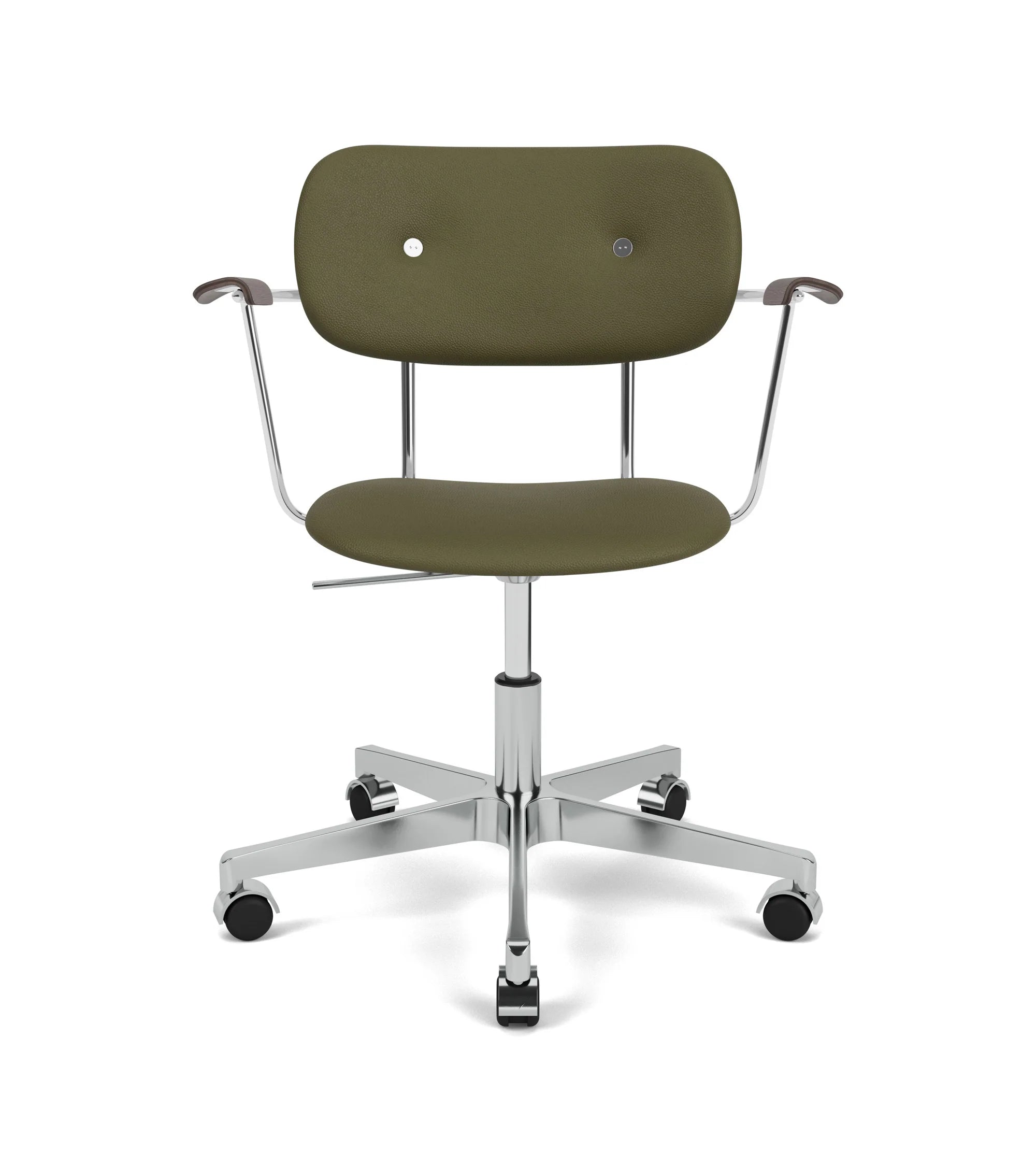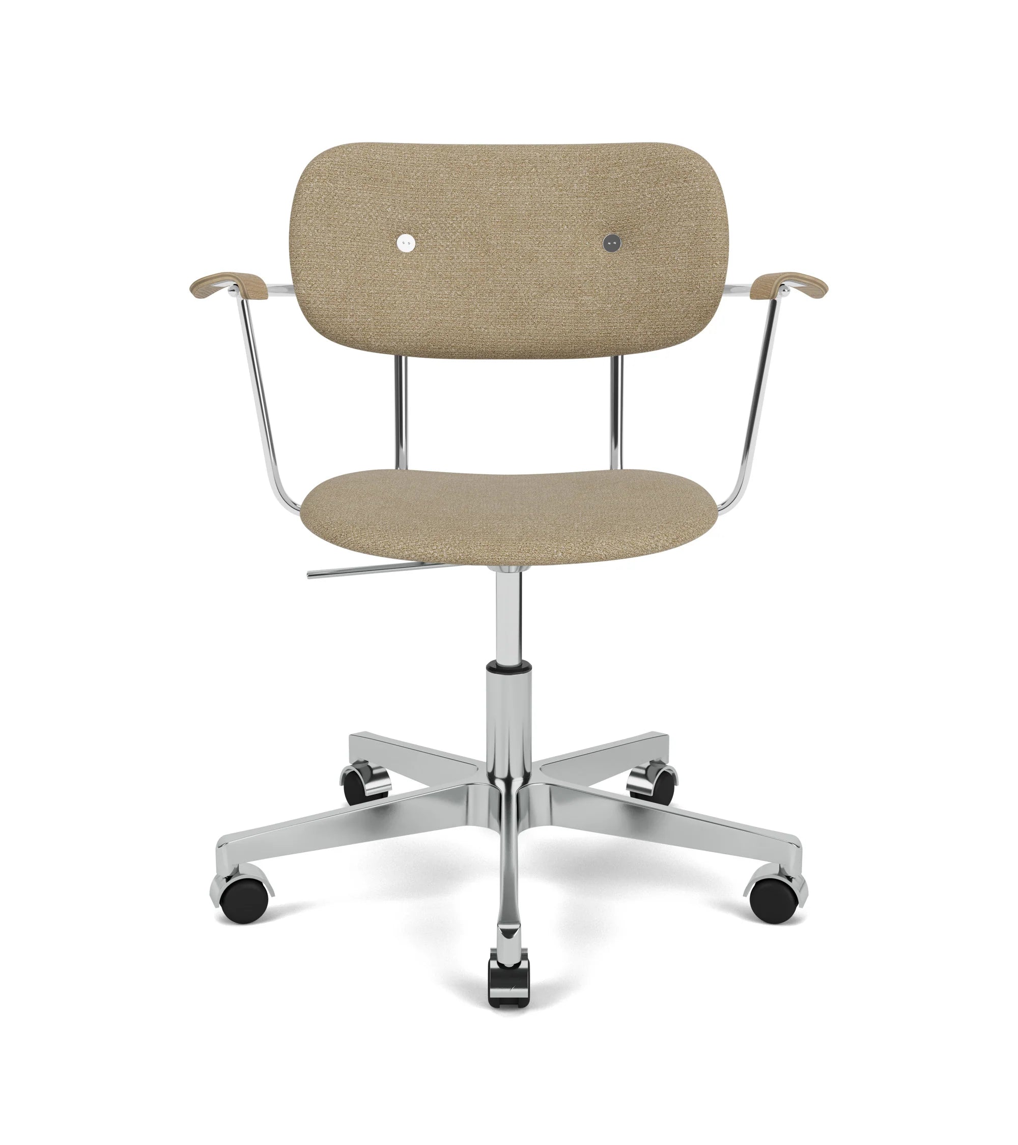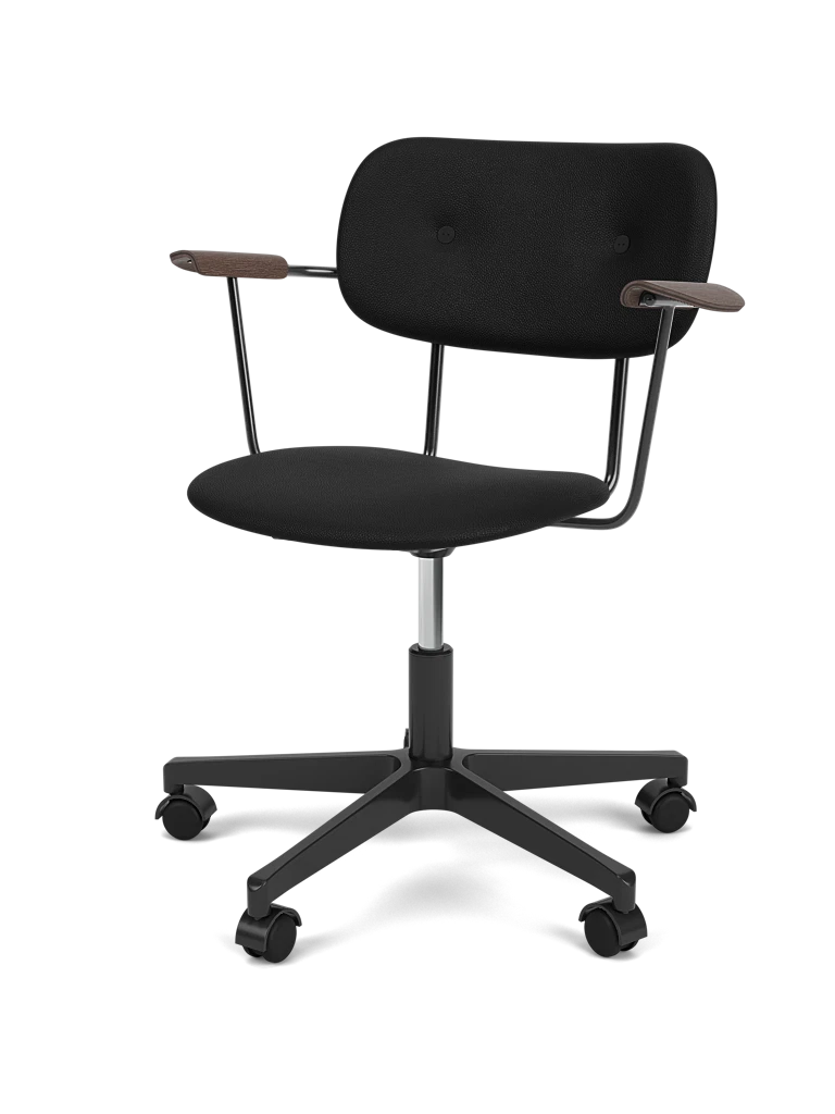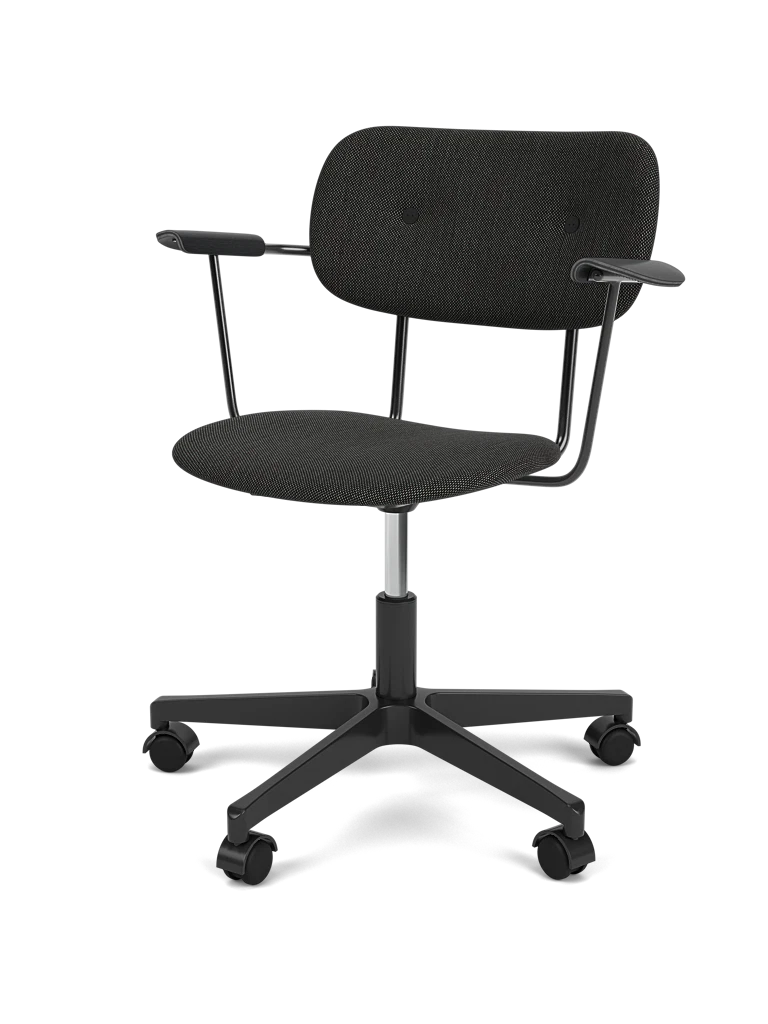 Co Task stol integrerer sømløst sittekomfort og fleksibel funksjon i sitt minimalistiske uttrykk. Designet for et bredt spekter av arbeidsinnstillinger og satt på en femstjerners svingbar base i sort eller aluminium med hjul, en høydejusterbar funksjon sikrer tilpasning til arbeidsområder og brukerpreferanser, og fremmer ergonomisk komfort for brukere av forskjellige høyder. Sammen med støttende armlener øker en fleksibel tilt-funksjon i sete og rygg komforten, og muliggjør justering til ønsket sittestilling for optimal støtte under lengre bruksperioder.