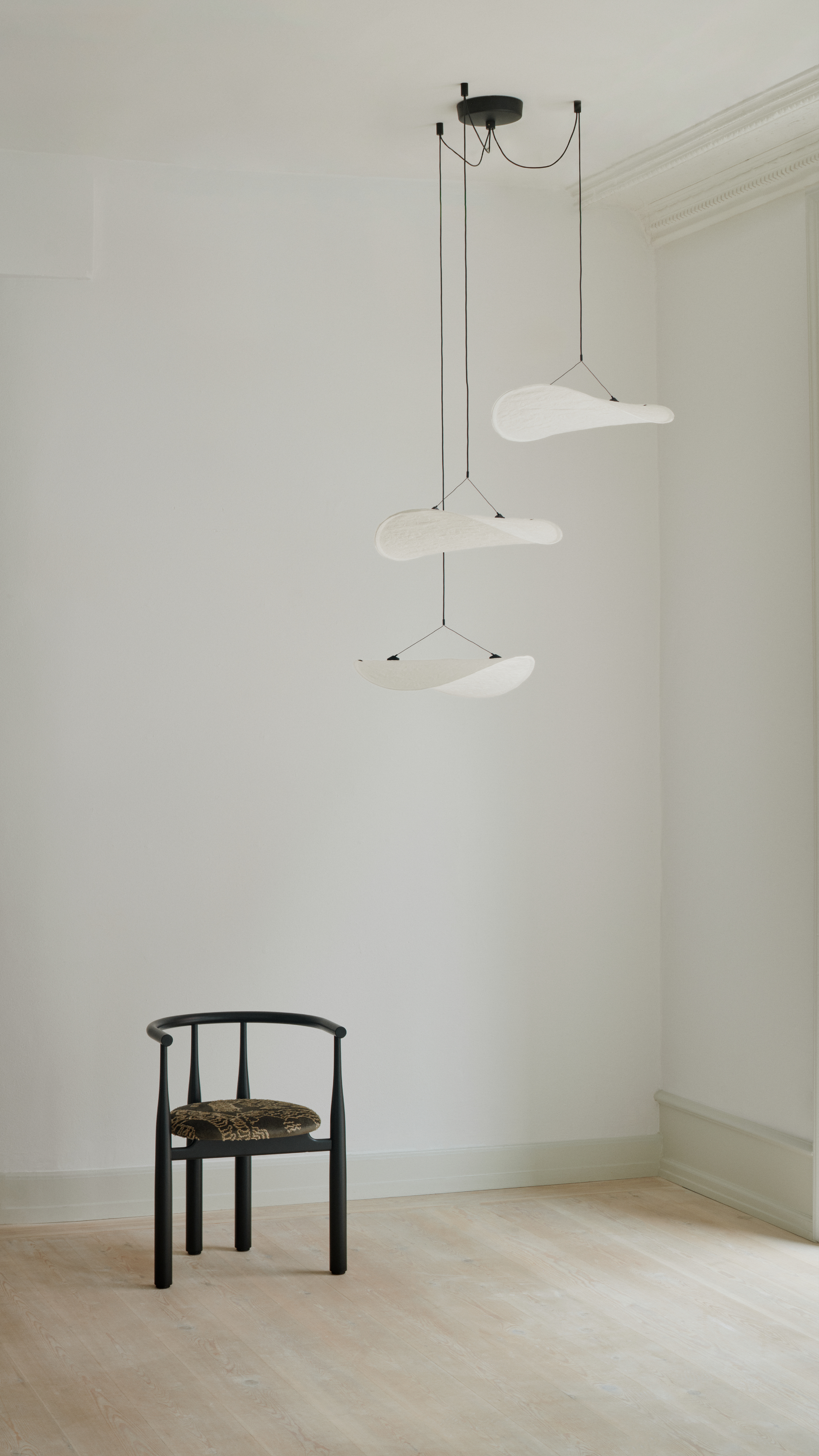 I en formasjon bestående av tre mindre nyanser, hver med en ø55 cm diameter, skaper Tense Chandelier et sofistikert alternativ til den klassiske lysekronen.