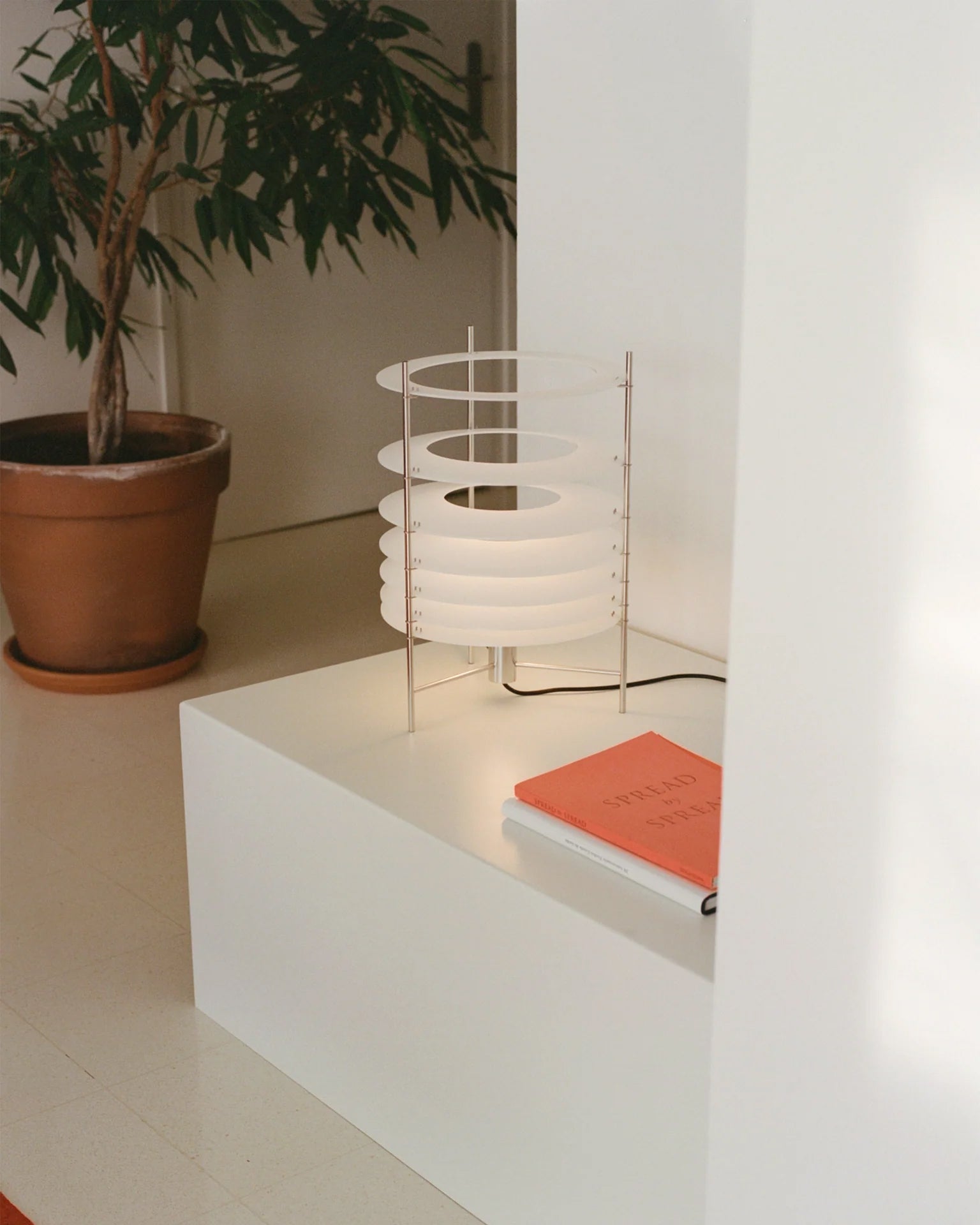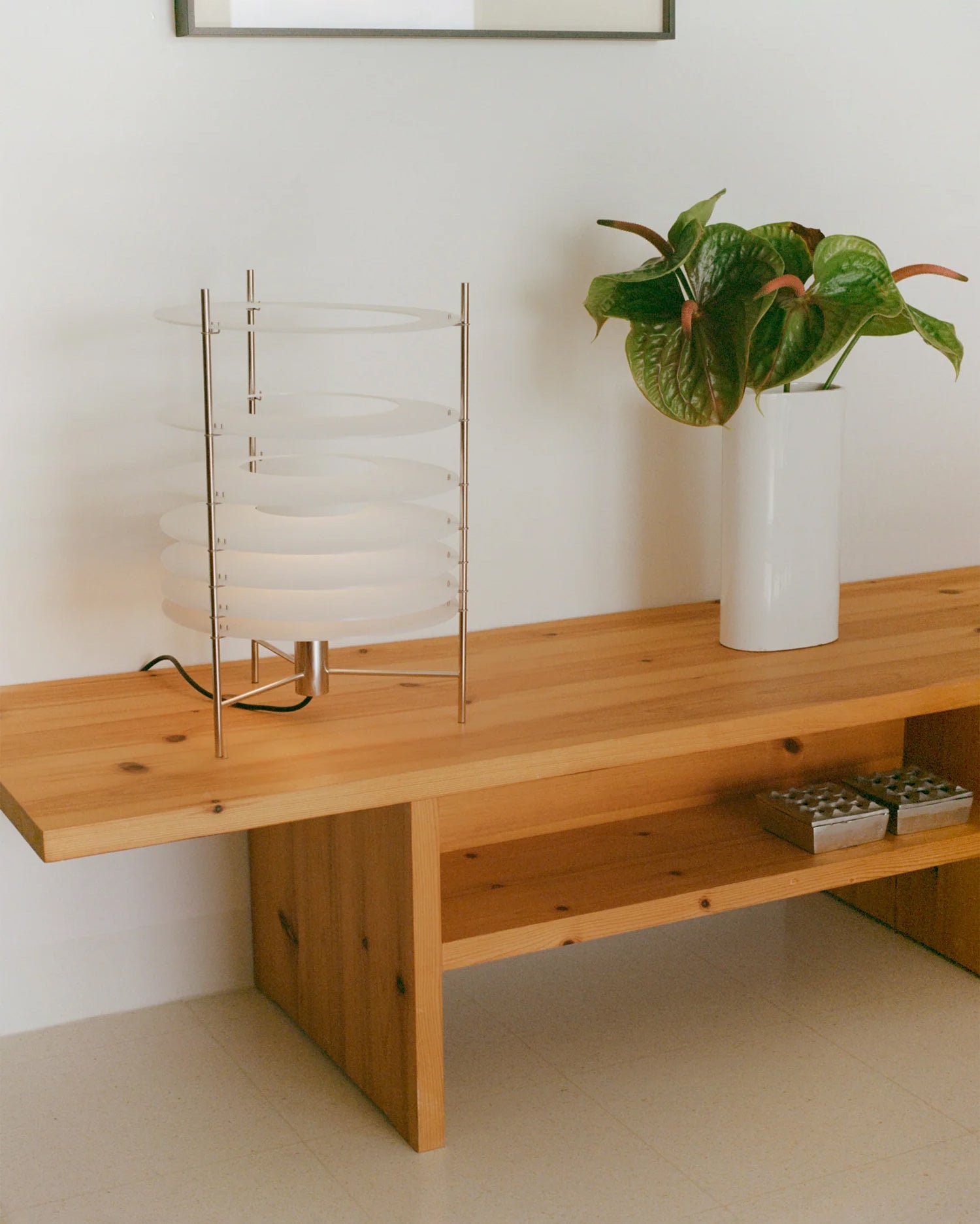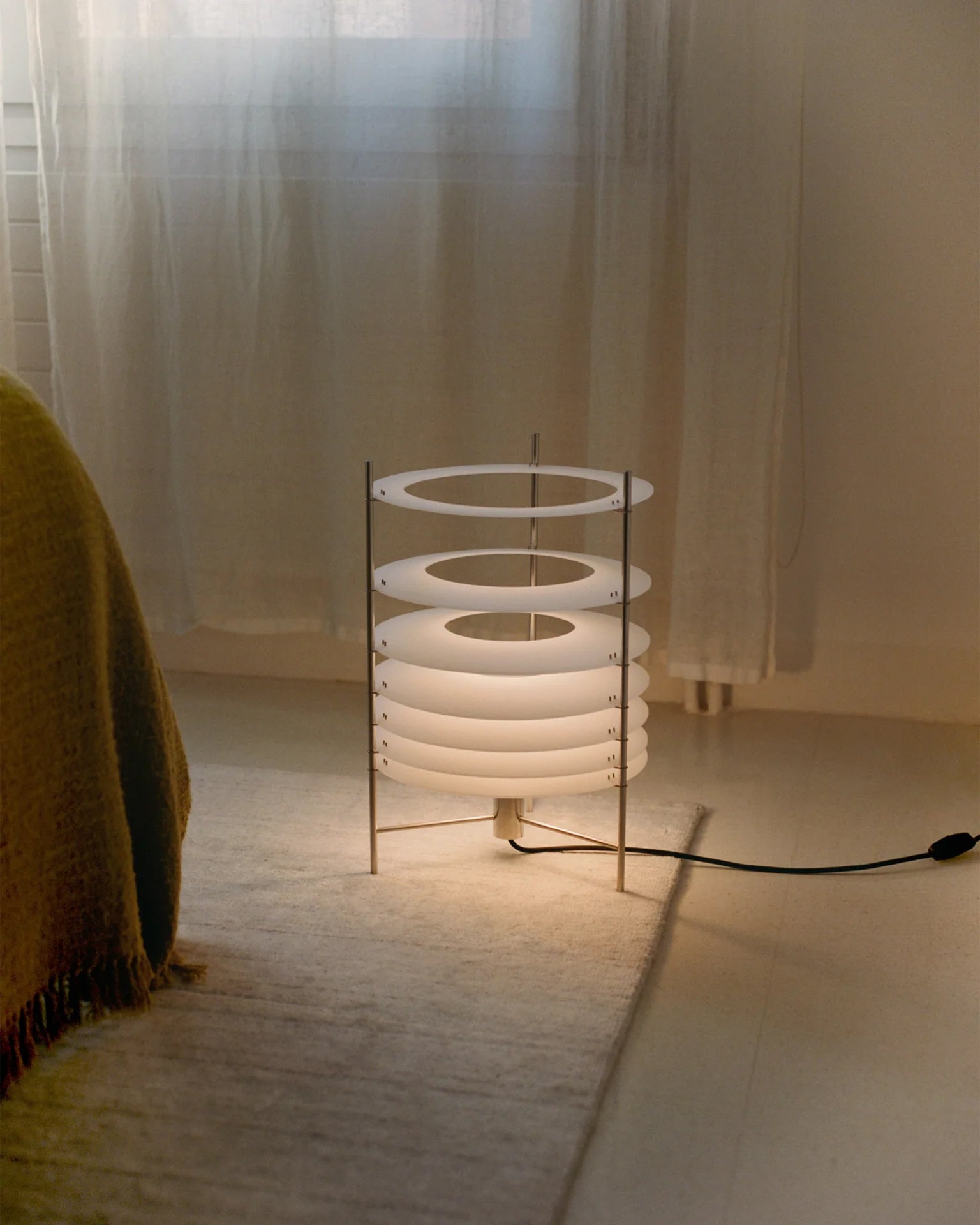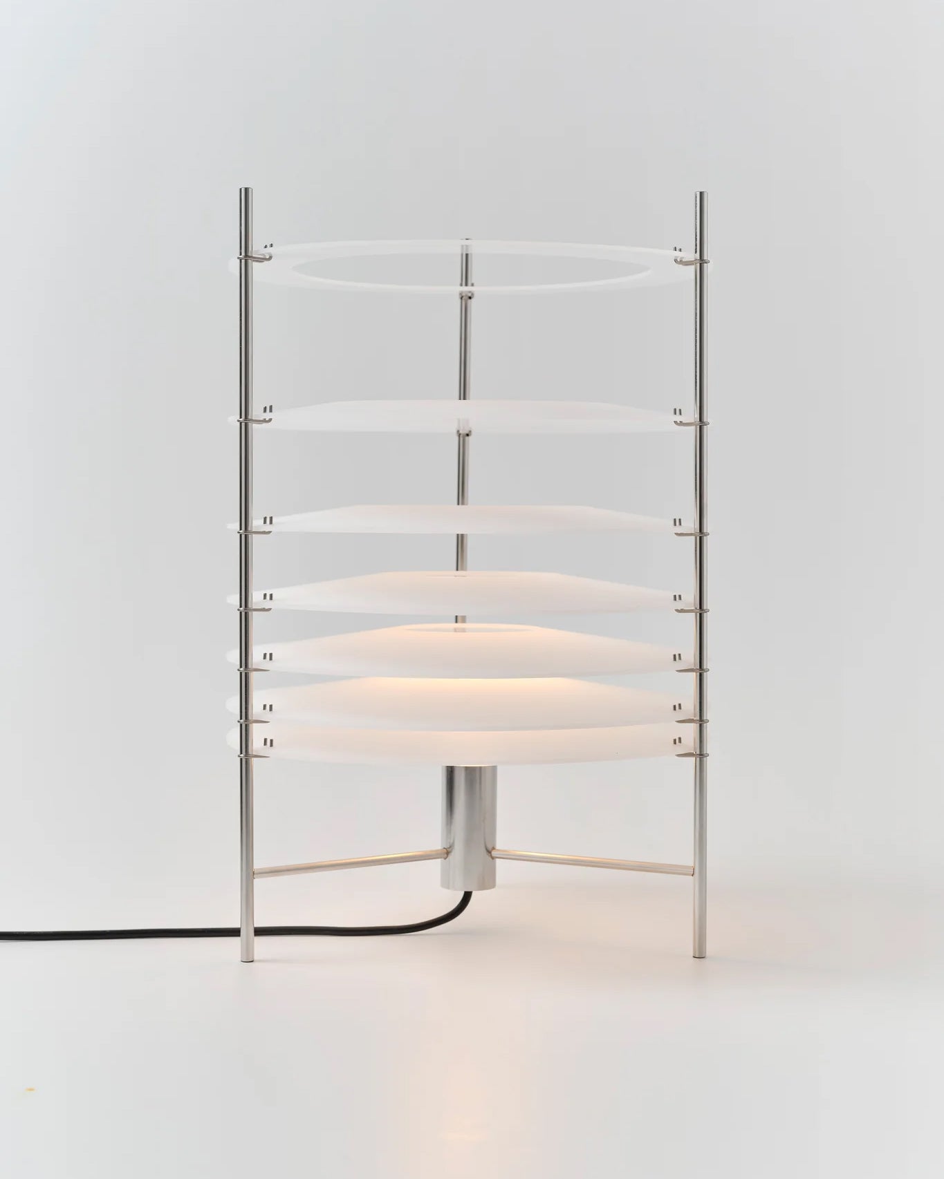 Topuro S er en bordlampe som utforsker ideen om lysets dematerialisering – hvordan det beveger seg gjennom rommet og gradvis mister intensiteten. Lampen kombinerer en elegant struktur i elektropolert rustfritt stål med formstøpte, matte akryldiffusere som gir et mykt og stemningsfullt lys.