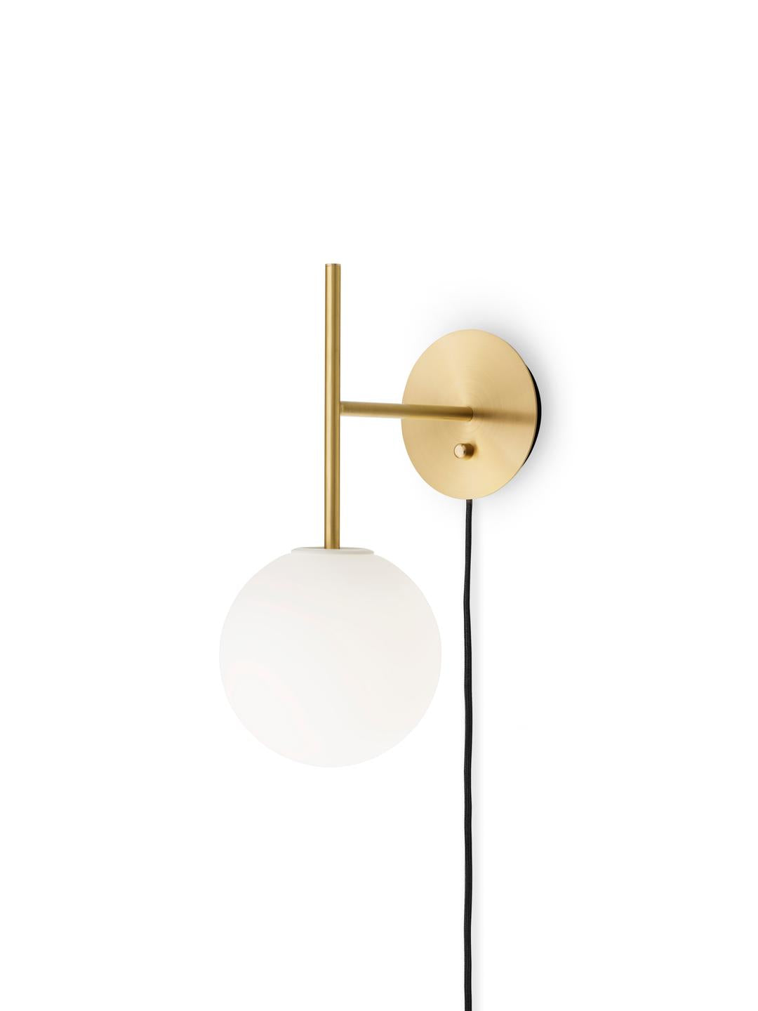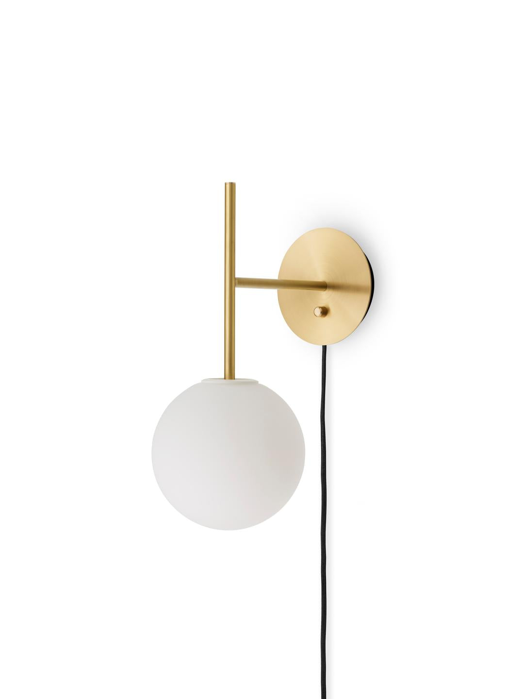 Tim Rundles sin TR-serie for Audo er basert på den moderne, nomadiske livsstilen, som beveger seg mellom byer og land i jakten på eventyr. Enkelt design men likevel sofistikert i uttrykket! TR Bulb vegglampe består av den er den omreisende TR-pæren i opalt glass, hengt opp fra en børstet messingarm i et møte av rette linjer og runde former. Den dimmebare LED-pæren avgir en jevn, blendingsfri glød og styres via en skive på den veggmonterte bakplaten. Lampen utstyrt med en ledning, kan lampen også kobles dersom man ønsker det.