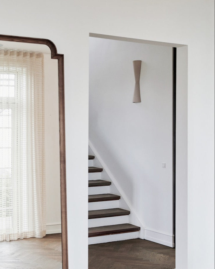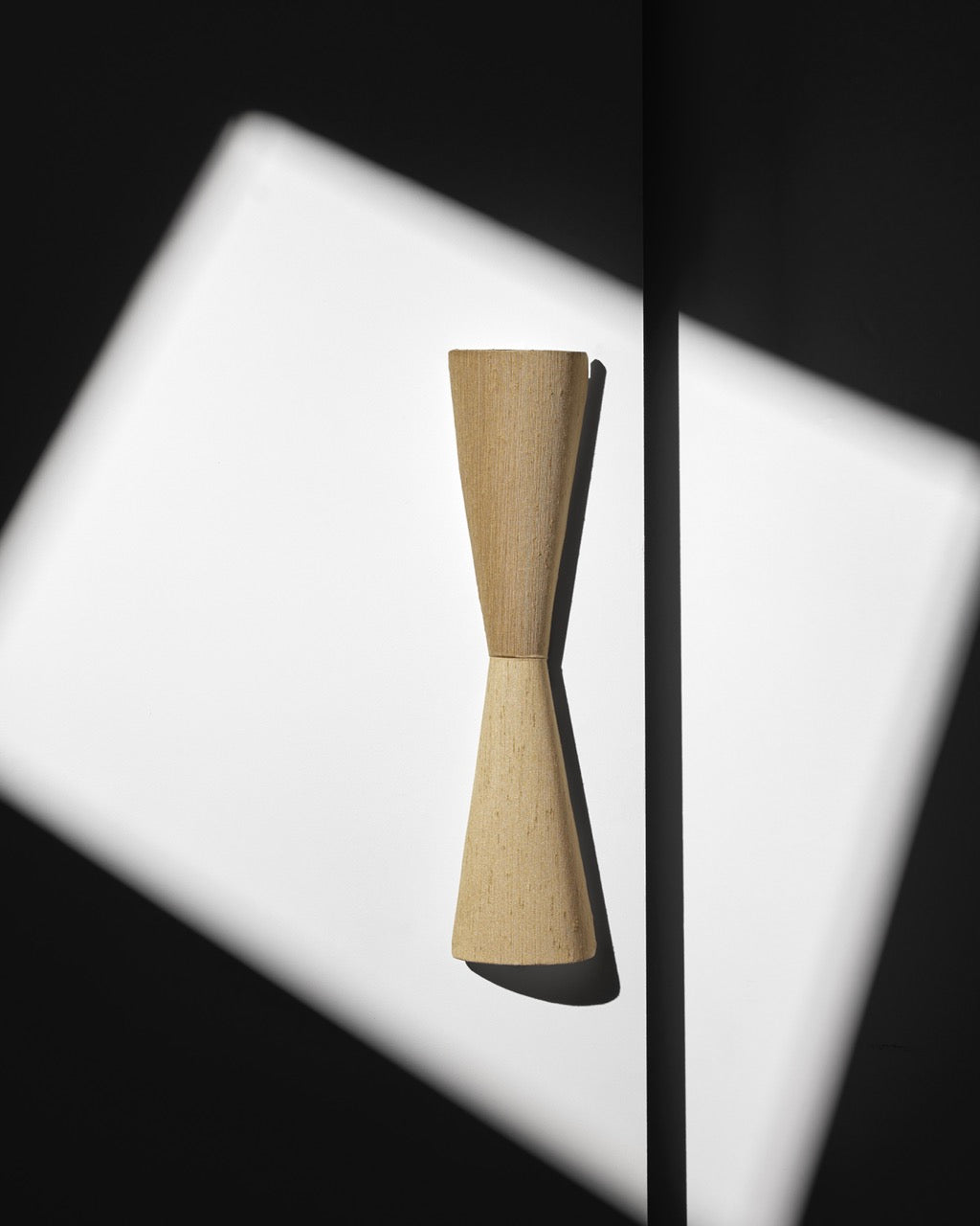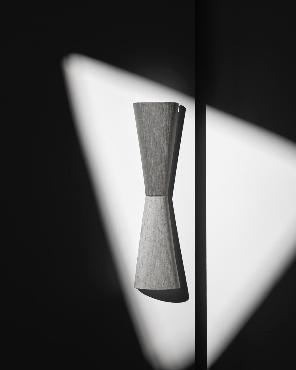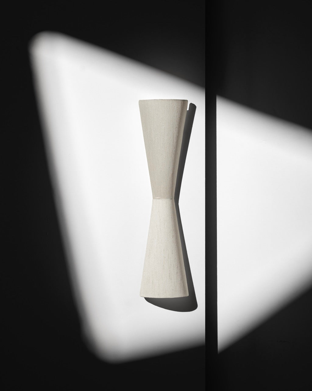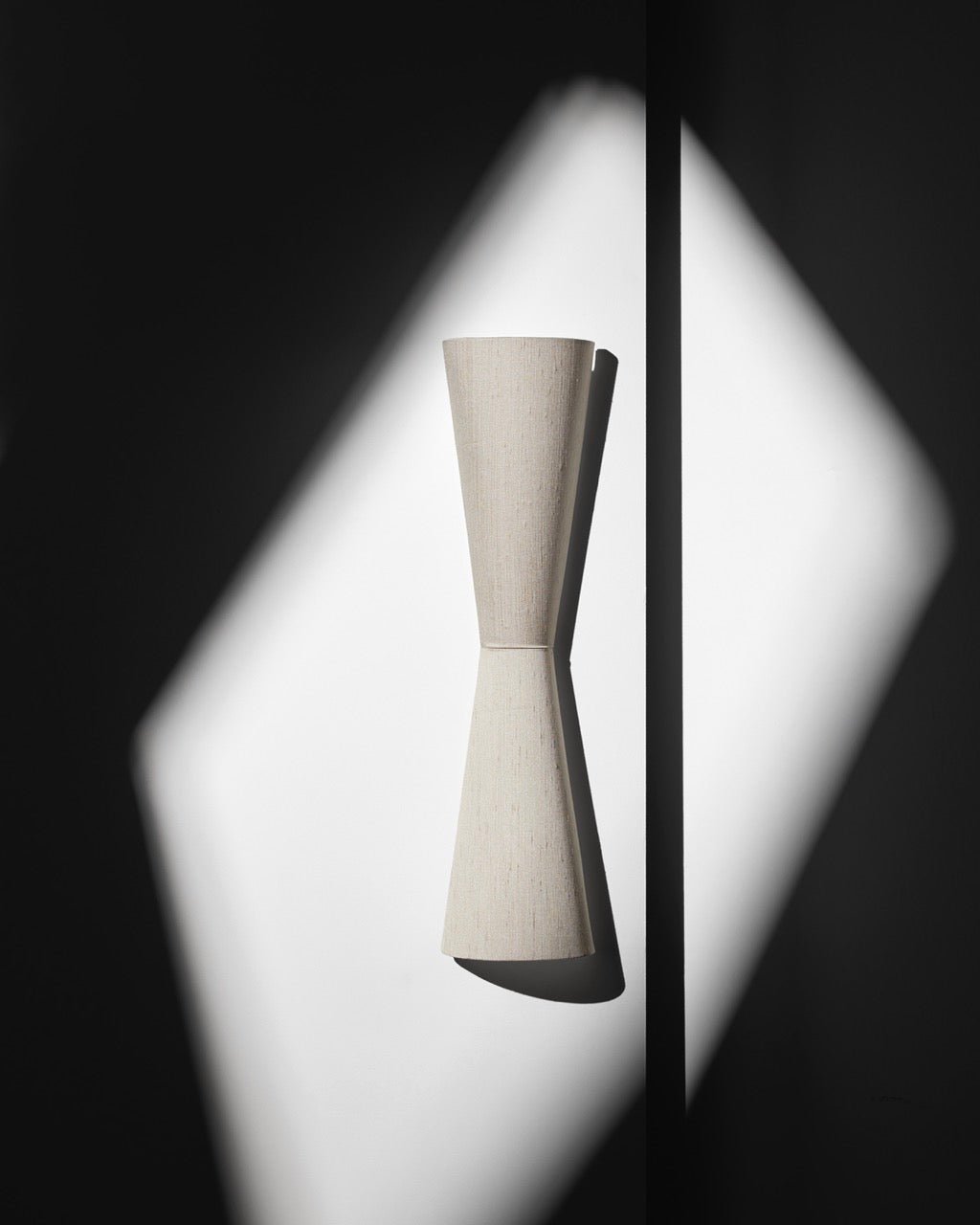En skulpturell og myk vegglampe trukket i delikat silketekstil. Soft Shade gir et behagelig og diffust lys, samtidig som den fungerer som en estetisk form på veggen – nesten som et tekstilt kunstobjekt. Den slanke, timeglassformede silhuetten gir et subtilt, men karaktersterkt uttrykk som passer i både private hjem og offentlige rom.