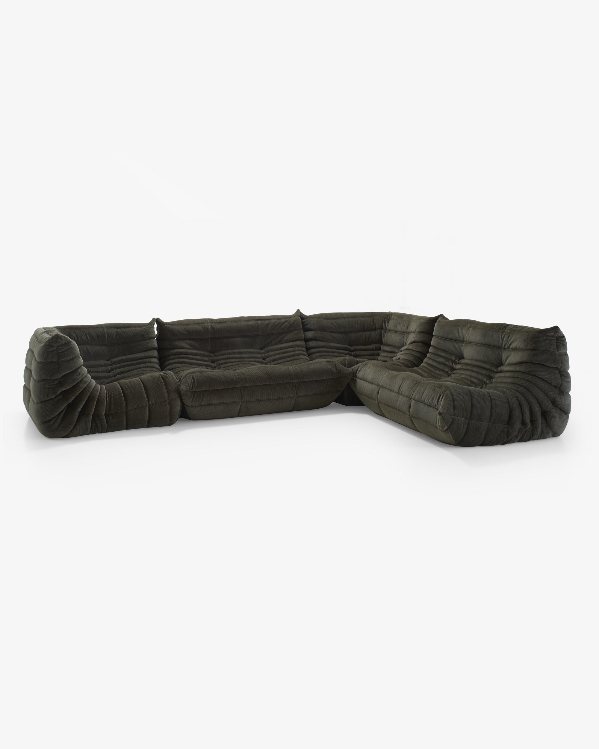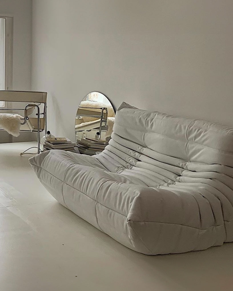 Togo, designet av Michel Ducaroy for Ligne Roset i 1973, har i over førti år vært et ikon innen komfort, stil og tidløst design. Denne klassikeren er like populær i dag som den var da den først ble lansert, og har blitt et symbol på ekte sitteglede og estetikk. Med sin ergonomiske utforming og konstruksjon av flere tettheter polyeter-skum, skaper Togo en helt unik sitteopplevelse som omfavner kroppen. De quiltede, polstrede trekkene gir møbelet et mykt, innbydende uttrykk, mens den solide skumkonstruksjonen sikrer varig komfort og støtte.