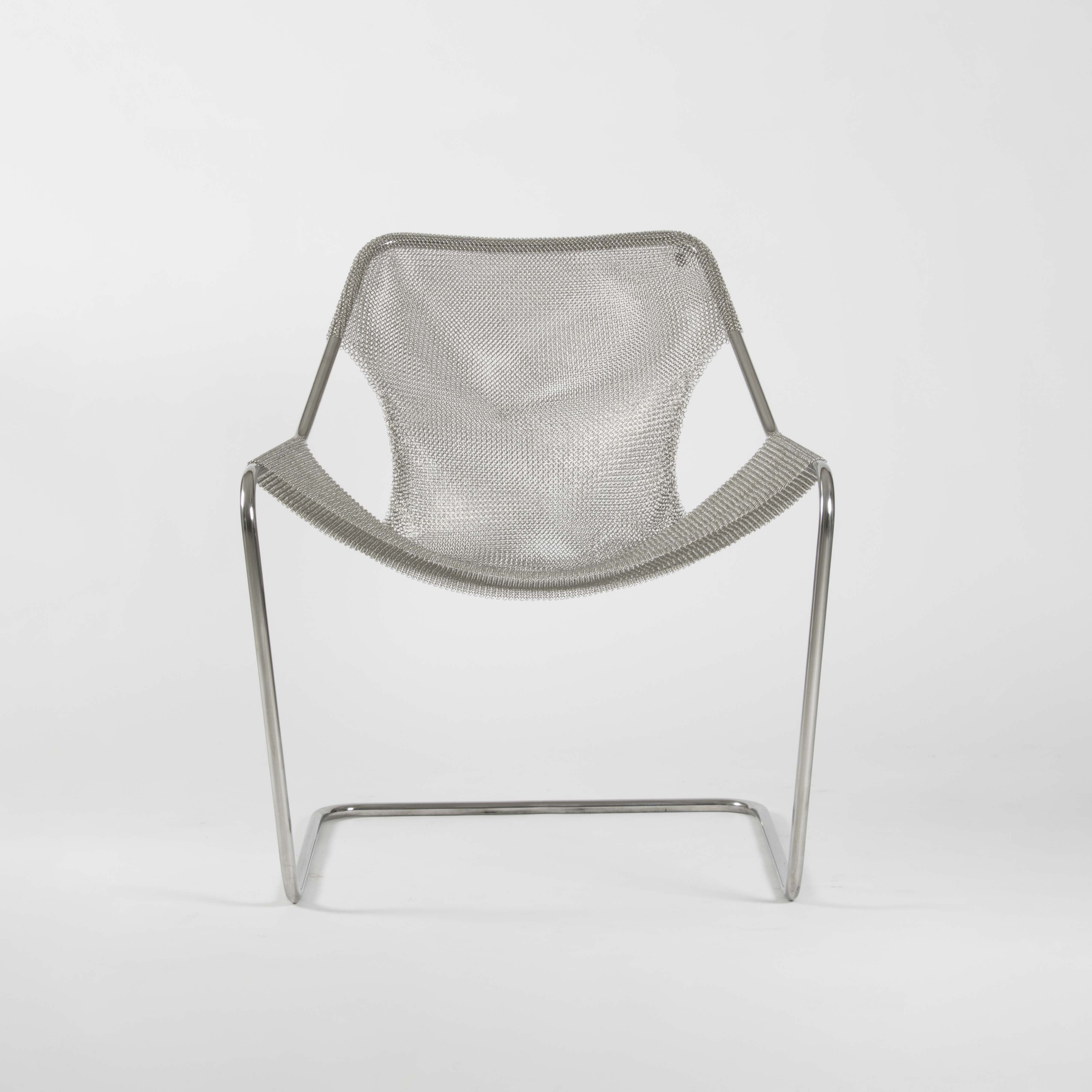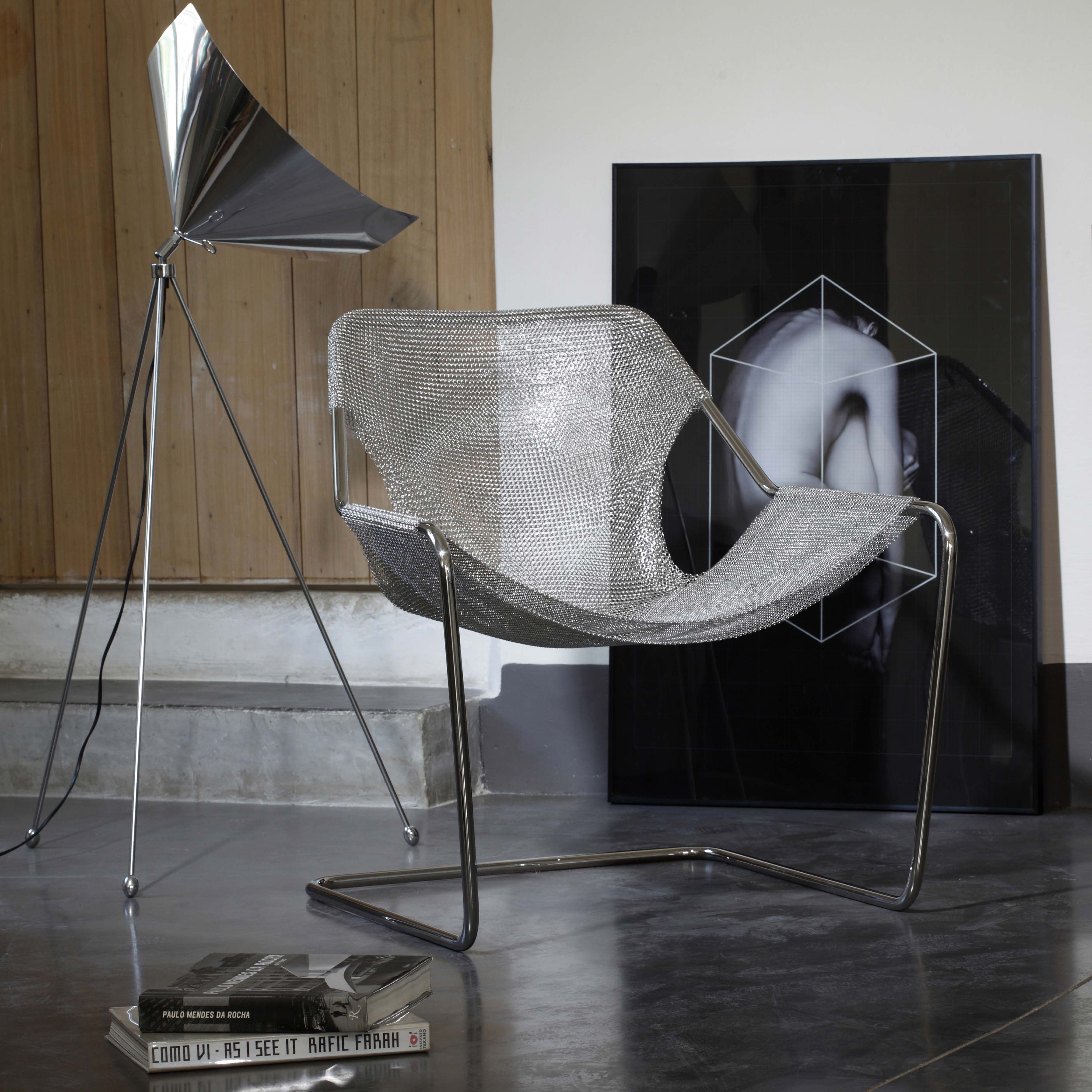Paulistano Mesh er en ikonisk loungestol designet av den brasilianske arkitekten Paulo Mendes da Rocha i 1957. Denne utgaven i 100 % rustfritt stål kombinerer elegansen fra originalen med et industrielt uttrykk, der metallnettingen erstatter den tradisjonelle skinn- eller tekstiltrekken. Resultatet er en stol med imponerende visuell letthet og høy komfort.
