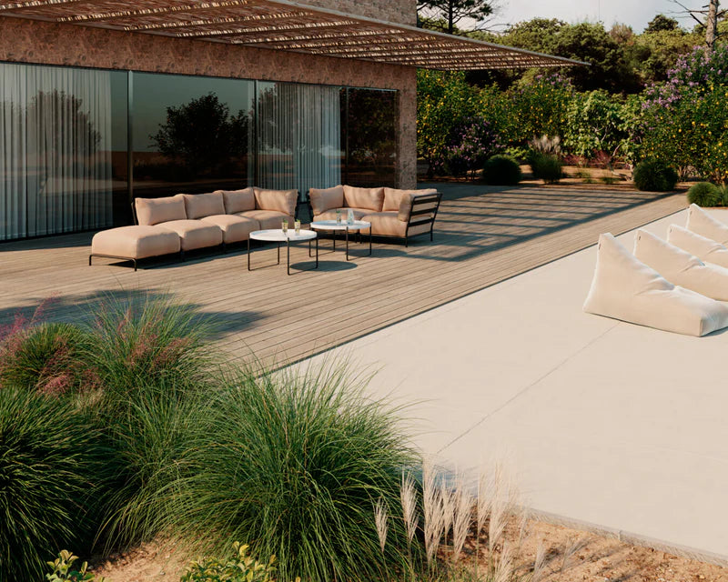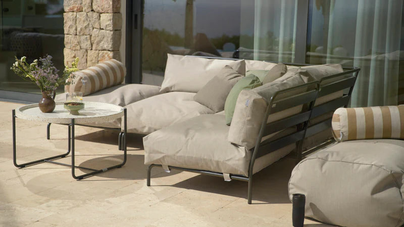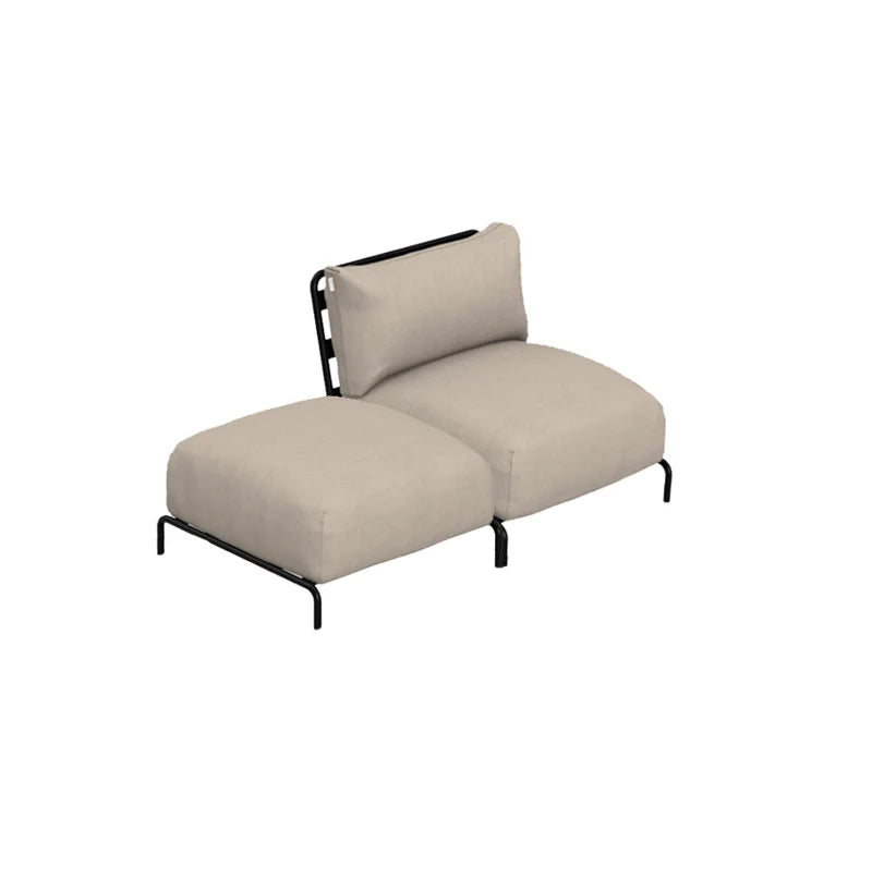 Denne er en del av en modulsofa som tilbyr fleksibilitet, slik at du kan bruke en enkelt modul som en loungestol eller koble sammen flere moduler for å lage en tilpasset sofa som passer perfekt til uterommet ditt. Modulene kobles enkelt sammen med de medfølgende clip-on-holderne.