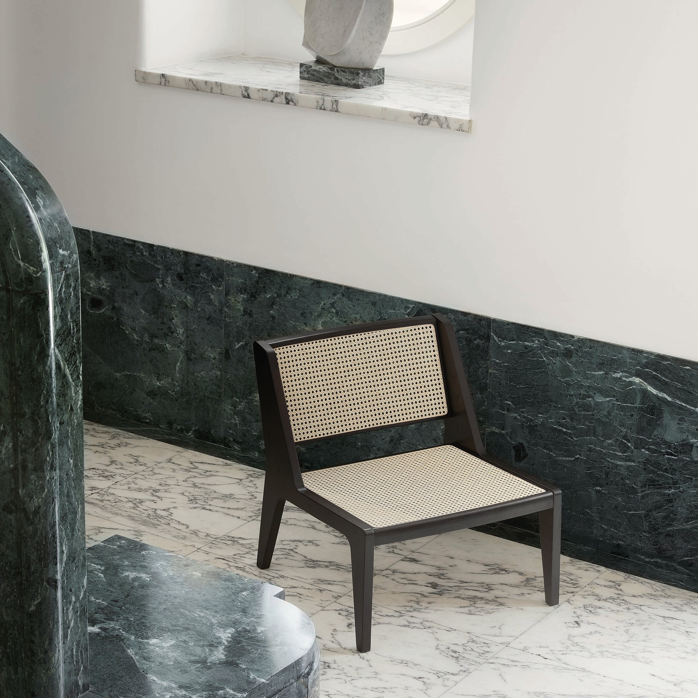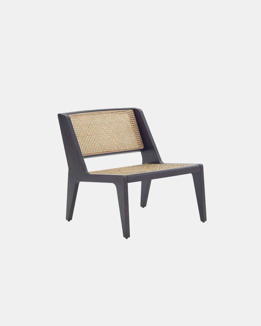 Delta Vienna loungestol utmerker seg ved de trekantede, nesten vingelignende bena og ryggsidene. Denne karakteristiske silhuetten, laget av massivt tre, står i kontrast til setet og ryggstøtten i "Paglia di Vienna"-rotting..