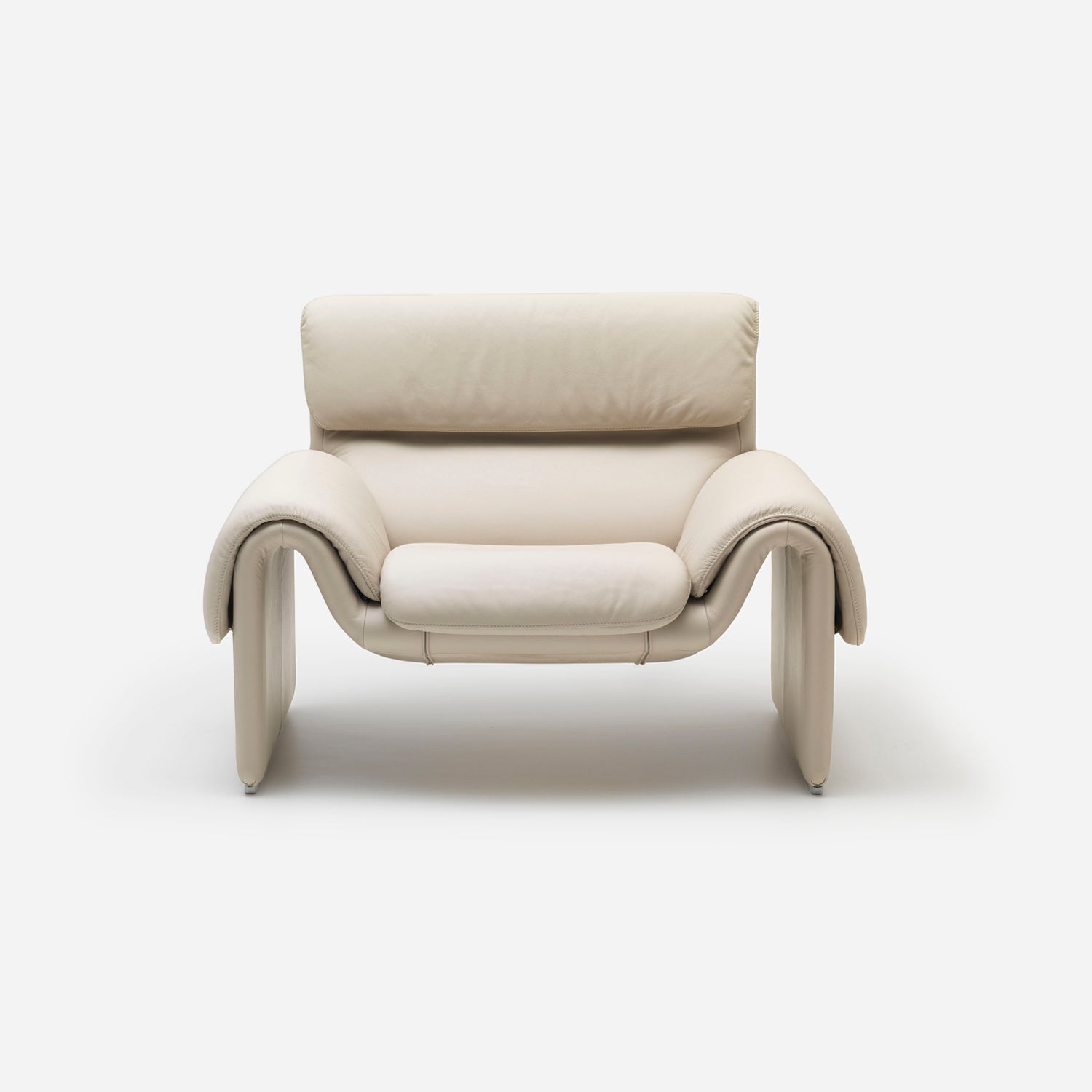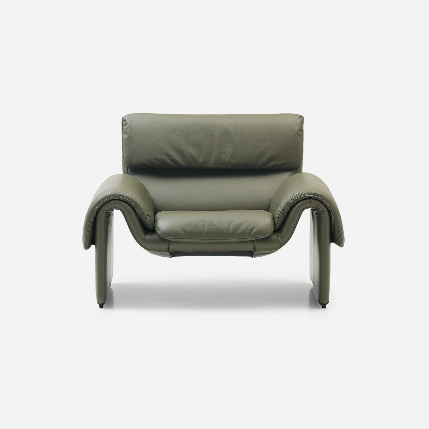 DS-2011 lenestolen, utviklet av de Sedes eget designteam, kombinerer tidløs eleganse med enestående komfort. Designet er stramt og harmonisk med myke, flytende linjer som gir stolen et rolig og balansert uttrykk. Den slanke stålkonstruksjonen løfter de generøse putene, mens synlige sømmer fremhever det håndverksmessige uttrykket.
