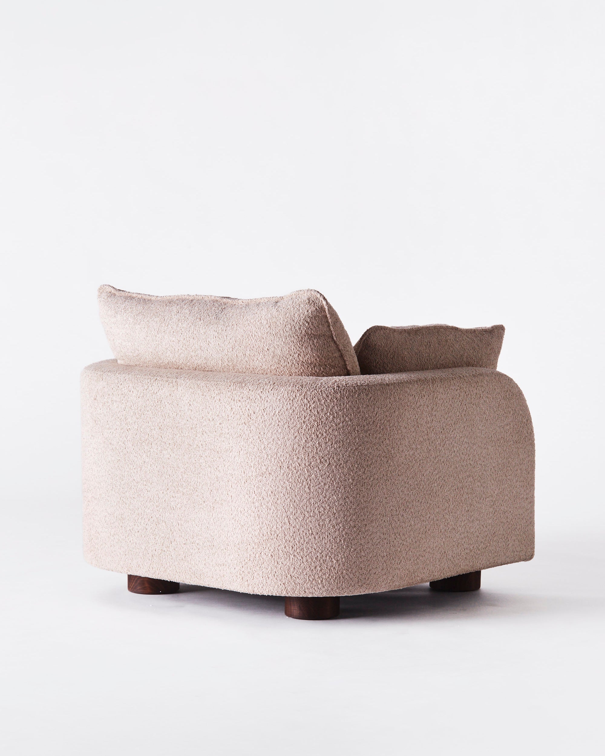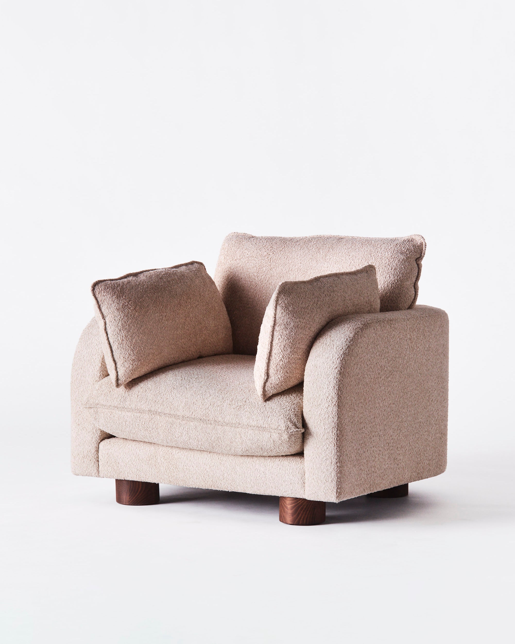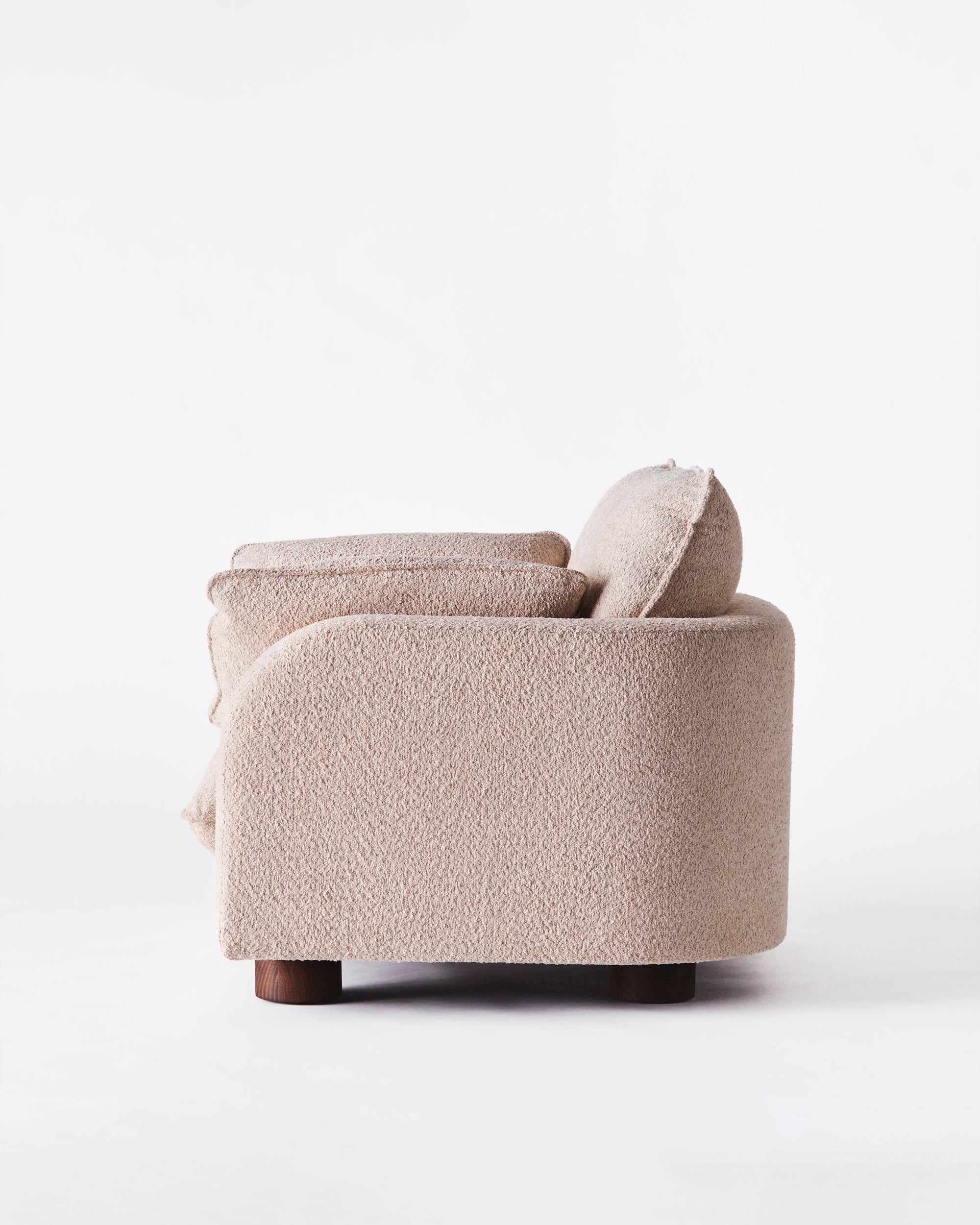 Miles er en serie møbler designet av MER Arkitekter, et Stockholm-basert arkitektfirma. Miles Armchair Boucle er en lenestol preget av sine store puter, avrundede hjørner og sylindriske føtter. Rammen er laget av solid gran og kryssfiner mens polstringen består av dun, silikonkuler og skum. I denne versjonen er lenestolen trukket i et bouclestoff fra James Malone. Fås også i Zebra tekstil.