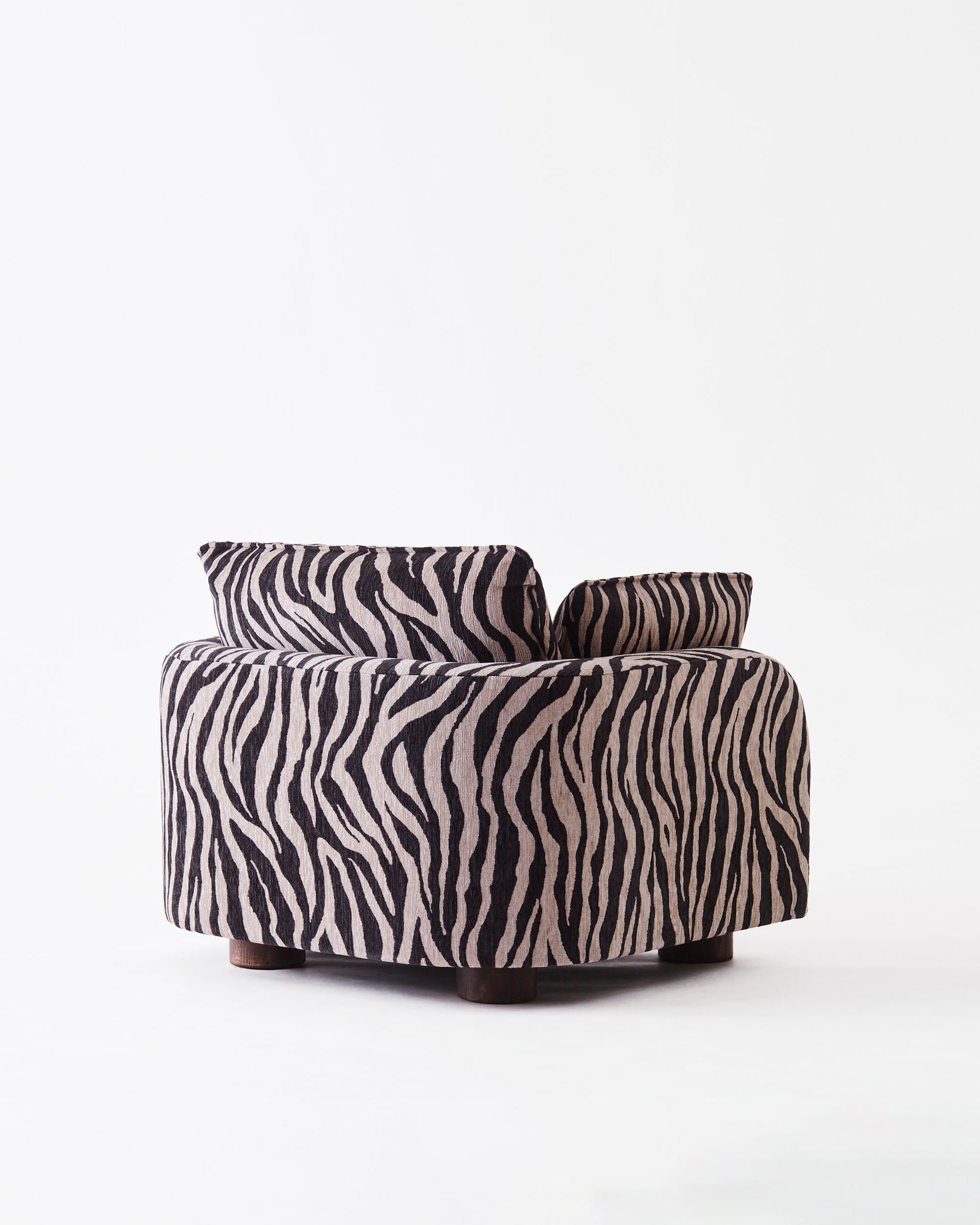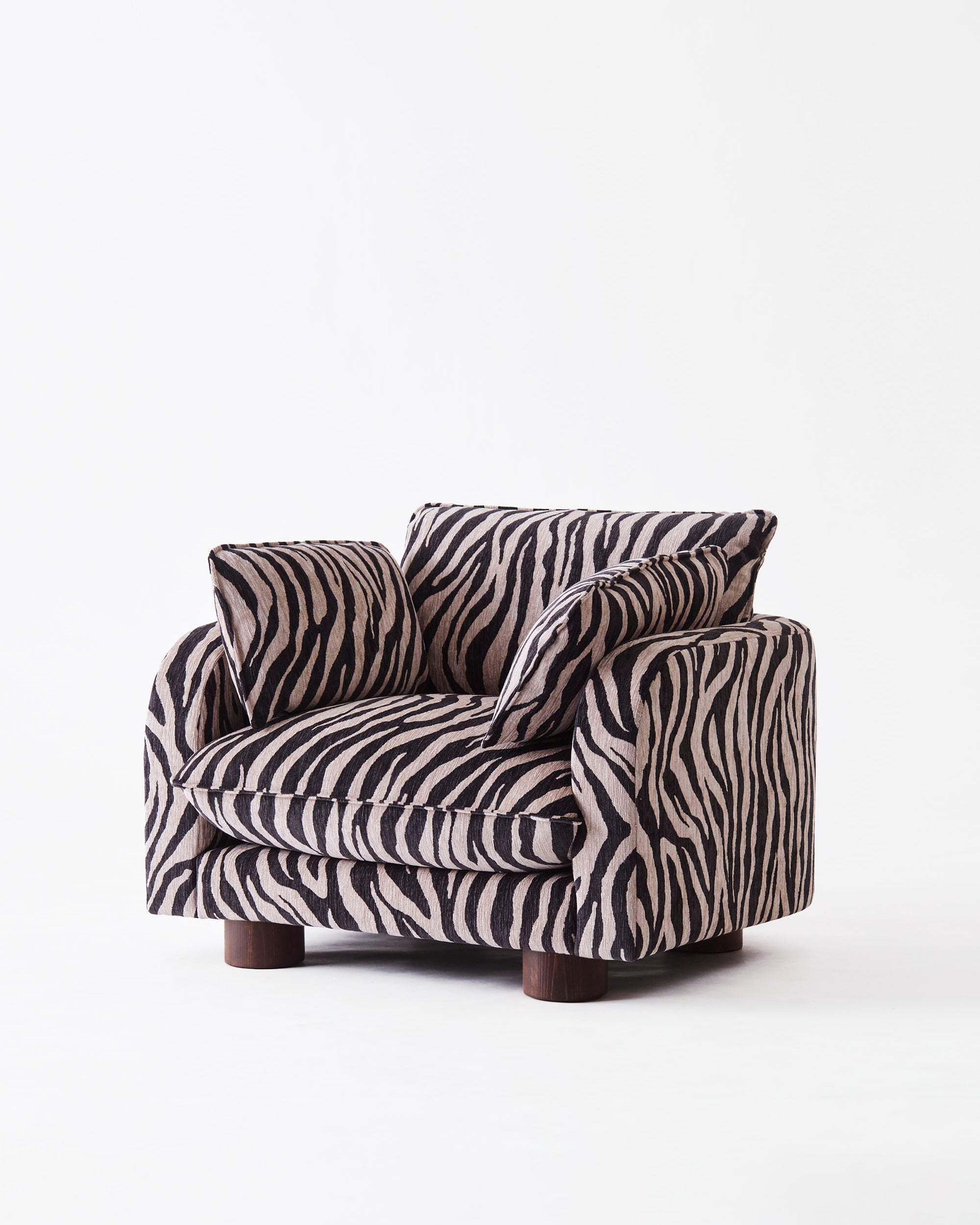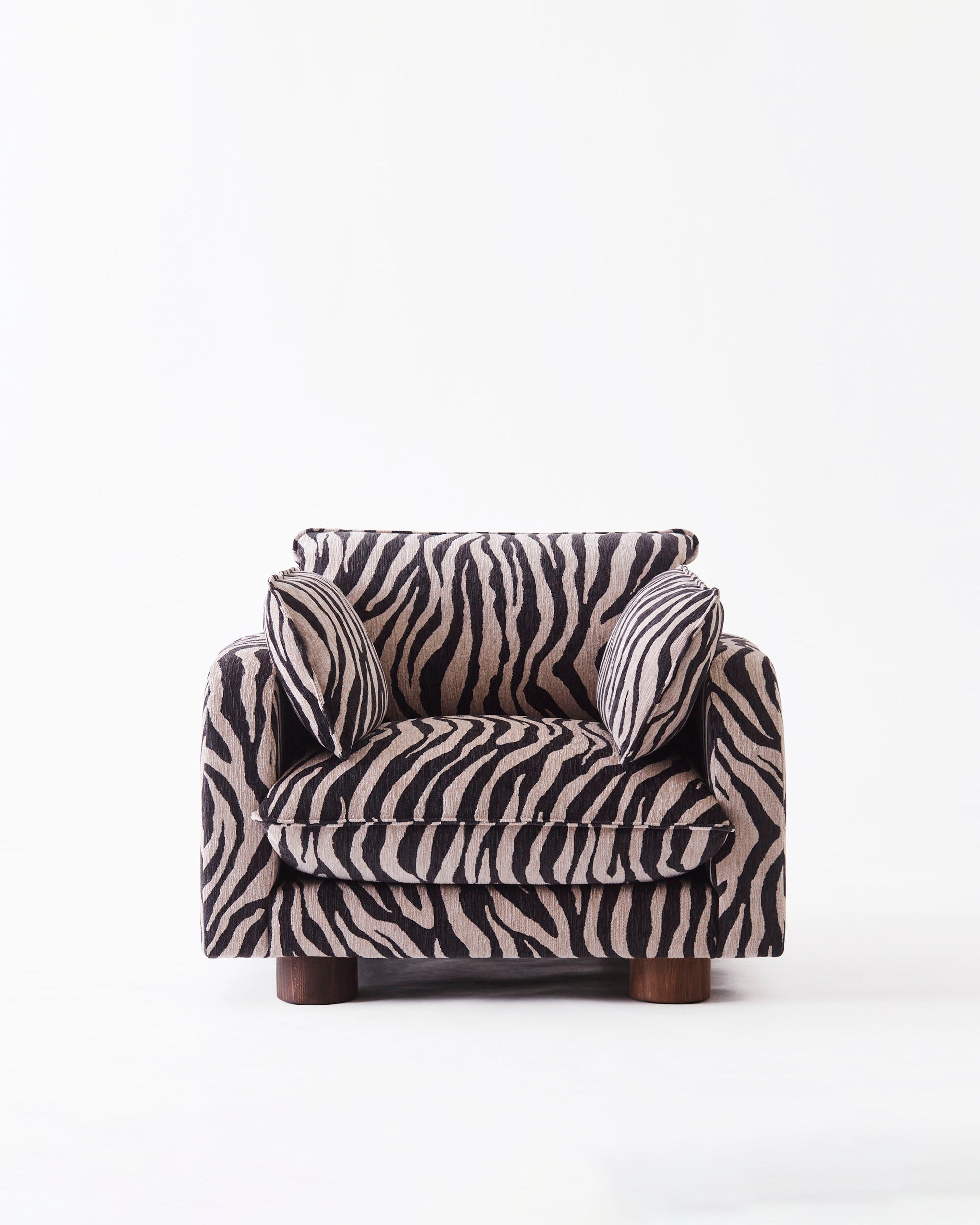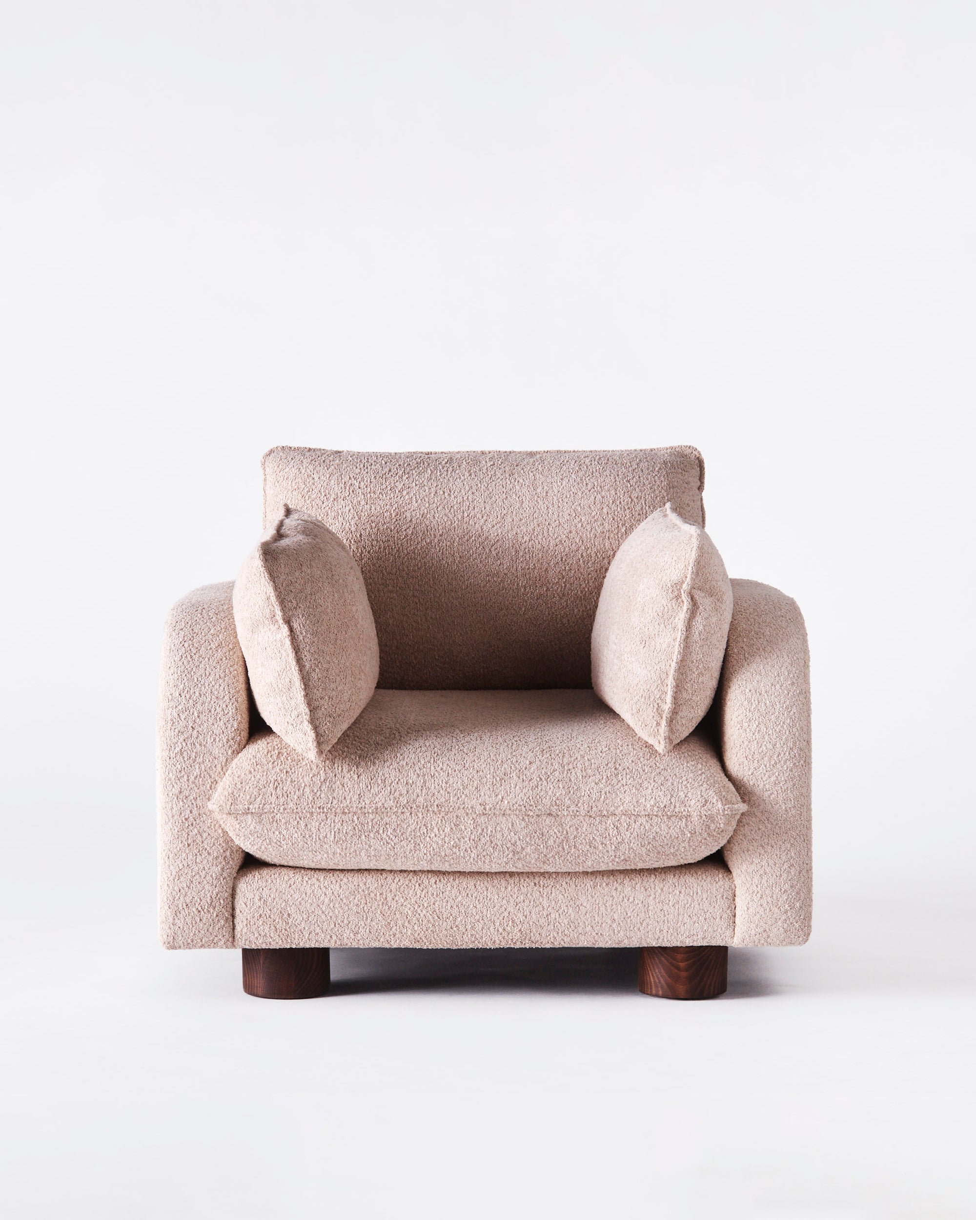 Miles er en serie møbler designet av MER Arkitekter, et Stockholm-basert arkitektfirma. Miles Armchair Boucle er en lenestol preget av sine store puter, avrundede hjørner og sylindriske føtter. Rammen er laget av solid gran og kryssfiner mens polstringen består av dun, silikonkuler og skum. I denne versjonen er lenestolen trukket i et bouclestoff fra James Malone. Fås også i Zebra tekstil.