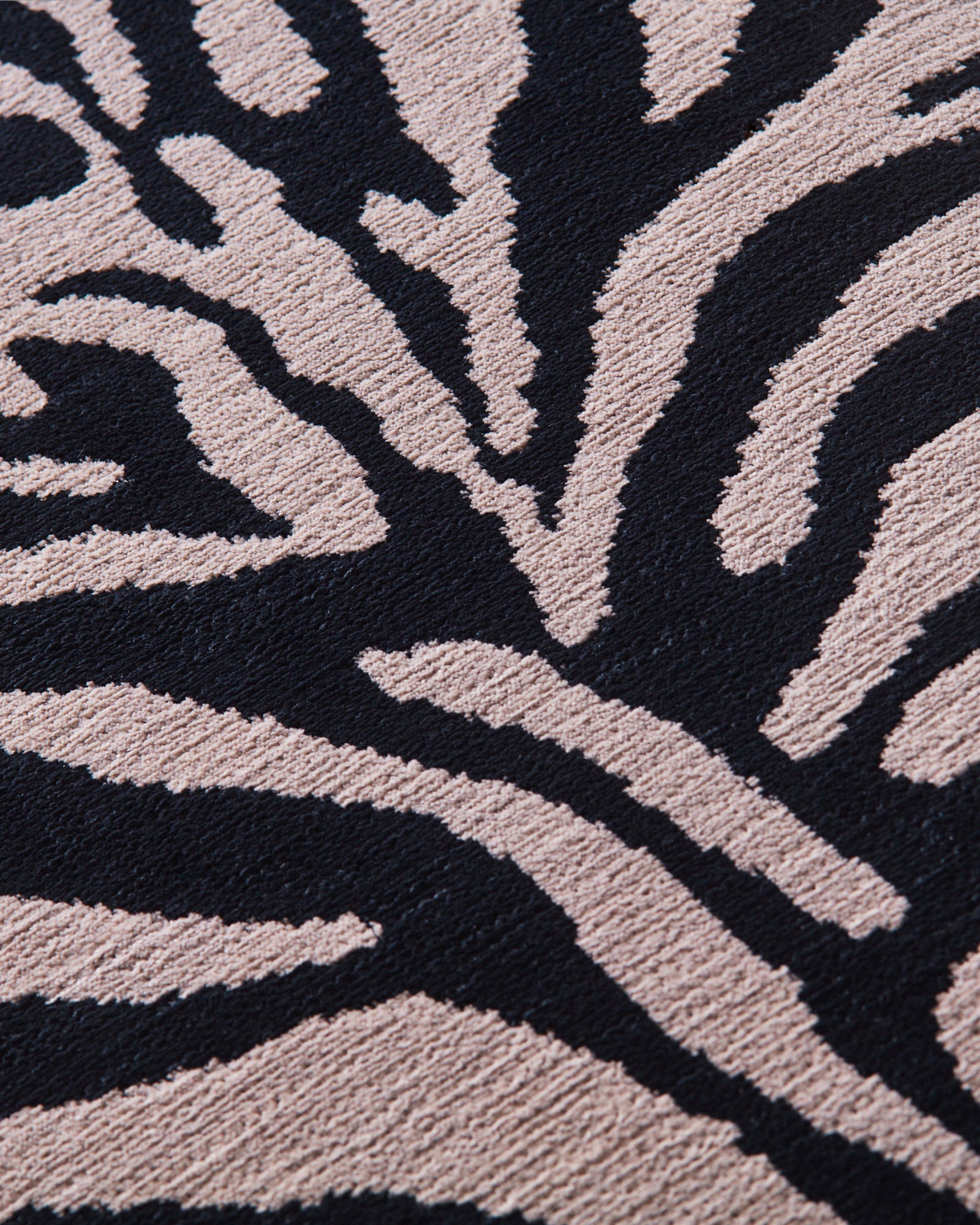 Zebra-stoffet og navnet Miles kommer fra et bilde Dusty Deco fant med en av deres favorittjazzartister Miles Davis stående i Malibu-strandhuset hans med en oppkneppet Zebra-skjorte foran et stort Zebra-teppe.