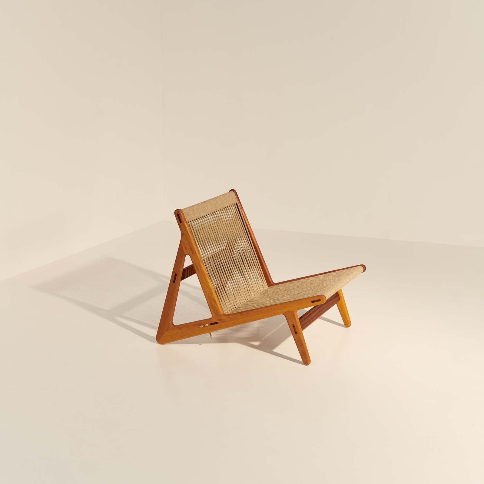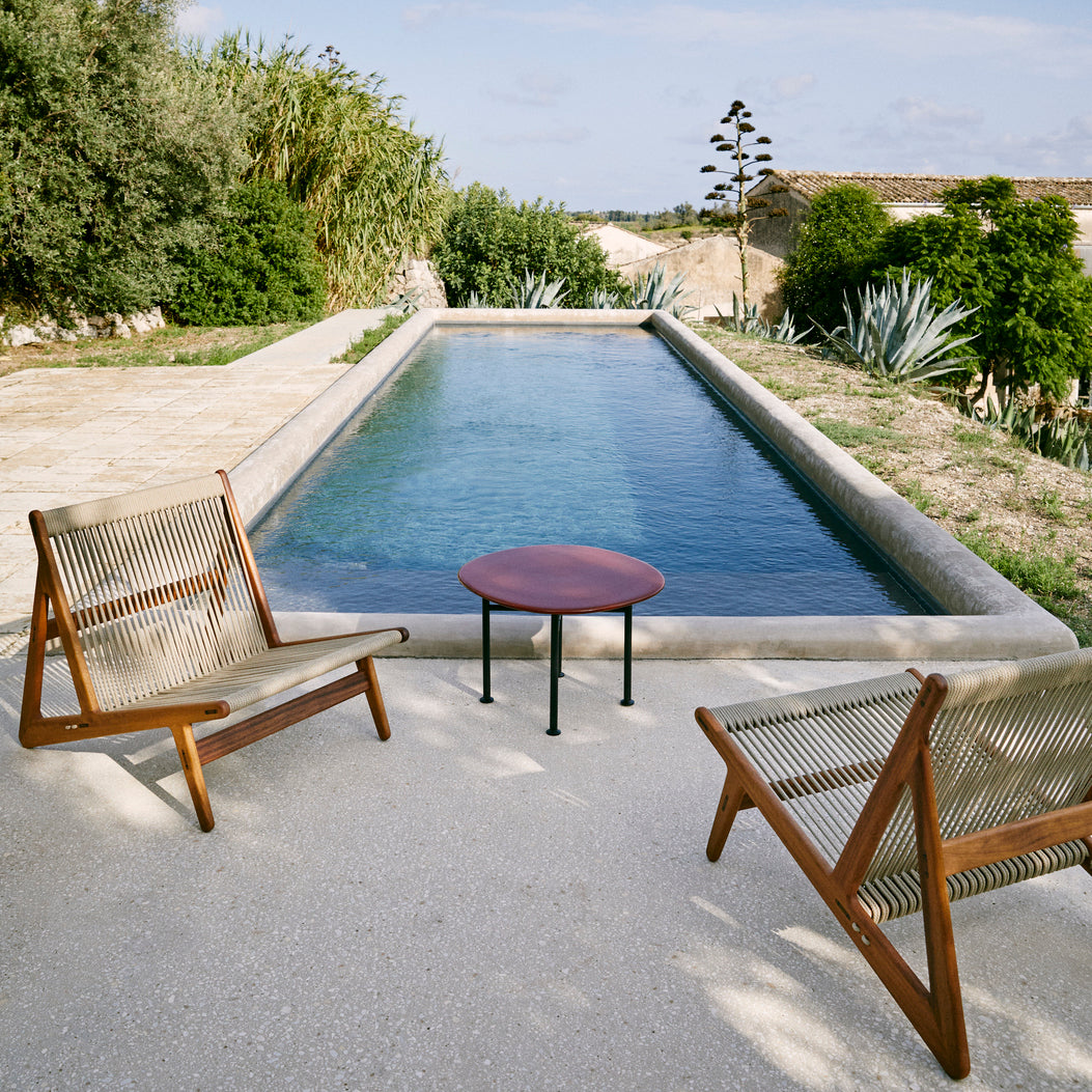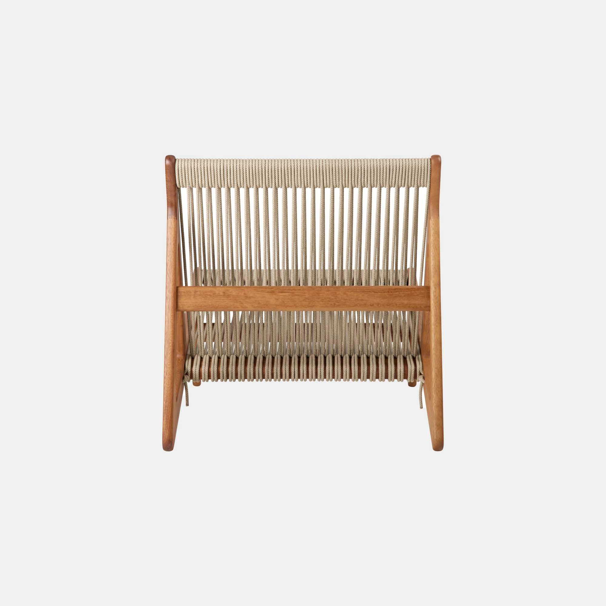 En antideformasjonskjerne forhindrer at tauet strekker seg over tid. MR01 Initial loungestol fra GUBI med et ikonisk design og en konstruksjon uten skruer for en luksuriøs følelse. Den har en ramme i FSC-sertifisert, oljet iroko og et sete i tau. Høy kvalitet med vanntette, UV-bestandige funksjoner. En perfekt detalj som bringer glede inn i hverdagslivet ditt.