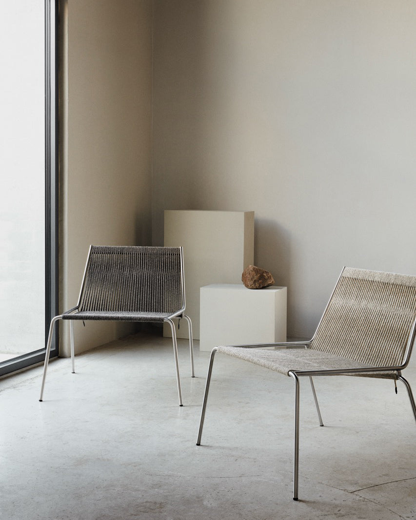 Noel Lounge Chair har en stålramme tilgjengelig i børstet eller svart pulverlakkert stål. Trekket, i lin eller ull flaggline, gir naturlig varme til designet og kommer i beroligende fargetoner. Stolen er nøye designet med en lett skrånende ramme, elegant buede ben og en bred, tilbakelent ryggstøtte som inviterer til luksuriøs avslapning.