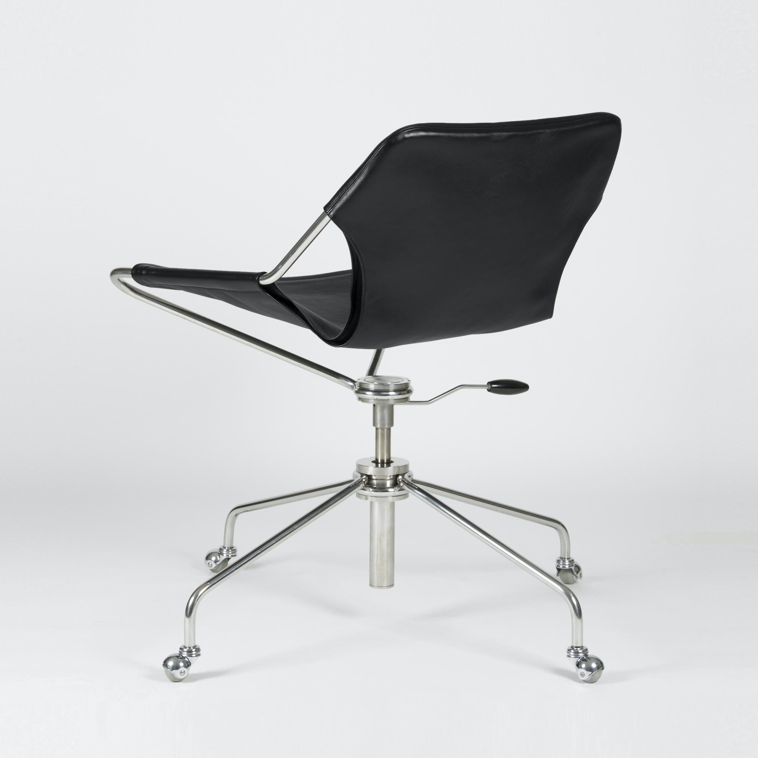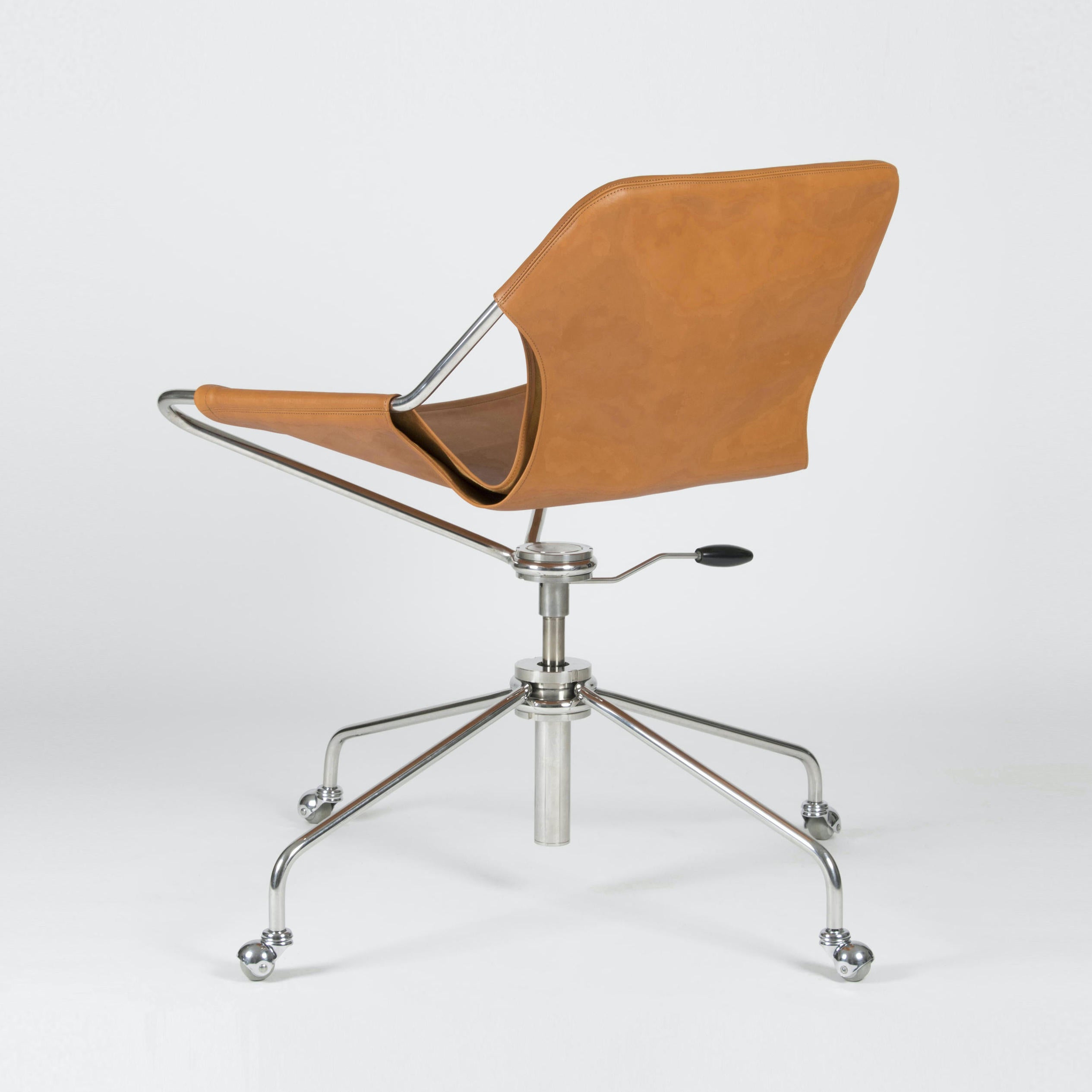 Paulistano OC er en unik kontorstol i skinn, en rullende videreutvikling av den ikoniske Paulistano-stolen designet av Paulo Mendes da Rocha. Stolen kombinerer mytisk design med funksjonalitet, og er kledd i fullnarvet skinn som utvikler en vakker patina over tid. Den solide stålstrukturen sørger for holdbarhet og et raffinert uttrykk.