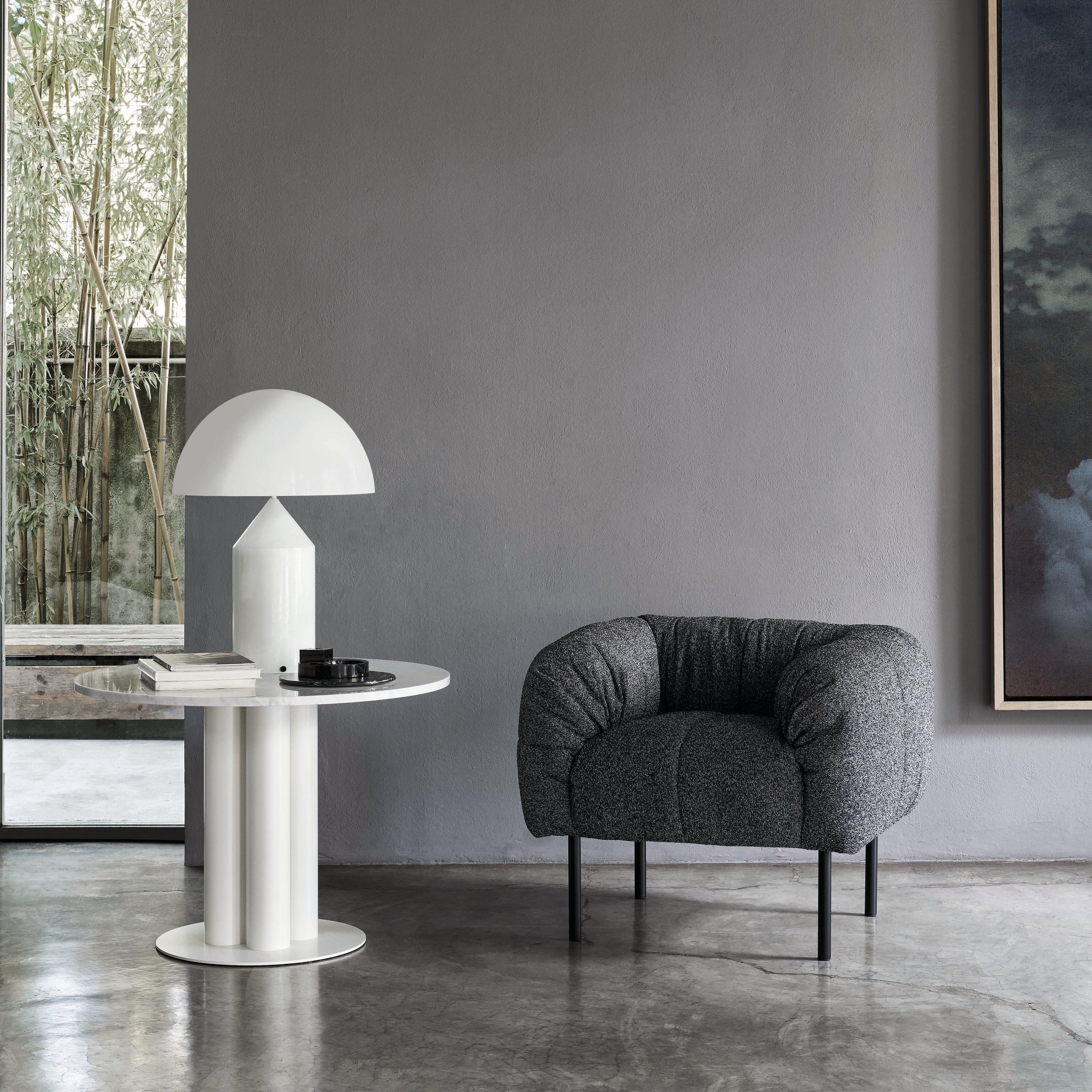 Lenestolen Pecorelle Armchair ble designet med inspirasjon fra naturen av den italienske designeren Cini Boeri for Arflex i 1972. Den elegante lenestolen karakteriseres av sitt tidløse uttrykk og de myke fasongene som gir høy komfort. Pecorelle Armchair har en ramme av poppelfinèr og puter polstret med myk polyuretan. Fire tynne, svarte ben av lakkert metall støtter rammeverket og gir et luftig inntrykk. Velg mellom en rekke avtakbare møbeltrekk av tekstil. For de av dere som vil legge til ekstra personlighet i lenestolen, finnes et tilbehør i pels til armlener og ryggstøtte: Pecorelle Fur Accessory.