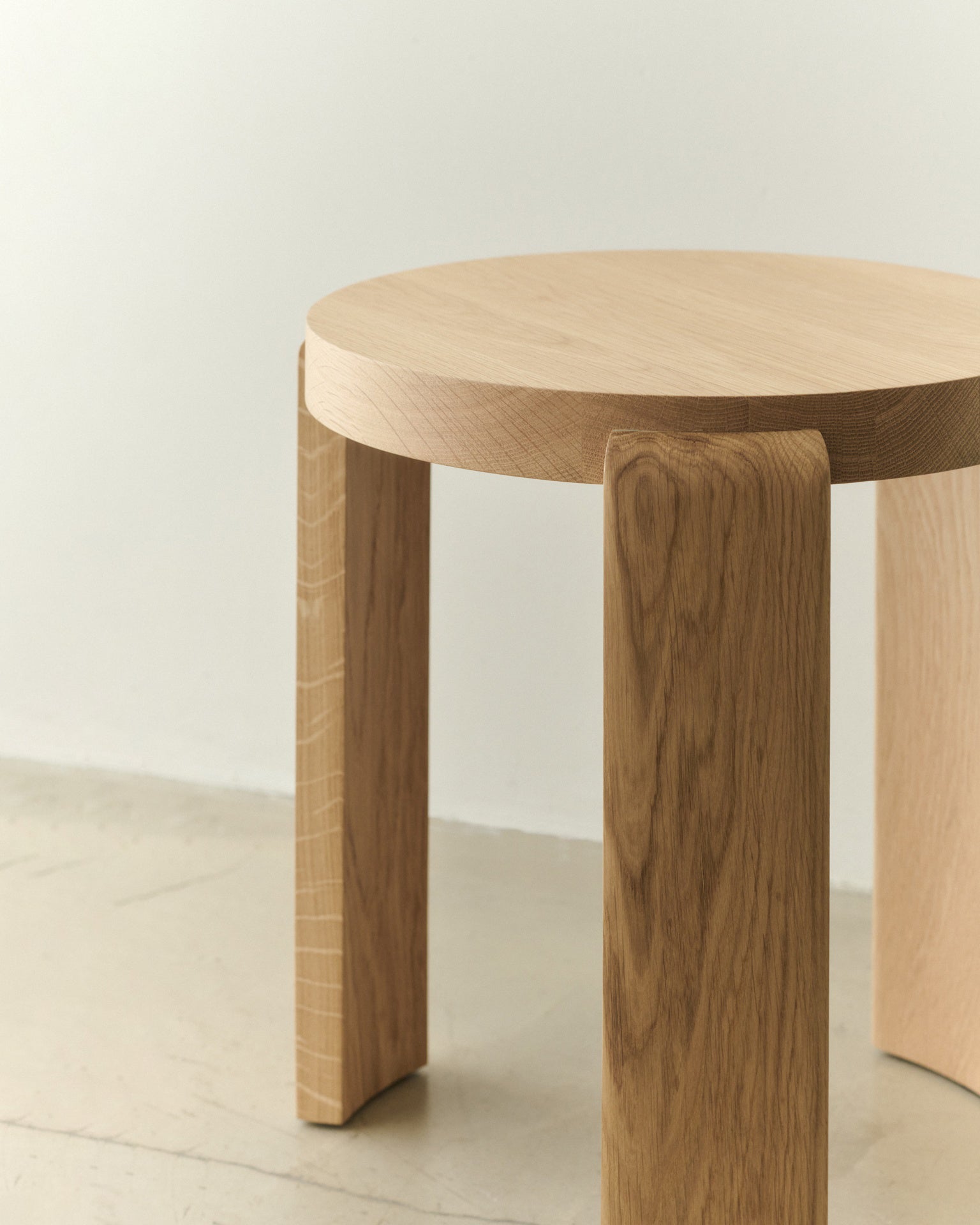 Spina stol-kolleksjonen har et trebent fundament, fremhevet av et sirkulært sete. Spesielt bredere gjenspeiler det midtre benet styrken til dens latinske navnebror, "ryggraden", og understreker viktigheten av rett holdning.